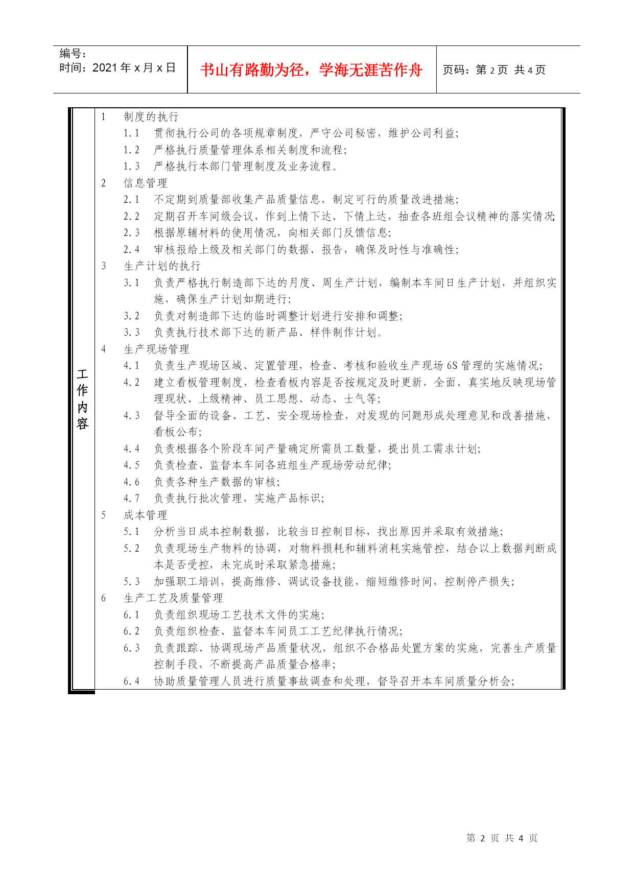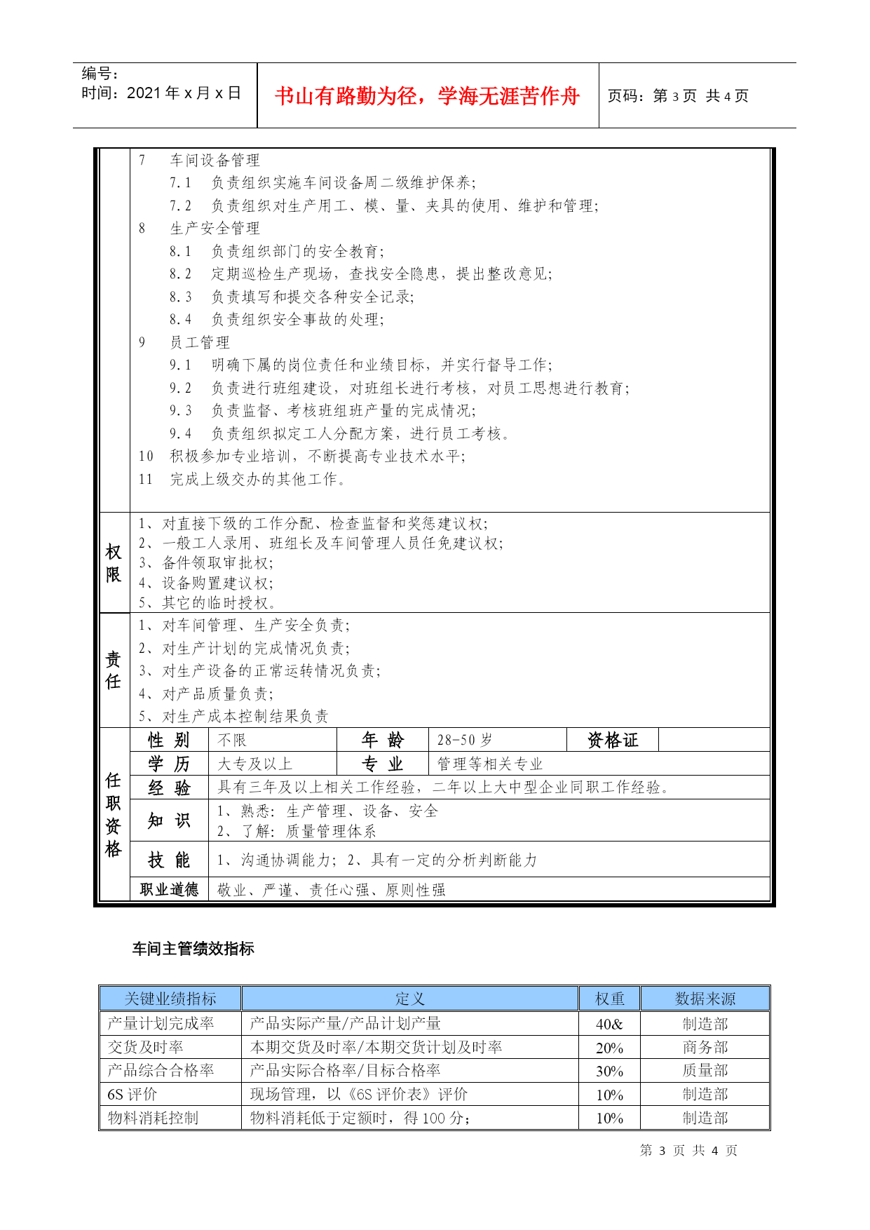 某中型制造业车间主管岗位说明书及KPI指标.docx