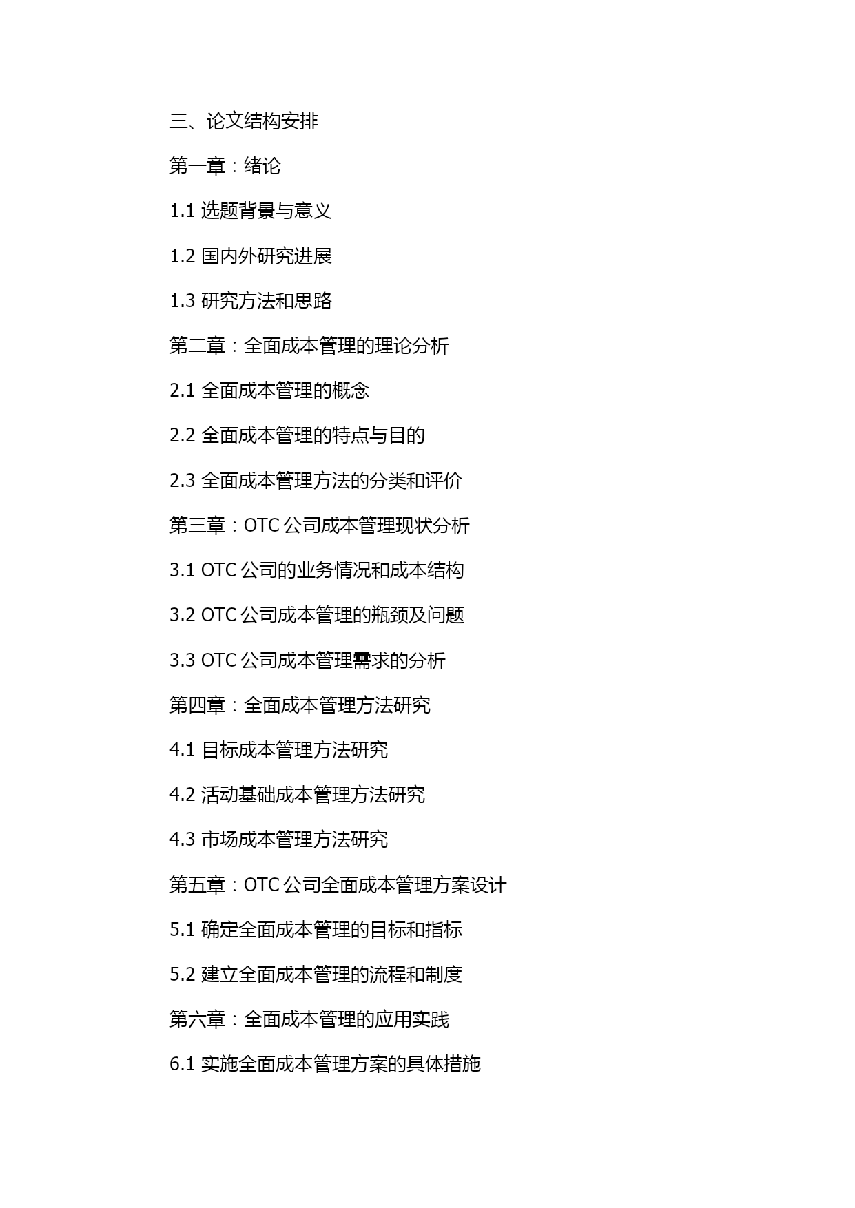 OTC公司全面成本管理研究与应用的开题报告.docx