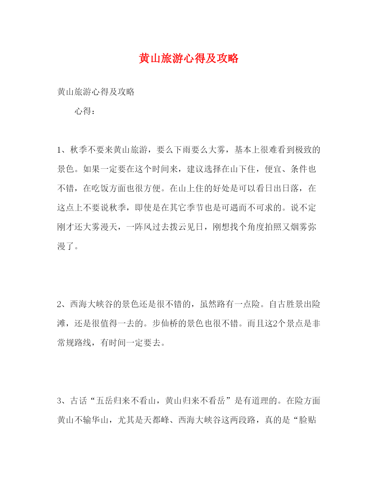 精编黄山旅游心得及攻略
