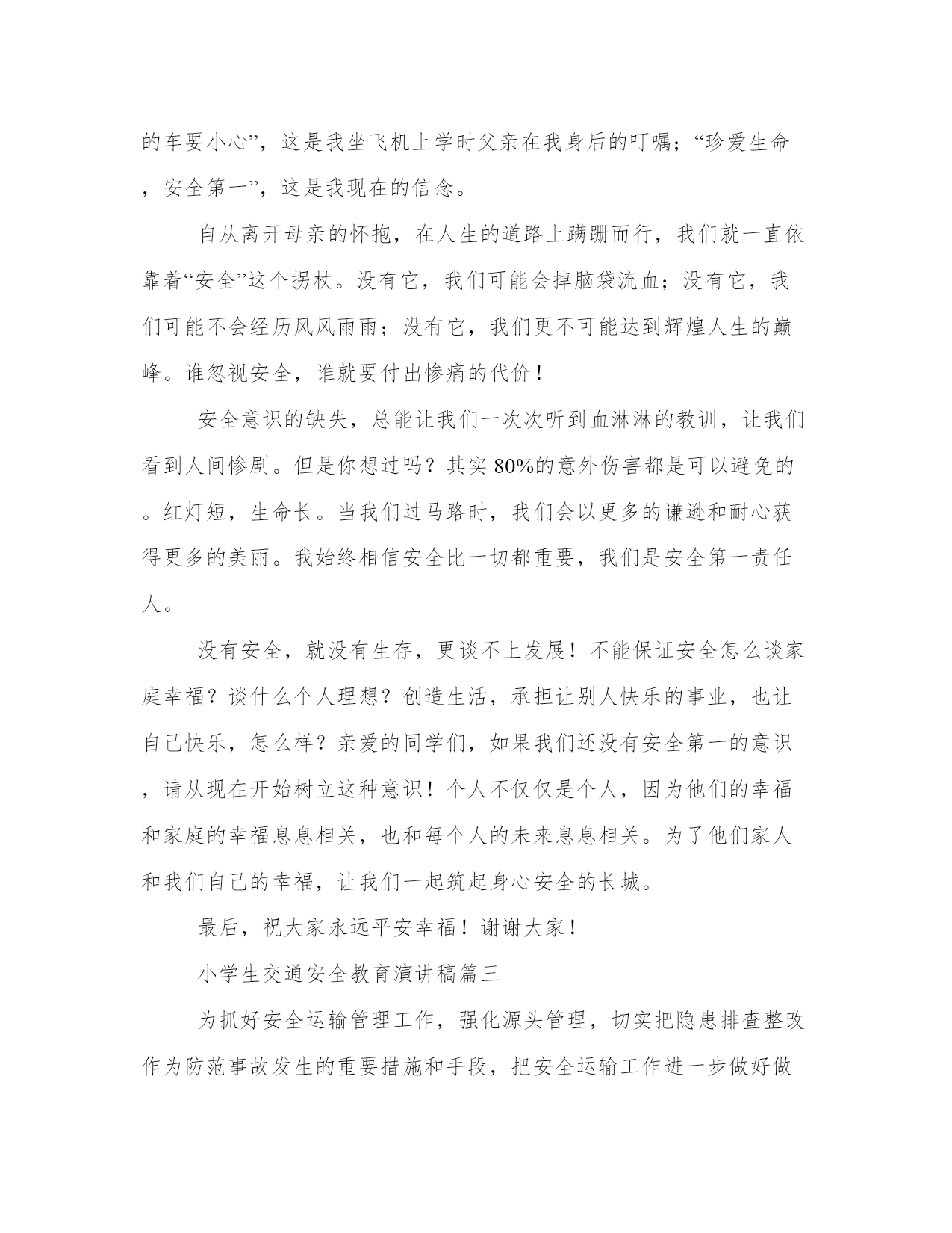 小学生交通安全教育演讲稿交通安全教育演讲稿(模板19篇).docx