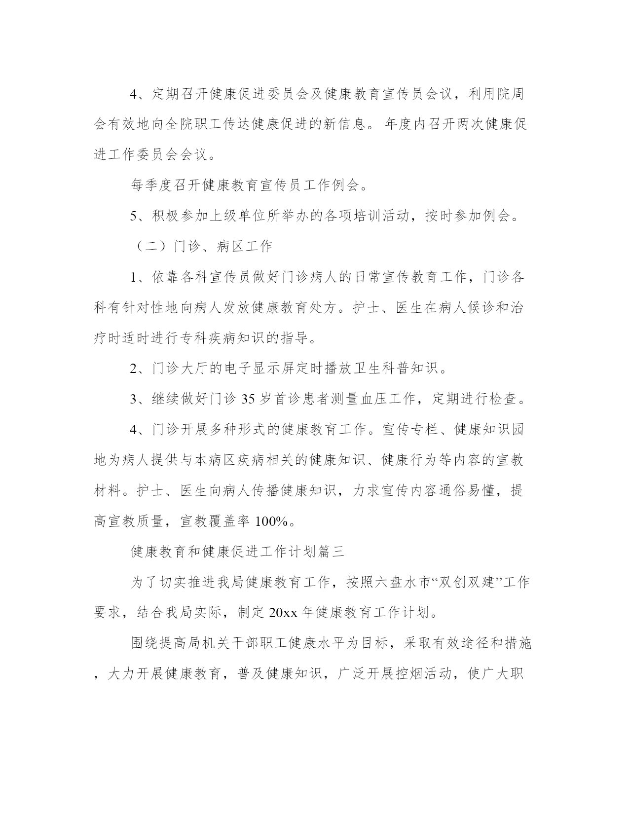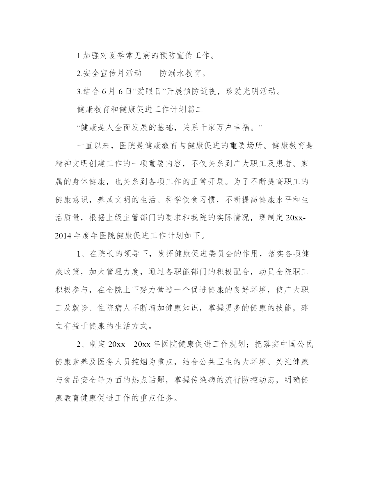 健康教育和健康促进工作计划(实用16篇)