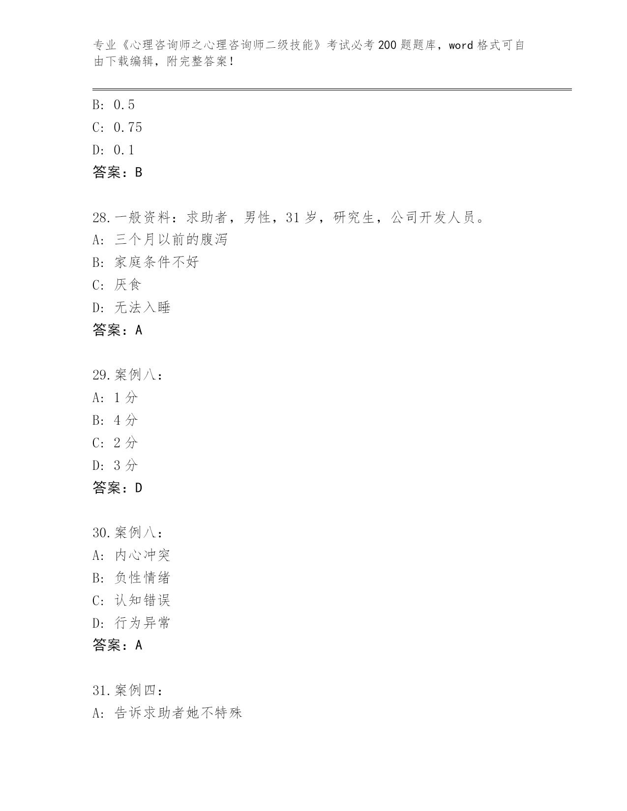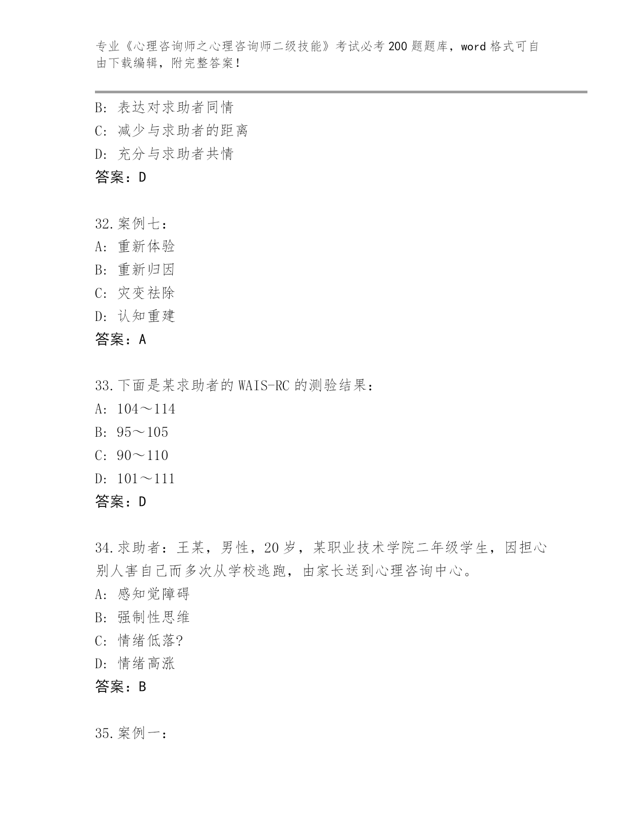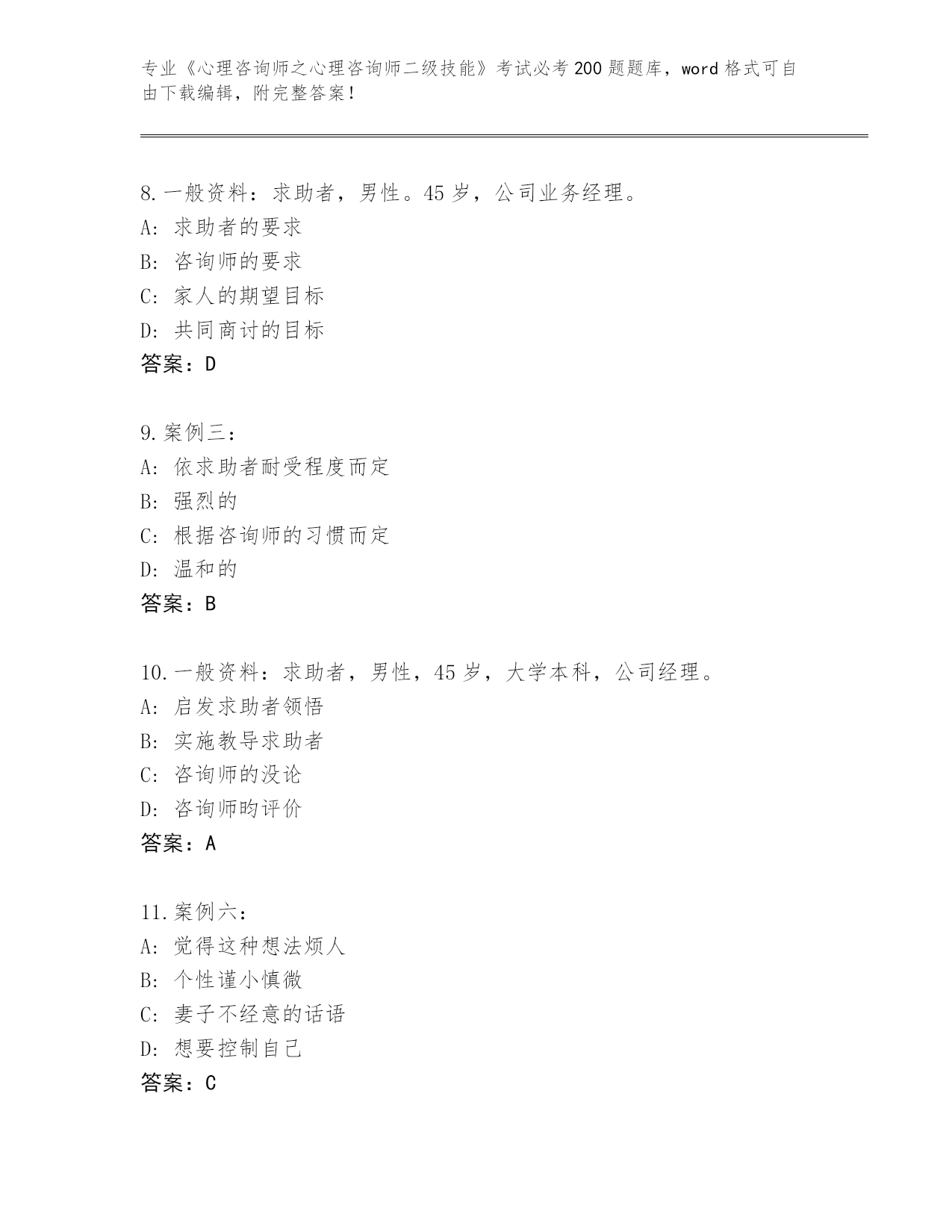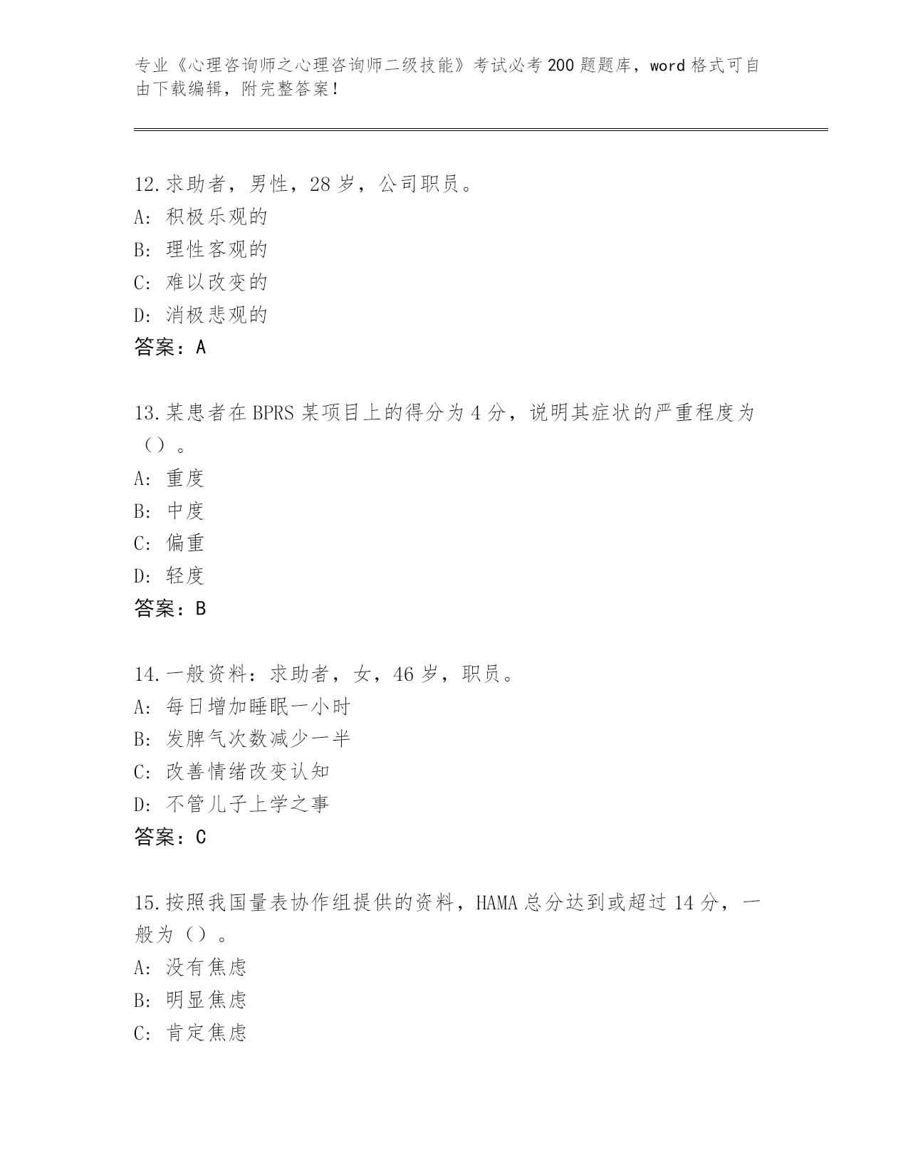 广东省2024年《心理咨询师之心理咨询师二级技能》考试必考200题题库附答案(基础题)