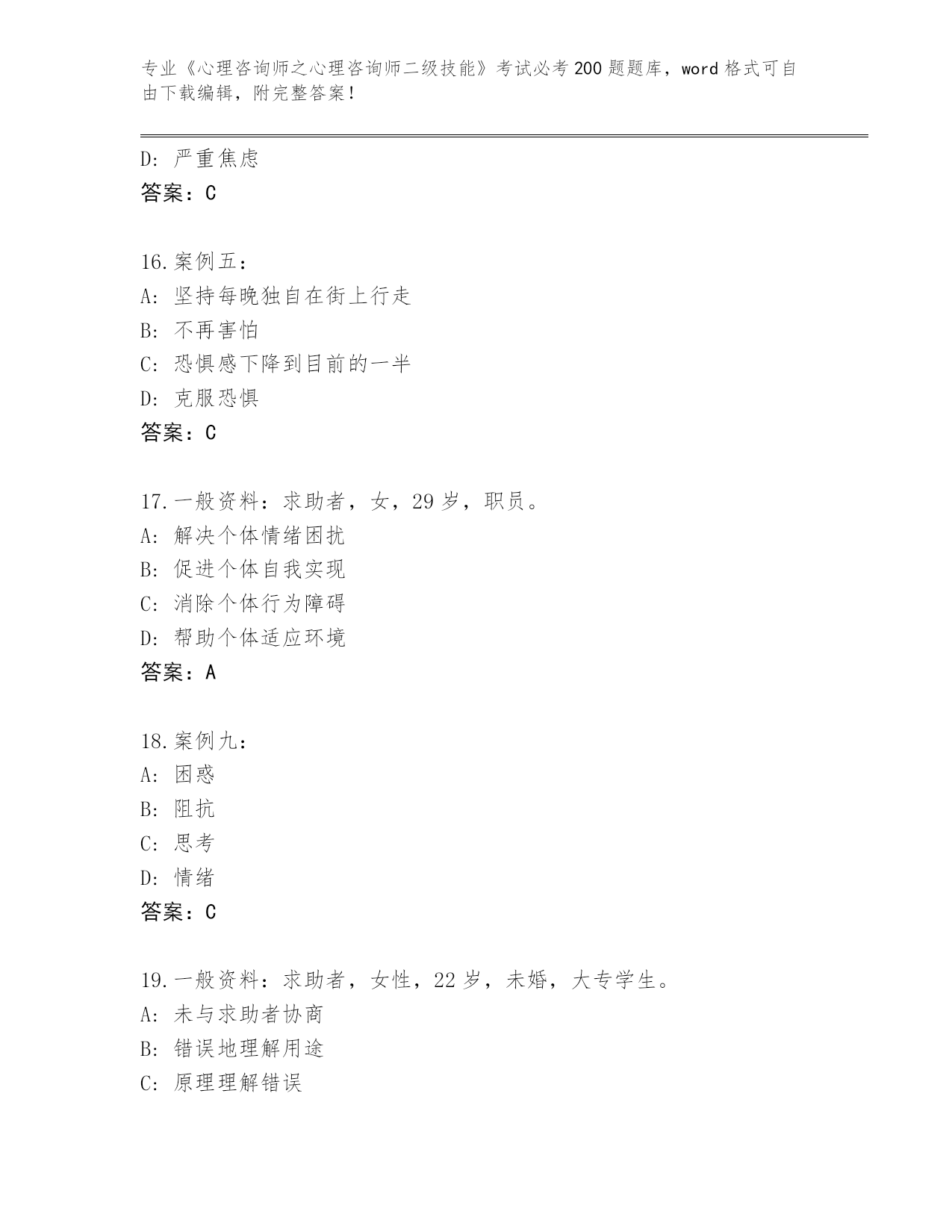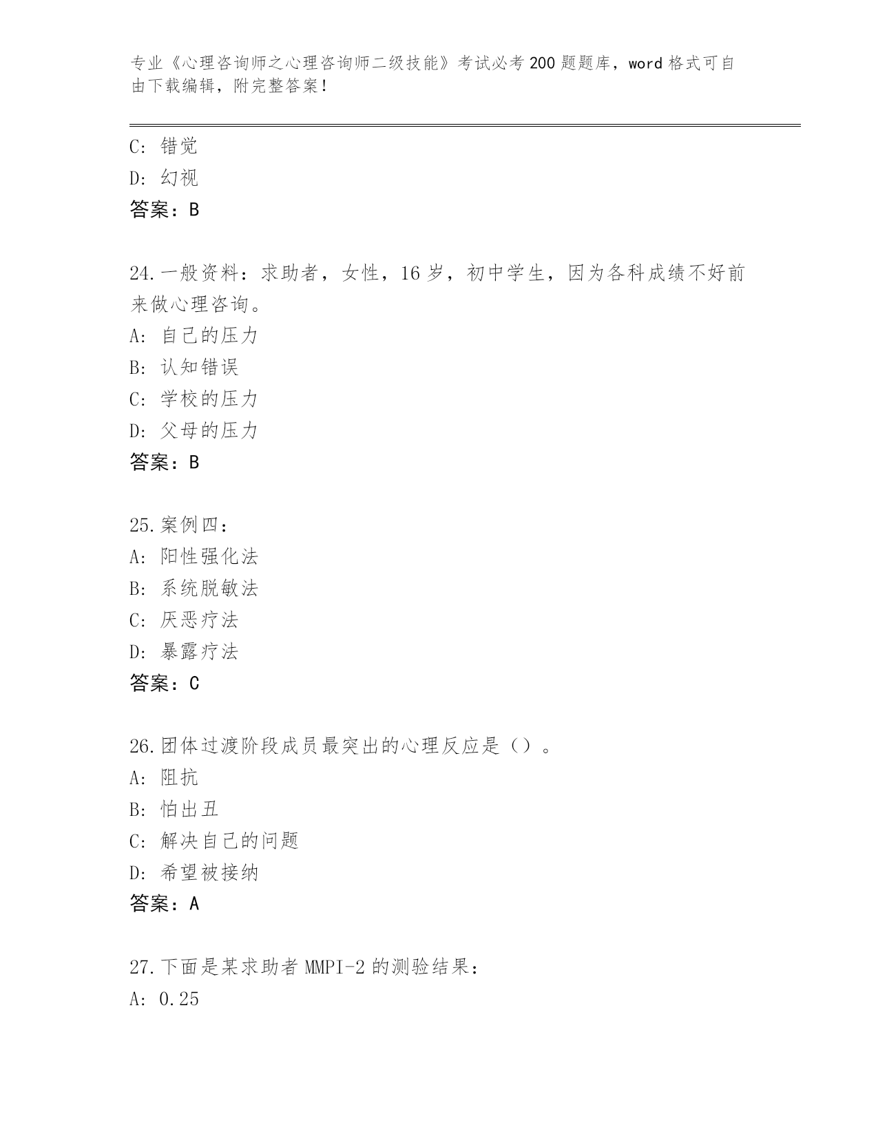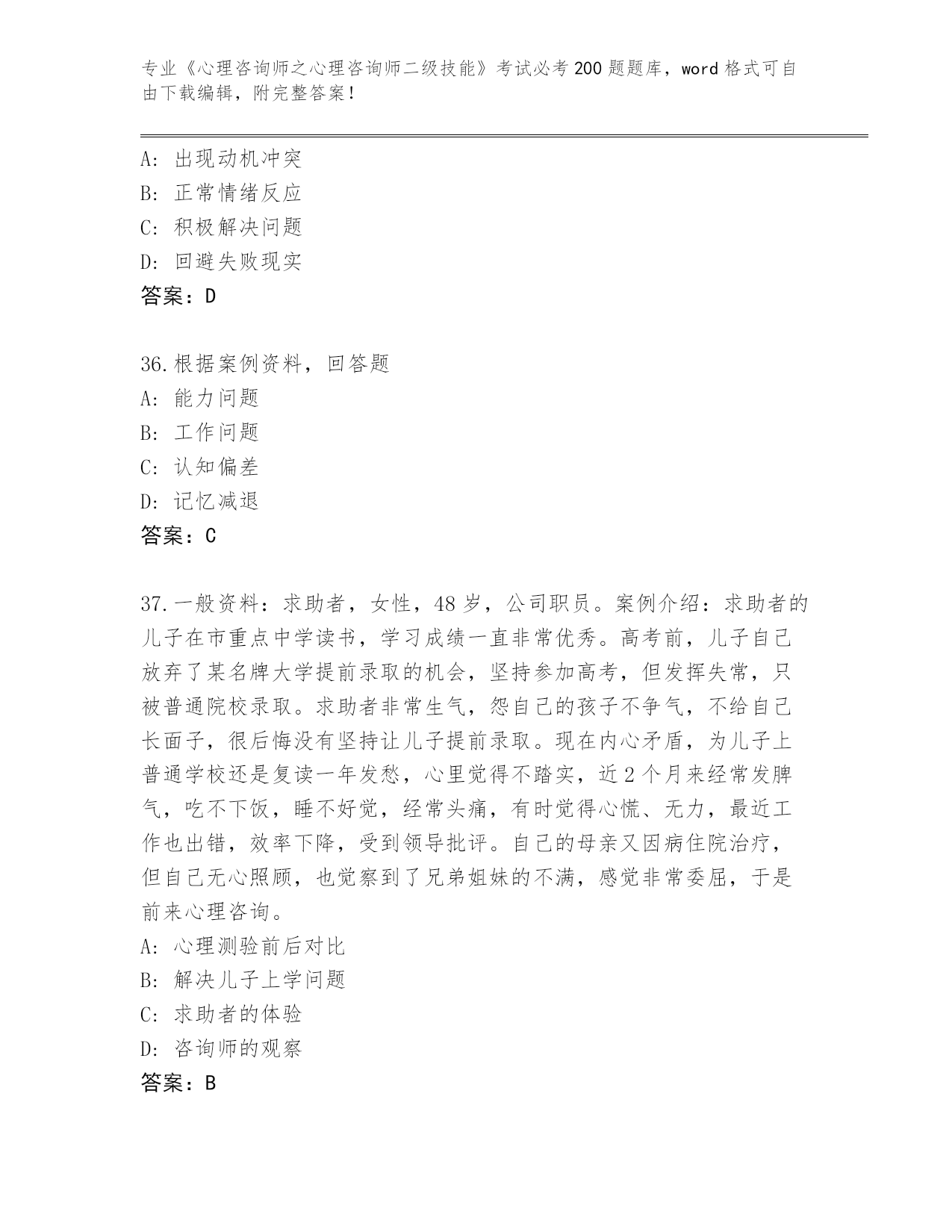 2024广东省罗湖区《心理咨询师之心理咨询师二级技能》考试必考200题真题附答案【满分必刷】