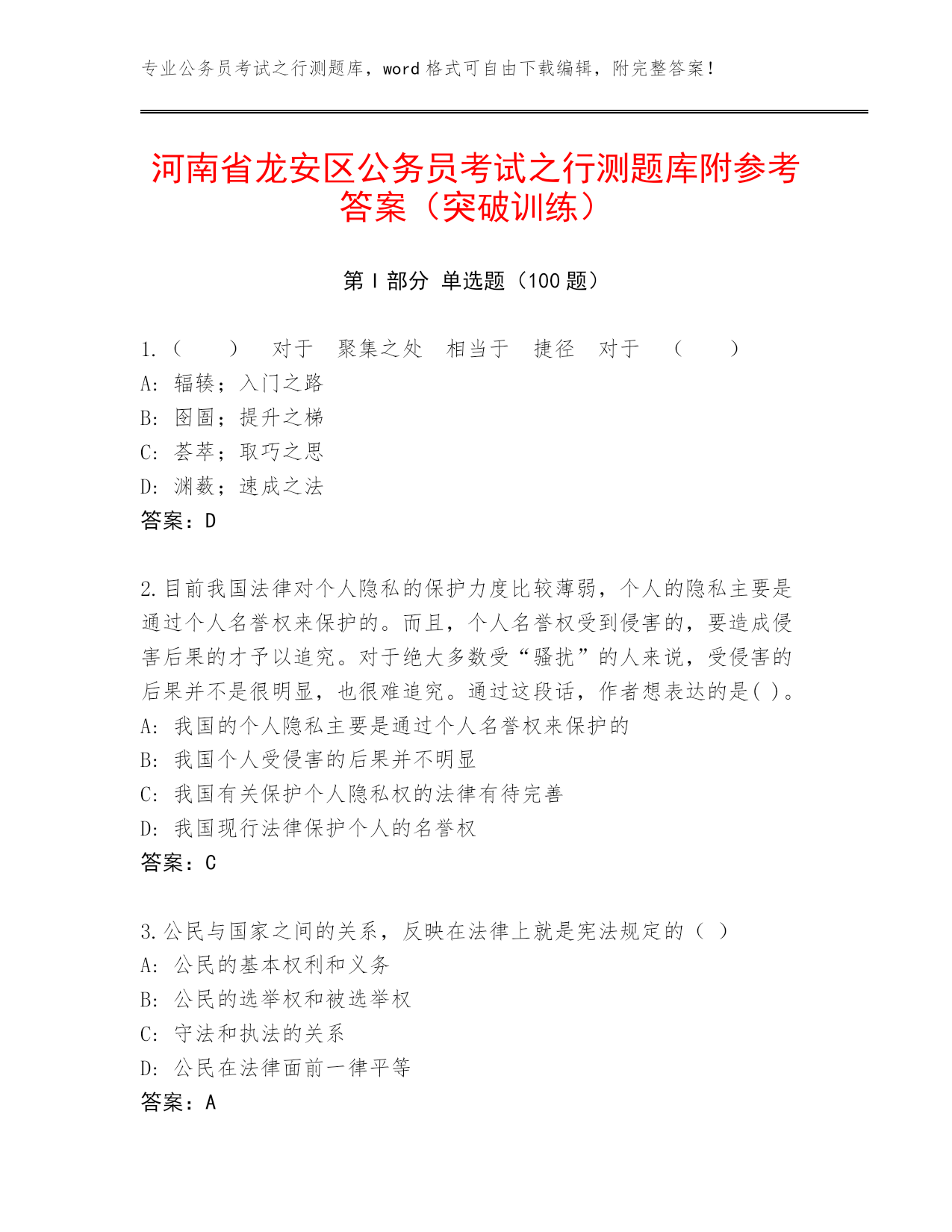 河南省龙安区公务员考试之行测题库附参考答案(突破训练).docx