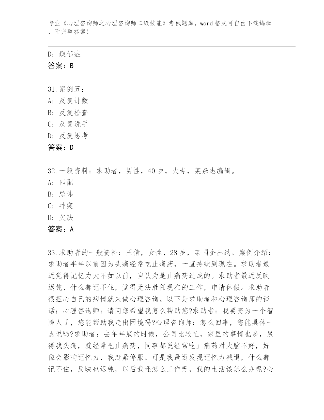 海南省2024《心理咨询师之心理咨询师二级技能》资格考试必刷200题题库大全(各地真题)