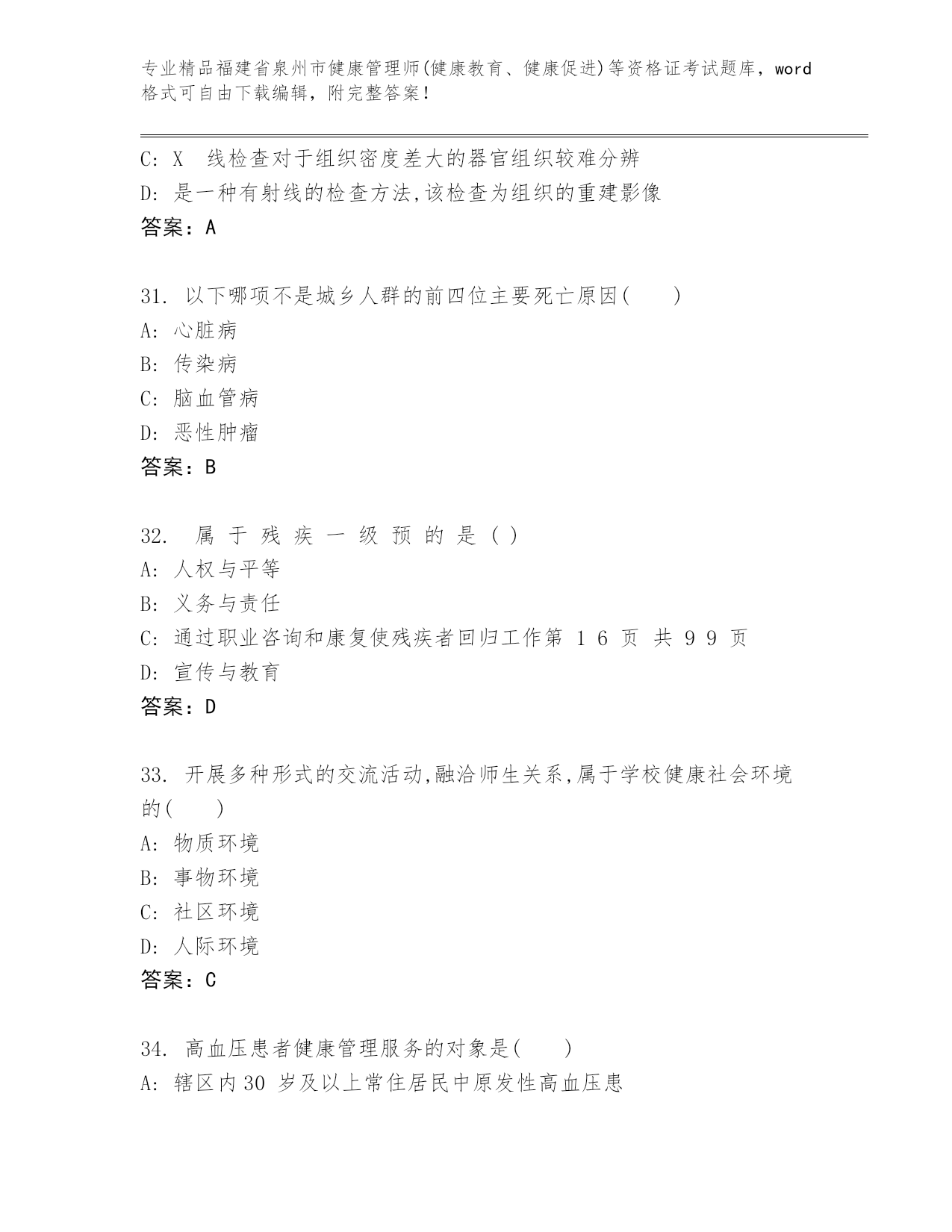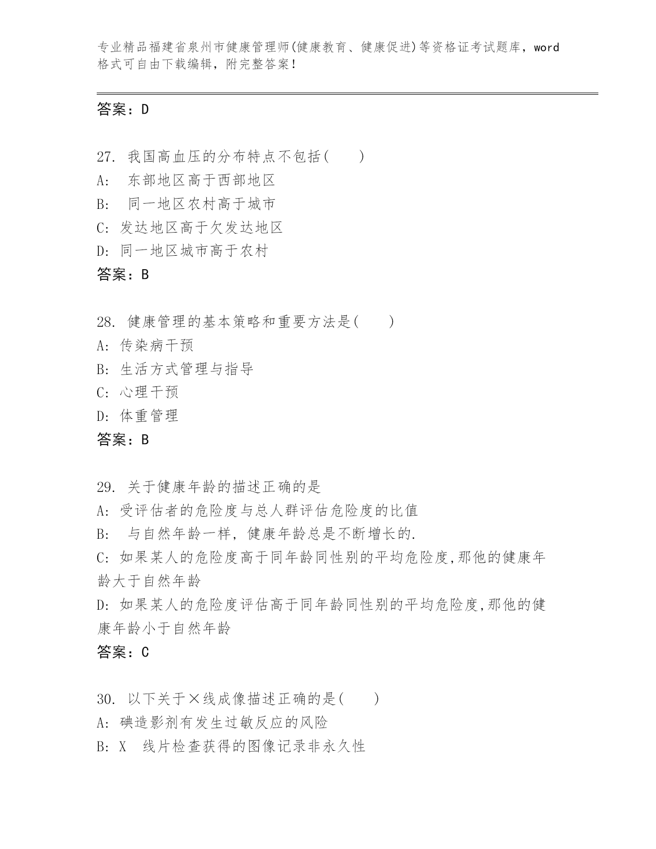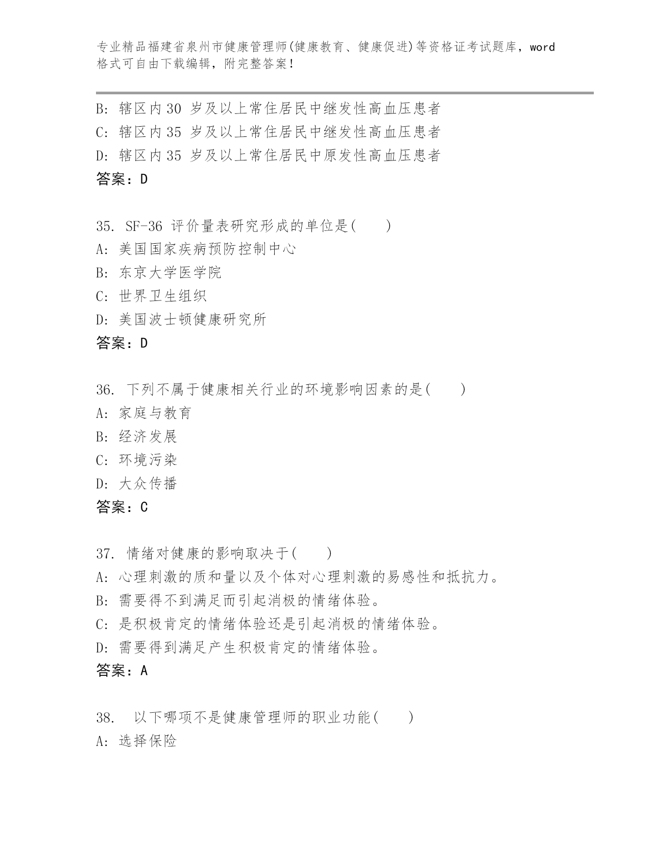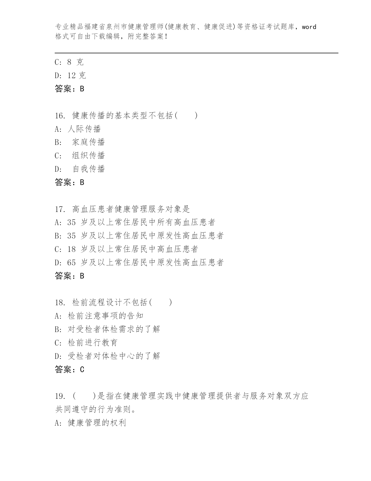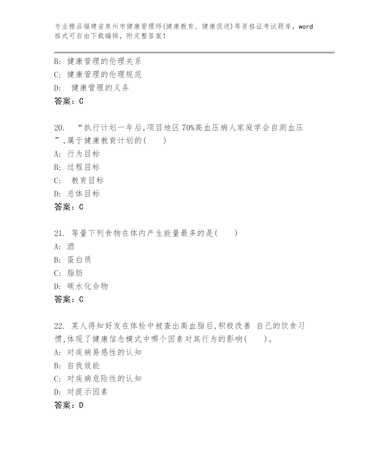 精品福建省泉州市健康管理师(健康教育、健康促进)等资格证考试通用题库【精选题】.docx