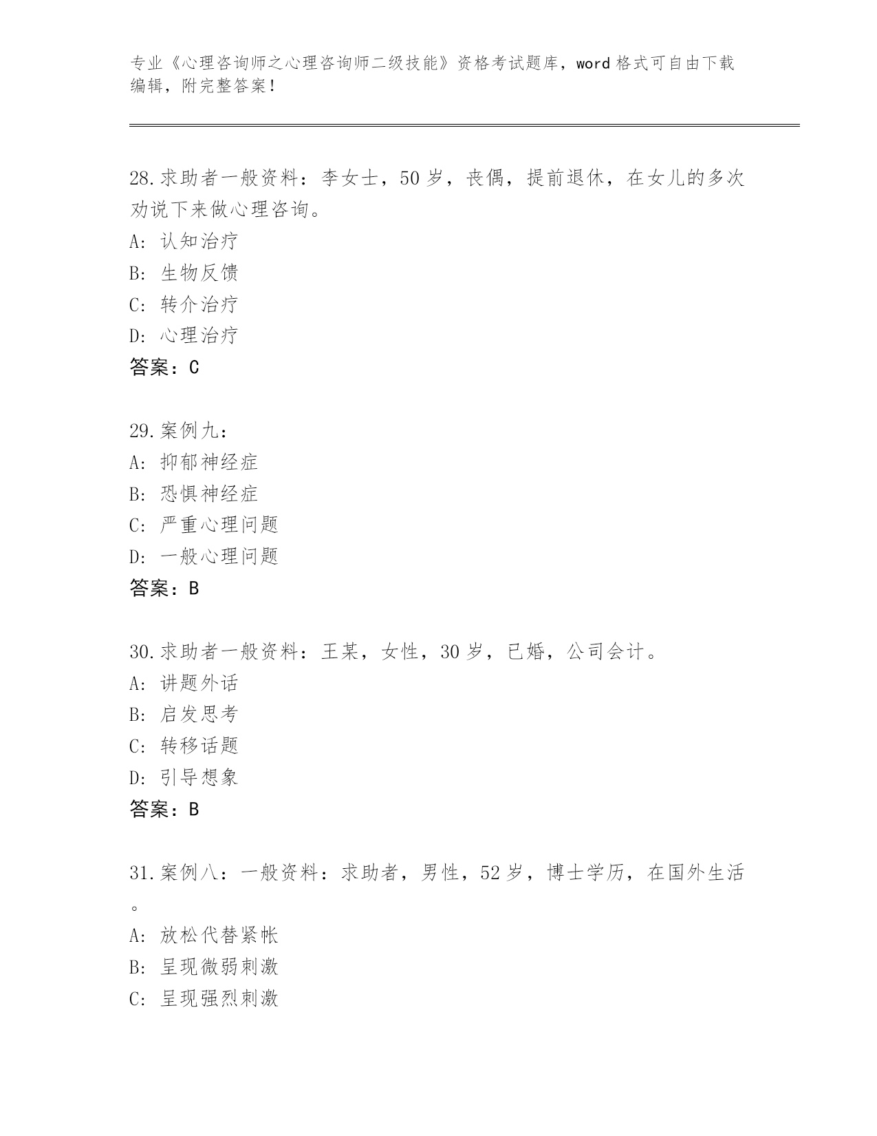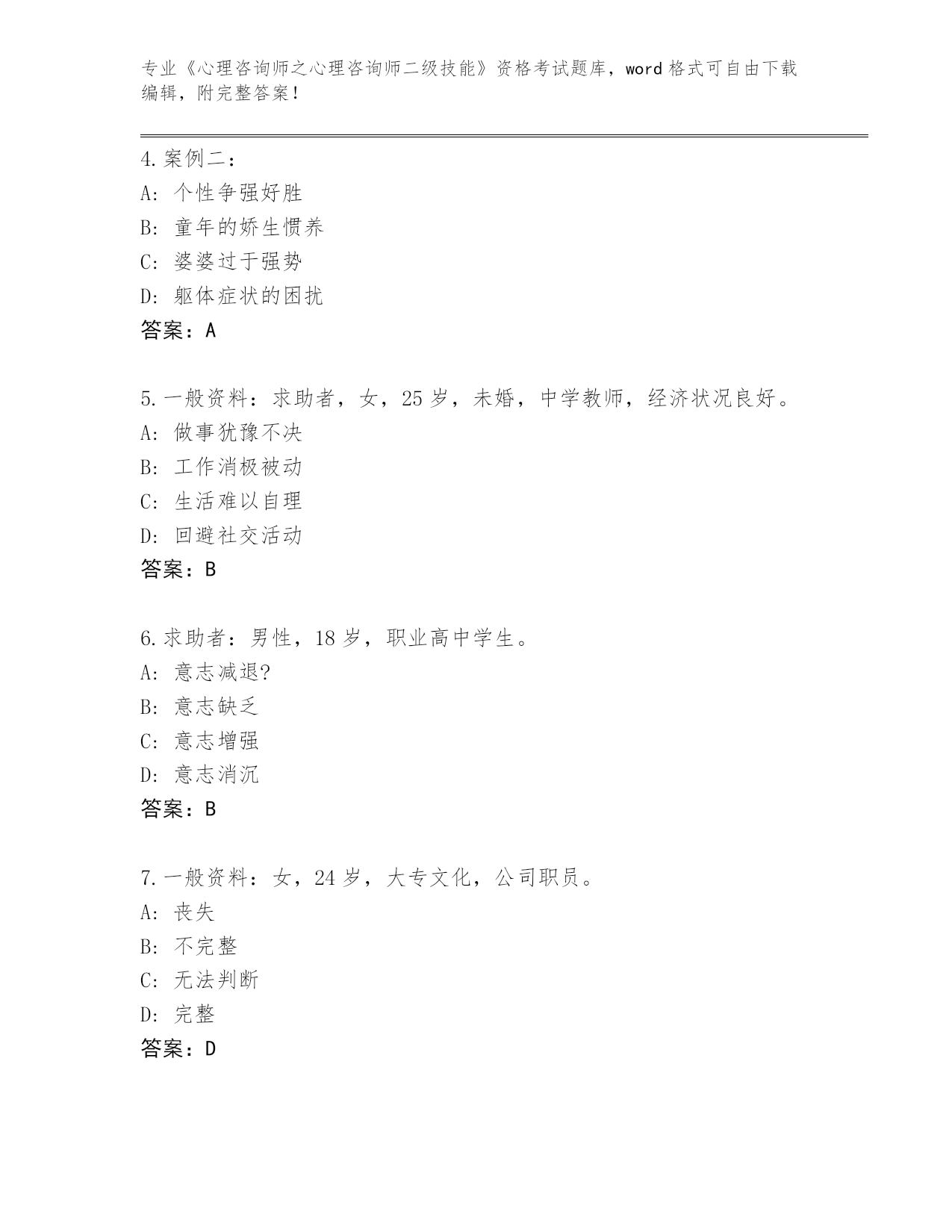 2024年湖北省夷陵区《心理咨询师之心理咨询师二级技能》资格考试必刷200题题库(综合题)