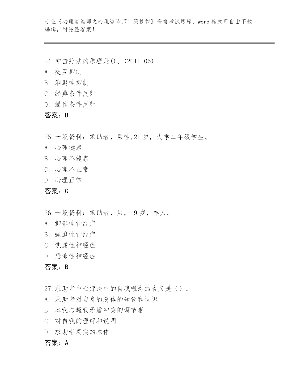 湖北省茅箭区2024《心理咨询师之心理咨询师二级技能》考试大全【】
