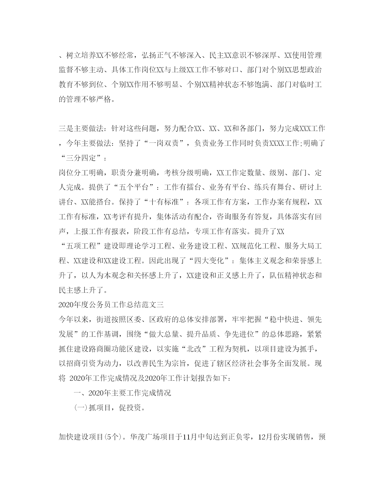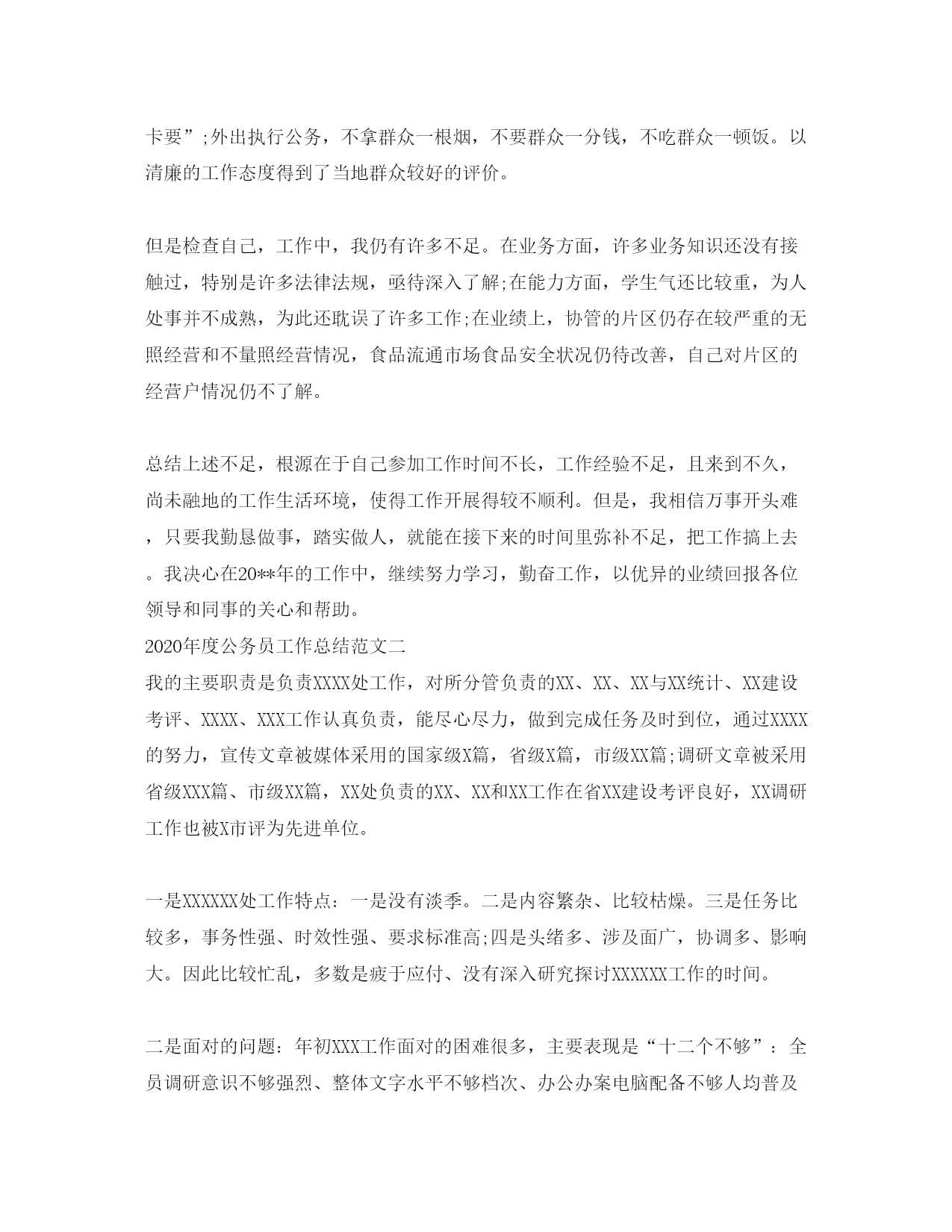 此资料由网络收集而来,如有侵权请告知上传者立即删除。资料共分享,我们负责传递知识。2020年度公务员工作总结范文又到了年末的时候了,很多人要写公务员年度考核个人总结的,但是苦于不知道怎么下笔。今天小编给大家为您整理了2020年度公务员工作总结,希望对大家有所帮助。2020年度公务员工作总结范文一一、德:忠诚可靠,实事求是我认为,公务员的德可体现为“忠实”二字,即忠诚可靠、实事求是。一个合格的公务员应该忠于党,忠于人民,忠于自己的事业;在日常工作中,更要做到实事求是,谨慎踏实。在半年的工作中,我一直牢记我党的宗旨“全心全意为人民服务”,在自己职责内的“一亩三分地”中,深入学习实践“以人为本”为核心的科学发展观,从我分局辖区内的广大企业、个体工商户以及消费者的根本利益出发,想群众之所想,急群众之所急,利群众之所利,履行好一个基层工商干部的职责。在工作中踏实做事,谦逊待人。努力完成职责内的工作和领导布置的任务,团结同事,尊重领导,支持、配合他人的工作,关心、帮助他人的生活学习。二、能:内外兼修,新旧融会我认为公务员的“能”可分为“内功”和“外功”,内练素质功底,外练业务技术。练好“内功”可为业务技能打好基础,勤练“外功”反过来可以强源固本,二者相辅相成,不可偏废。在进入工商系统工作的半年来,面对完全陌生的业务知识和工作环境,我为自己订立了具体的学习目标和计划,鞭策自己勤学苦练新业务,掌握新知识。在注册登记和执法办案方面,不断摸索如何使用业务电子平台,向老同志请教各种业务问题;在片区巡查方面,跟着老同志熟悉片区内的个体户和企业,协助完成巡查工作;在食品安全监管方面,摸索学习快速检测技术;为了适应工商电子化办公特点,我也有计划学习了一些计算机技能。同时我也有计划地开始学习工商的法律法规,锻炼公文写作能力,学习协调人际关系,在内功方面使自己更上一个台阶。三、勤:勤于工作,勉于学习“勤奋”是任何一个追求上进的公务员必须具备的品质,一个“勤”字贯穿了德、能、绩、廉的全部。作为一个初出茅庐的年轻公务员,我也一直把“勤奋”当做自己的座右铭。半年的工作中,我一直兢兢业业,认真履行职责,做好分内工作的同时也帮助同事做好工作,严守分局各项工作制度与纪律;在学习上,从不懈怠,扎实练习新业务,勤恳自学新知识。通过不断的工作实践和自主学习,我已经较好得掌握了分局各项业务技能,对相关的法律法规、制度规范也有了进一步认识,并在县局组织的法律业务考试中取得较好成绩。四、绩:工作业绩在工作业绩方面,半年来我严格按照县局下发的文件指示精神,完成分局布置的各项任务,扎实推进自己职责内的各项工作,取得了一定的成绩。在片区监管方面,认真落实食品经营户日常巡查、索证索票、农资经营户监管等制度,努力清理无照经营户,规范食品经营户经营秩序;在执法办案方面,认真管理行政处罚案卷档案,完善网上案件系统,受理12315消费者申诉举报;在食品安全监管方面,做好查处假冒伪劣、过期变质食品工作,利用快速检测设备完成检测任务三次;在内勤工作方面,管理好分局文件和会议记录,积极完成宣传报道稿件任务,认真做好分局布置的公文写作工作。五、廉:廉洁奉公,清正自律参加工作的半年来,我严格遵守国家关于廉洁自律的有关规定,以国家工商总局的“六项禁令”严格要求自己,自觉履行岗位责任制、服务承诺制、限时办结制、一次性告知制等制度规范。对前来的办事的群众礼貌相待,绝不以职权“吃拿卡要”;外出执行公务,不拿群众一根烟,不要群众一分钱,不吃群众一顿饭。以清廉的工作态度得到了当地群众较好的评价。但是检查自己,工作中,我仍有许多不足。在业务方面,许多业务知识还没有接触过,特别是许多法律法规,亟待深入了解;在能力方面,学生气还比较重,为人处事并不成熟,为此还耽误了许多工作;在业绩上,协管的片区仍存在较严重的无照经营和不量照经营情况,食品流通市场食品安全状况仍待改善,自己对片区的经营户情况仍不了解。总结上述不足,根源在于自己参加工作时间不长,工作经验不足,且来到不久,尚未融地的工作生活环境,使得工作开展得较不顺利。但是,我相信万事开头难,只要我勤恳做事,踏实做人,就能在接下来的时间里弥补不足,把工作搞上去。我决心在20**年的工作中,继续努力学习,勤奋工作,以优异的业绩回报各位领导和同事的关心和帮助。2020年度公务员工作总结范文二我的主要职责是负责XXXX处工作,对所分管负责的XX、XX、XX与XX统计、XX建设考评、XXXX、XXX工作认真负责,能尽心尽力,做到完成任务及时到位,通过XXXX的努力,宣传文章被媒体采用的国家级X篇,省级X篇,市级XX篇;调研文章被采用省级XXX篇、市级XX篇,XX处负责的XX、XX和XX工作在省XX建设考评良好,XX调研工作也被X市评为先进单位。一是XXX