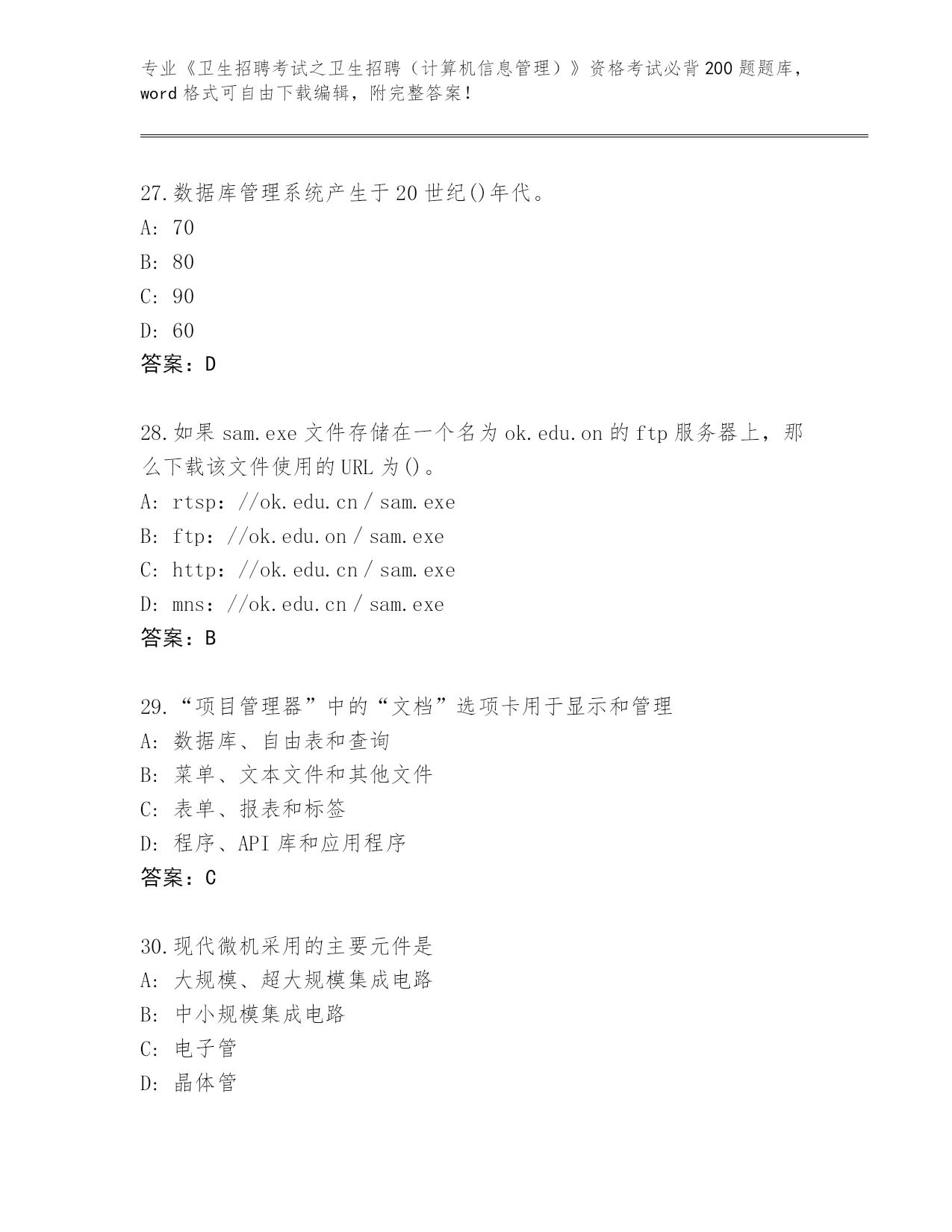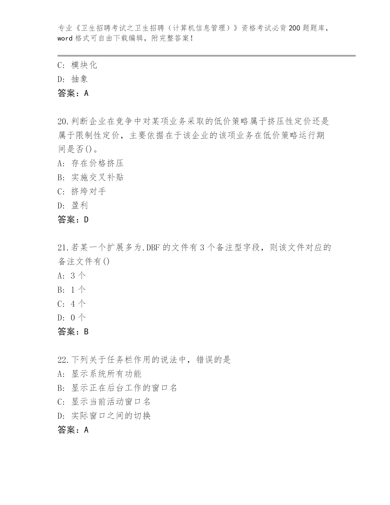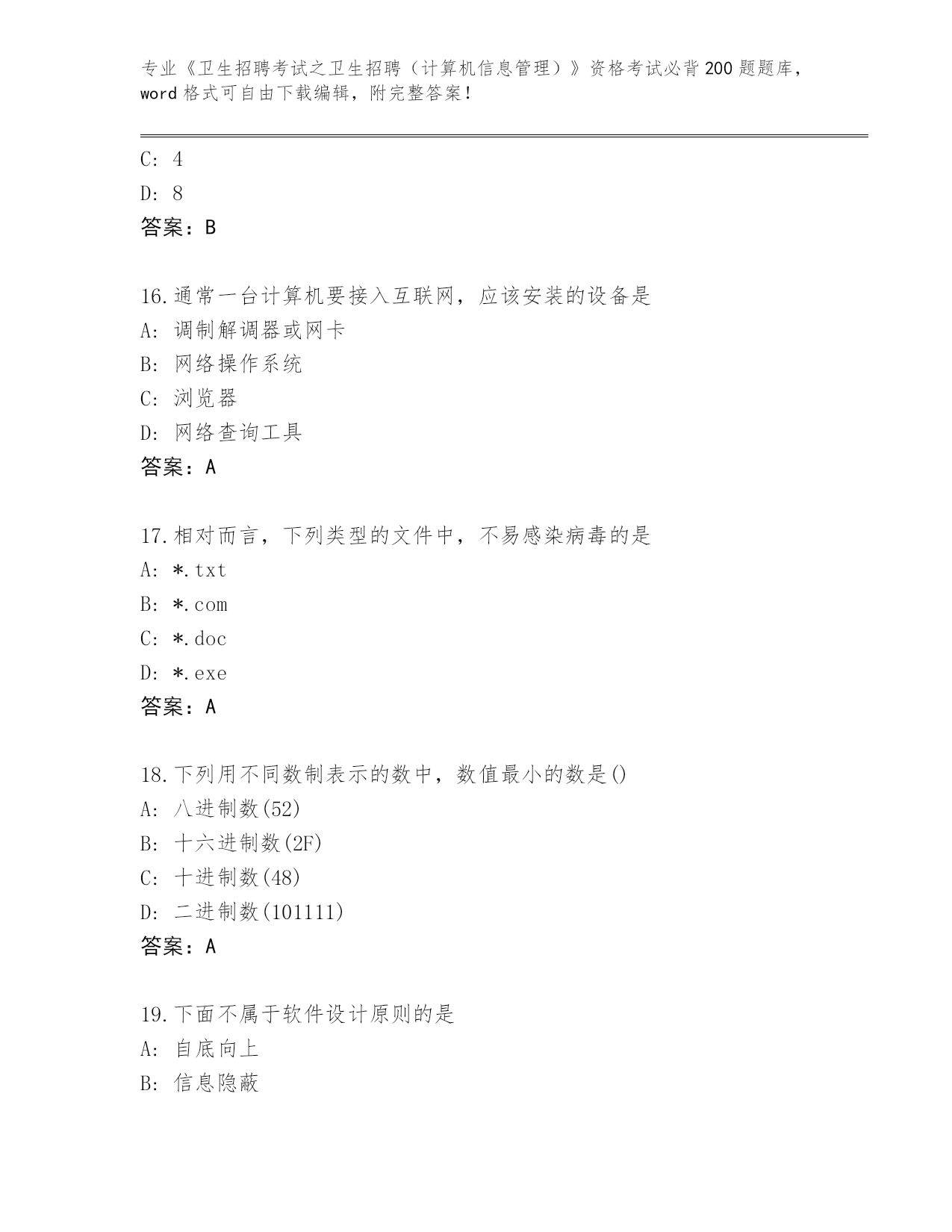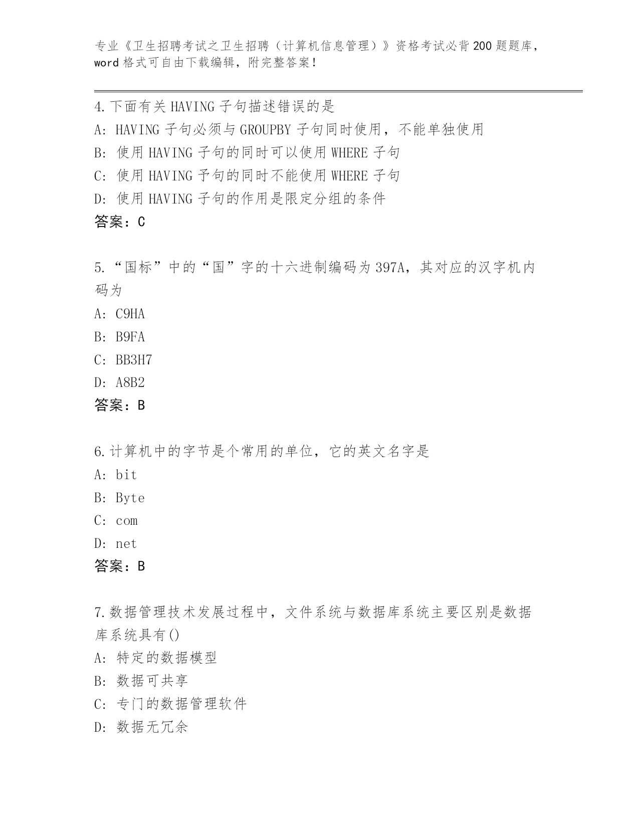 整理湖北省《卫生招聘考试之卫生招聘(计算机信息管理)》资格考试必背200题题库(达标题)