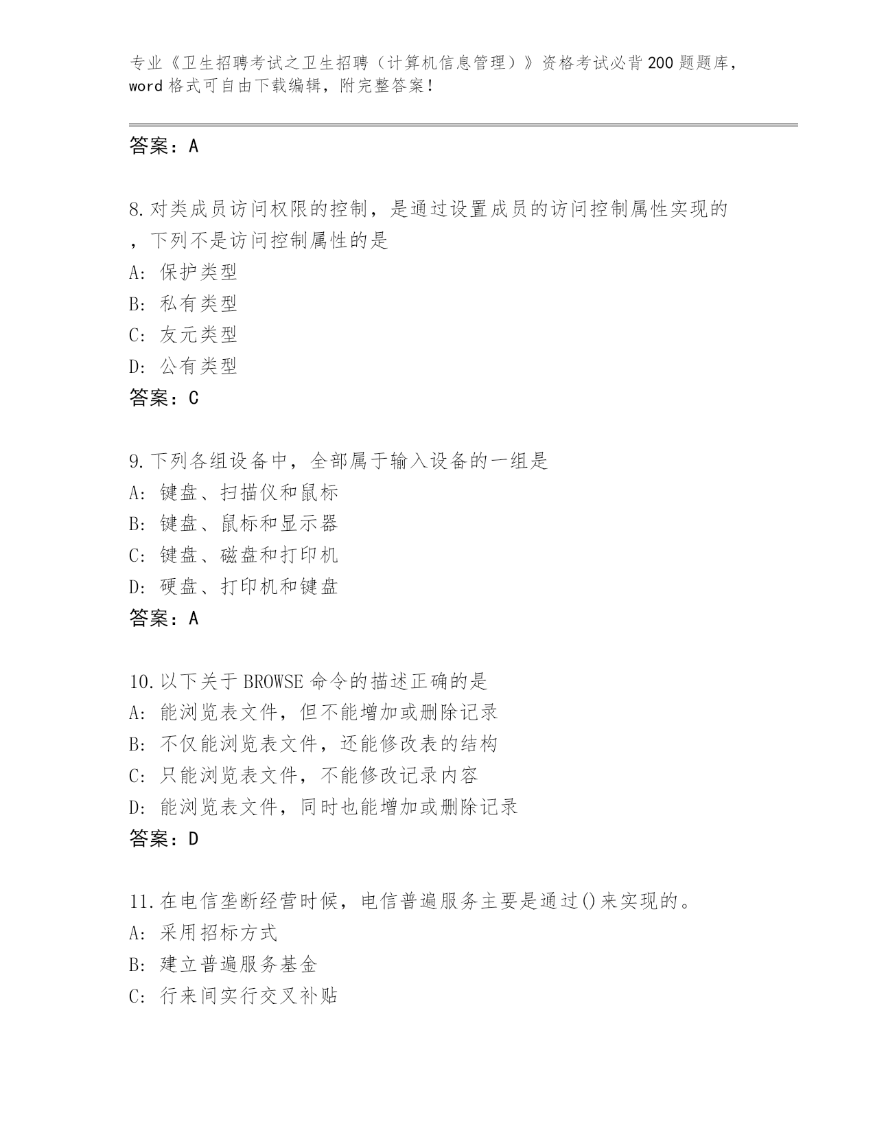 云南省马关县整理《卫生招聘考试之卫生招聘(计算机信息管理)》资格考试必背200题王牌题库附答案(基础题)