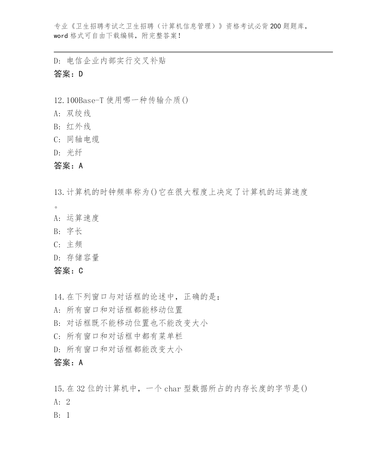 2024甘肃省《卫生招聘考试之卫生招聘(计算机信息管理)》考试必背200题题库【达标题】