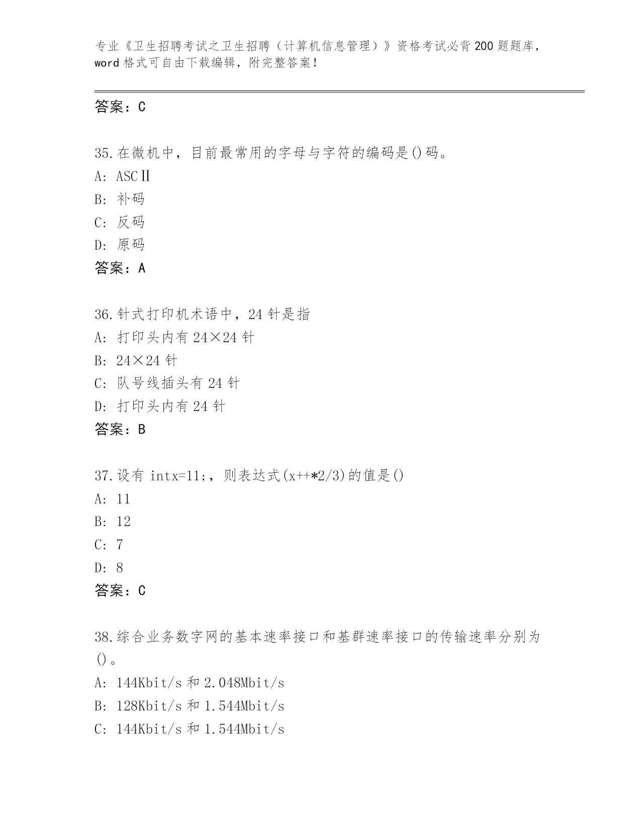 云南省石屏县2024《卫生招聘考试之卫生招聘(计算机信息管理)》考试必背200题大全【达标题】