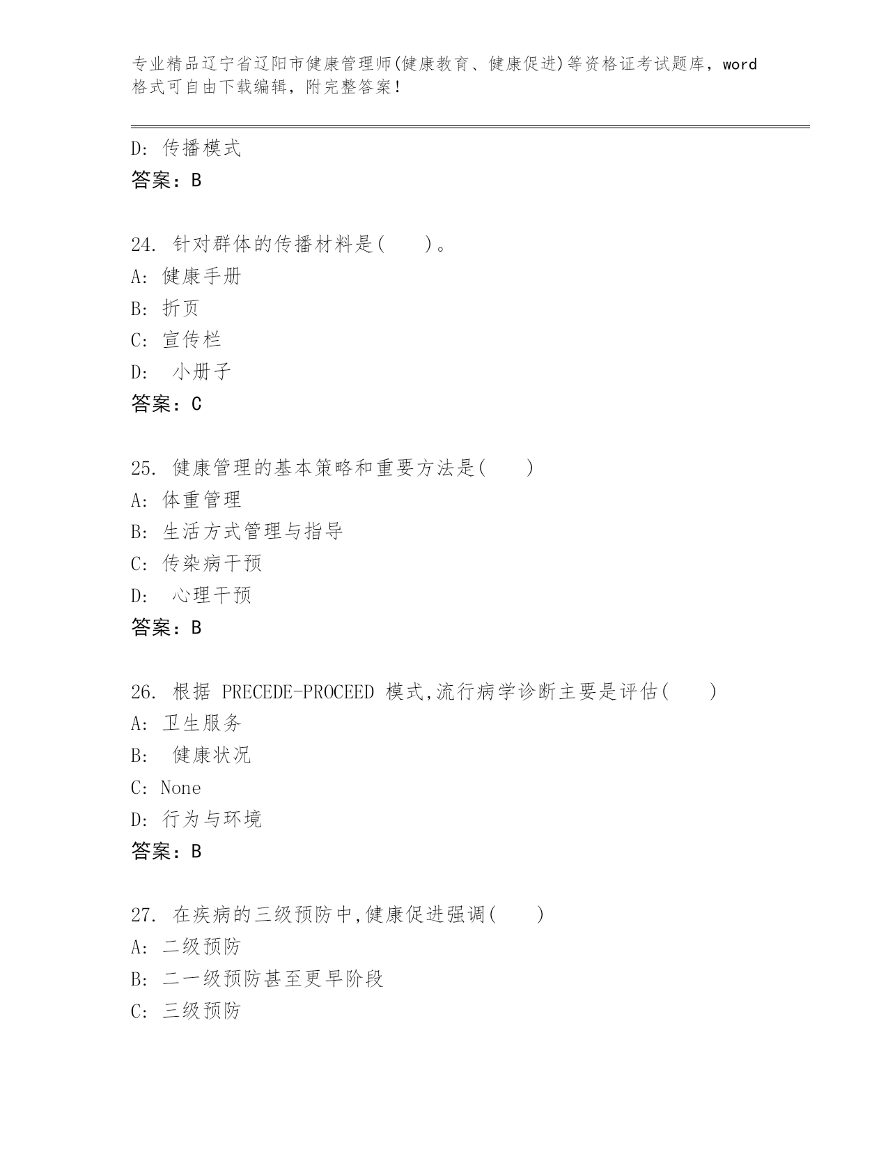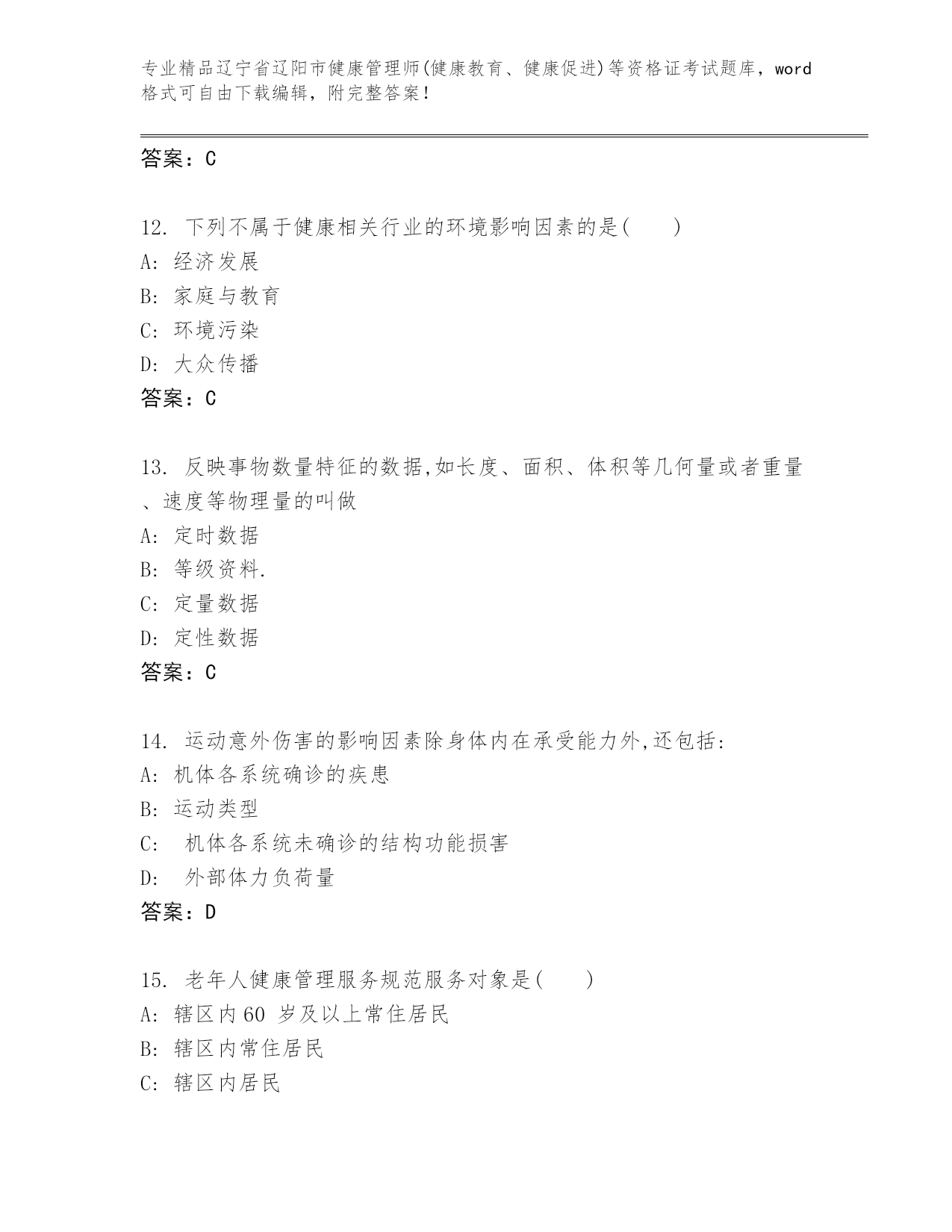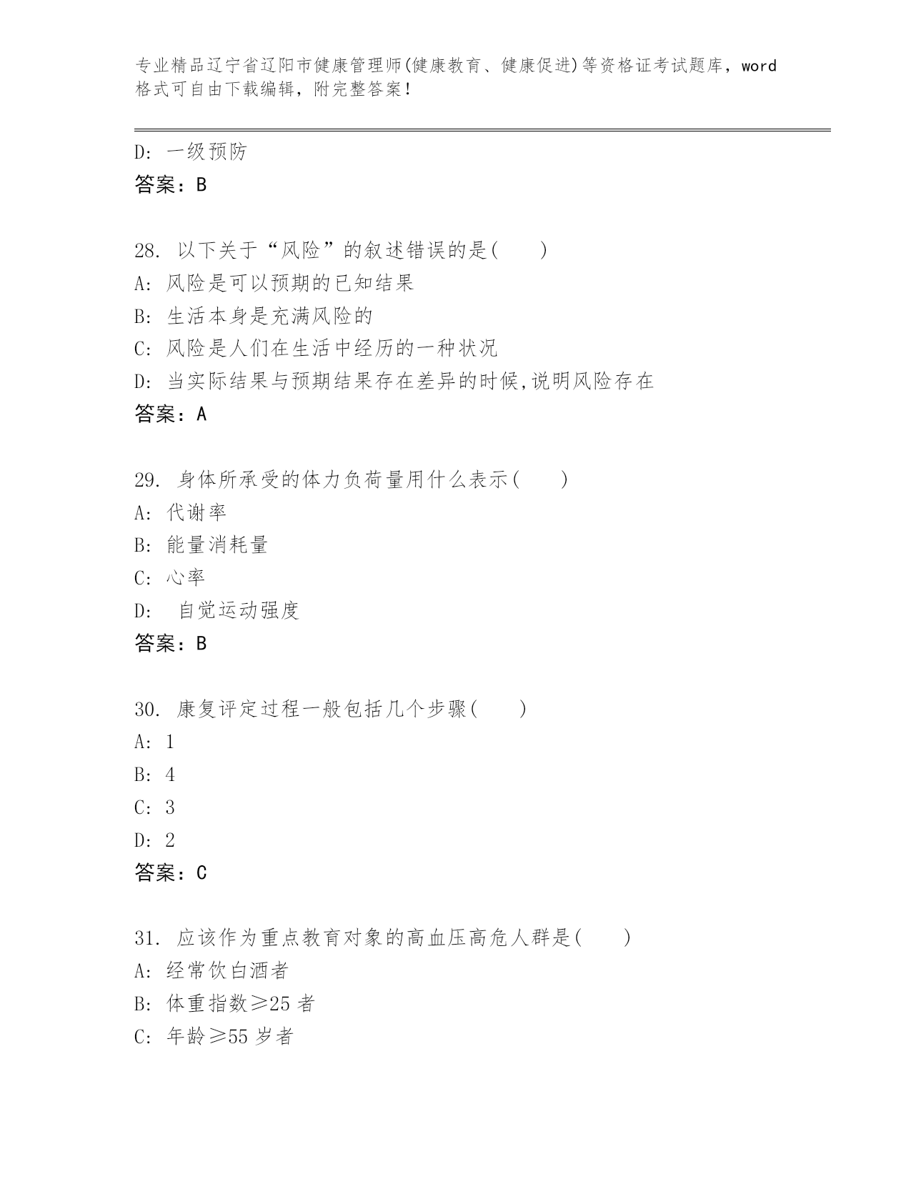 历年辽宁省辽阳市健康管理师(健康教育、健康促进)等资格证考试大全及答案【新】