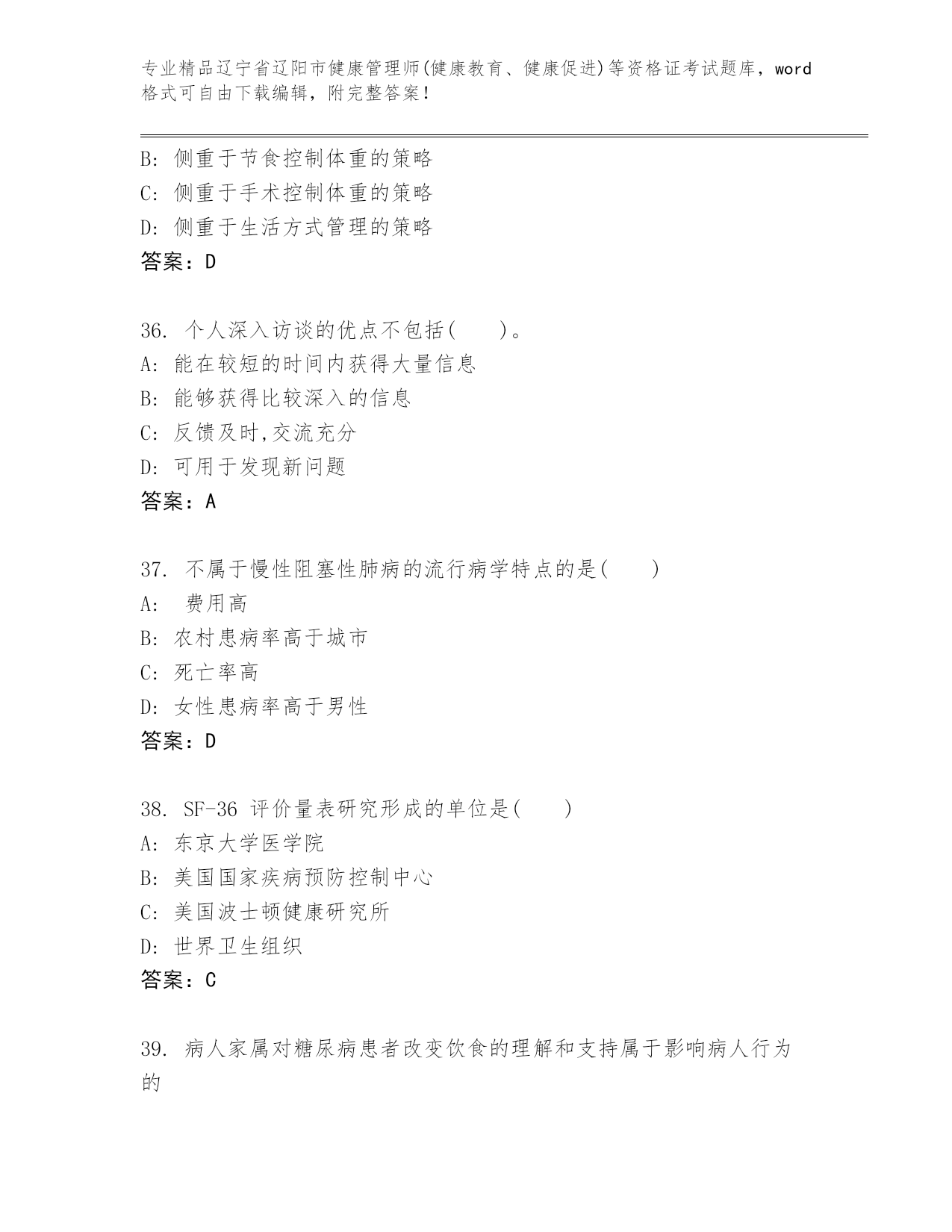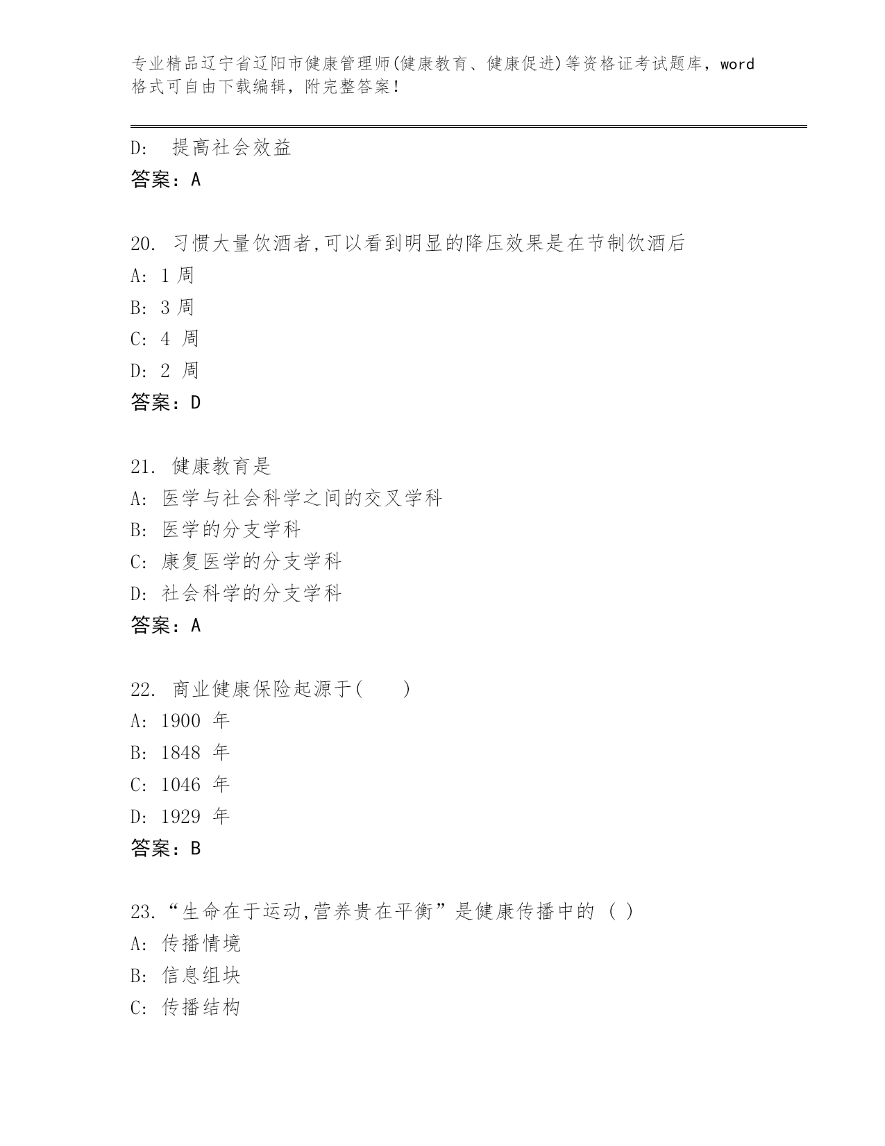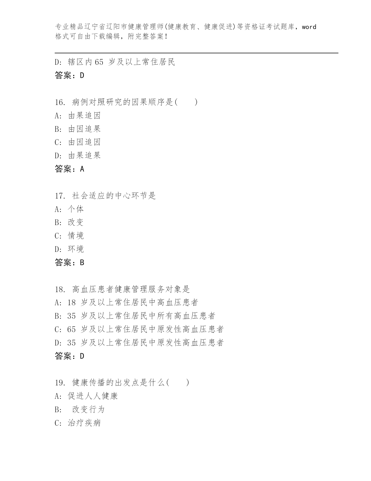 历年辽宁省辽阳市健康管理师(健康教育、健康促进)等资格证考试大全及答案【新】.docx