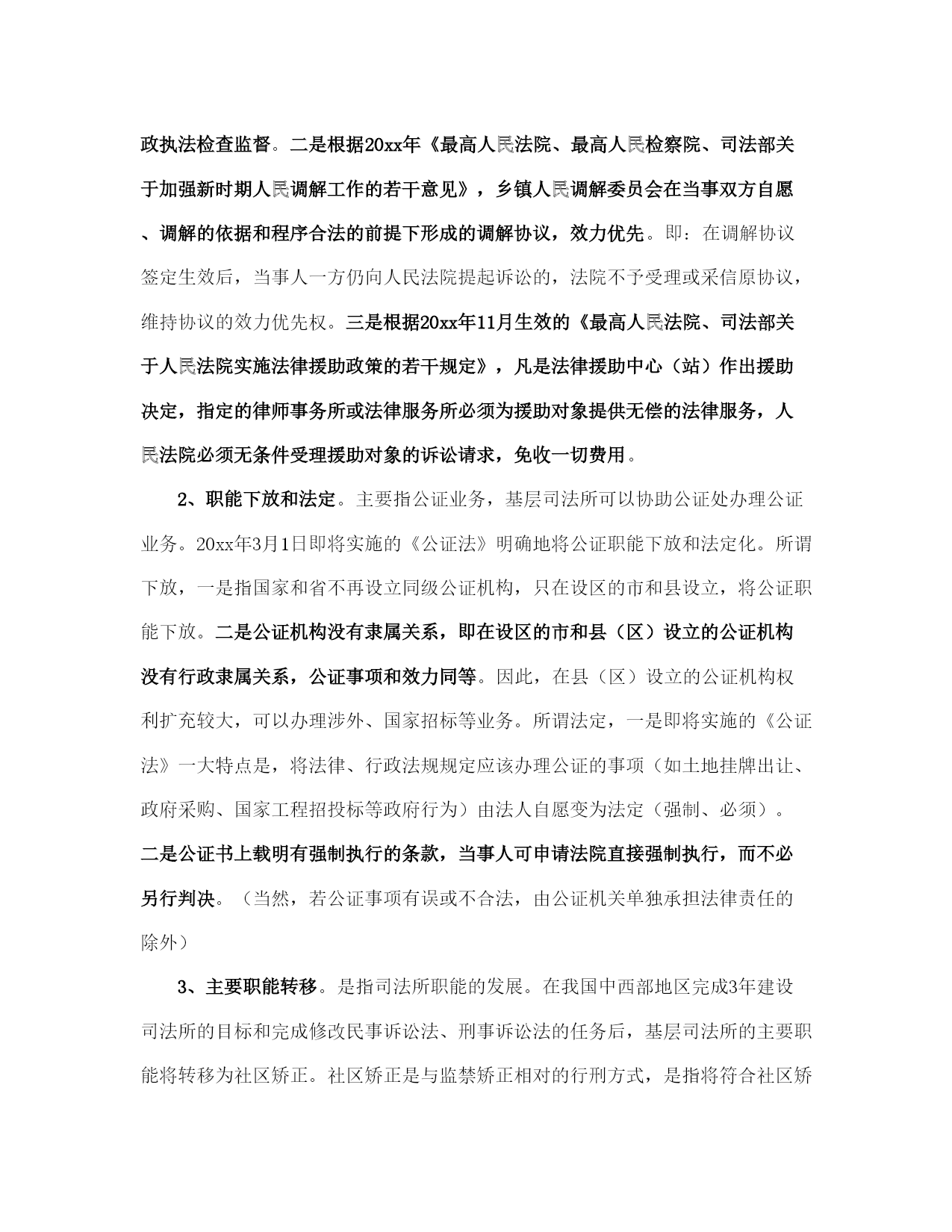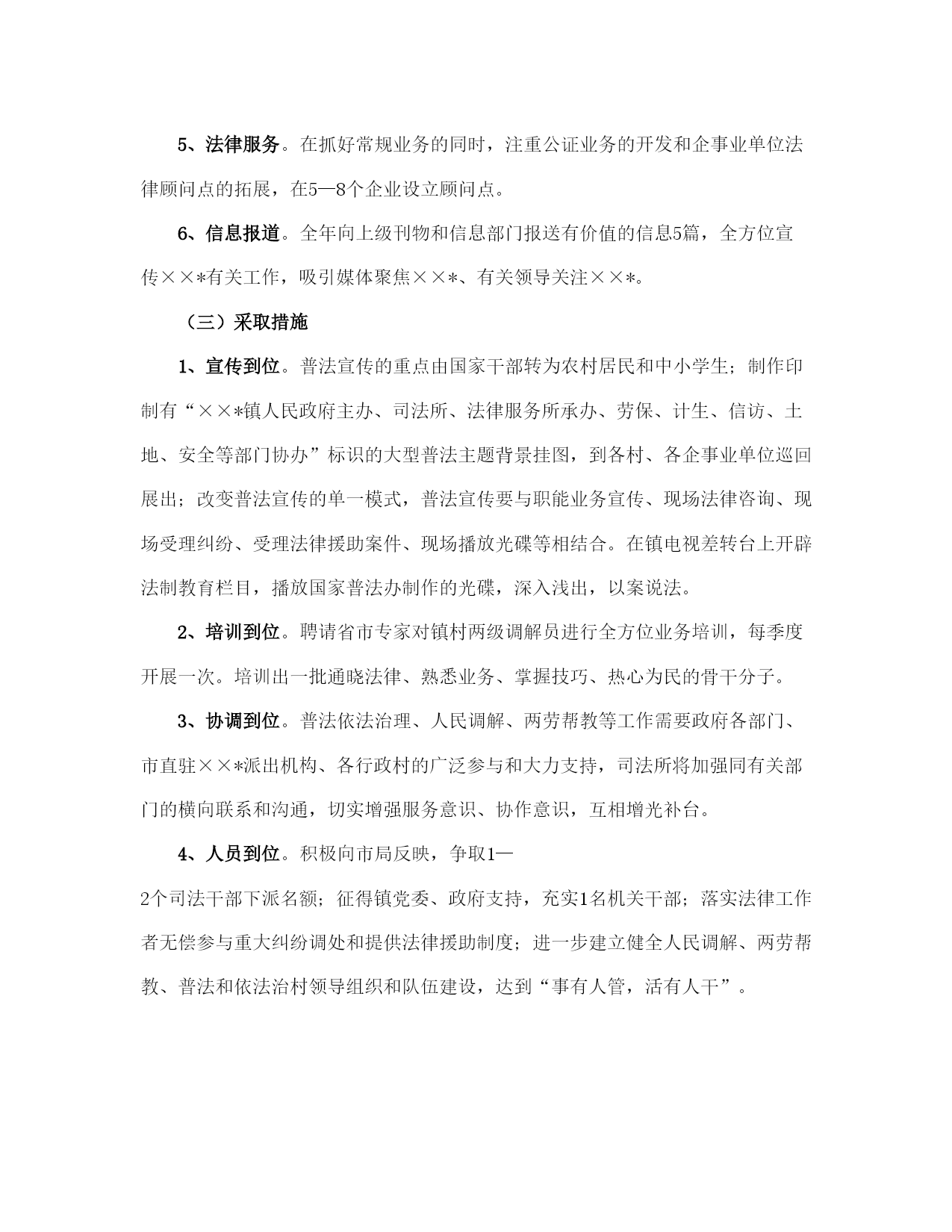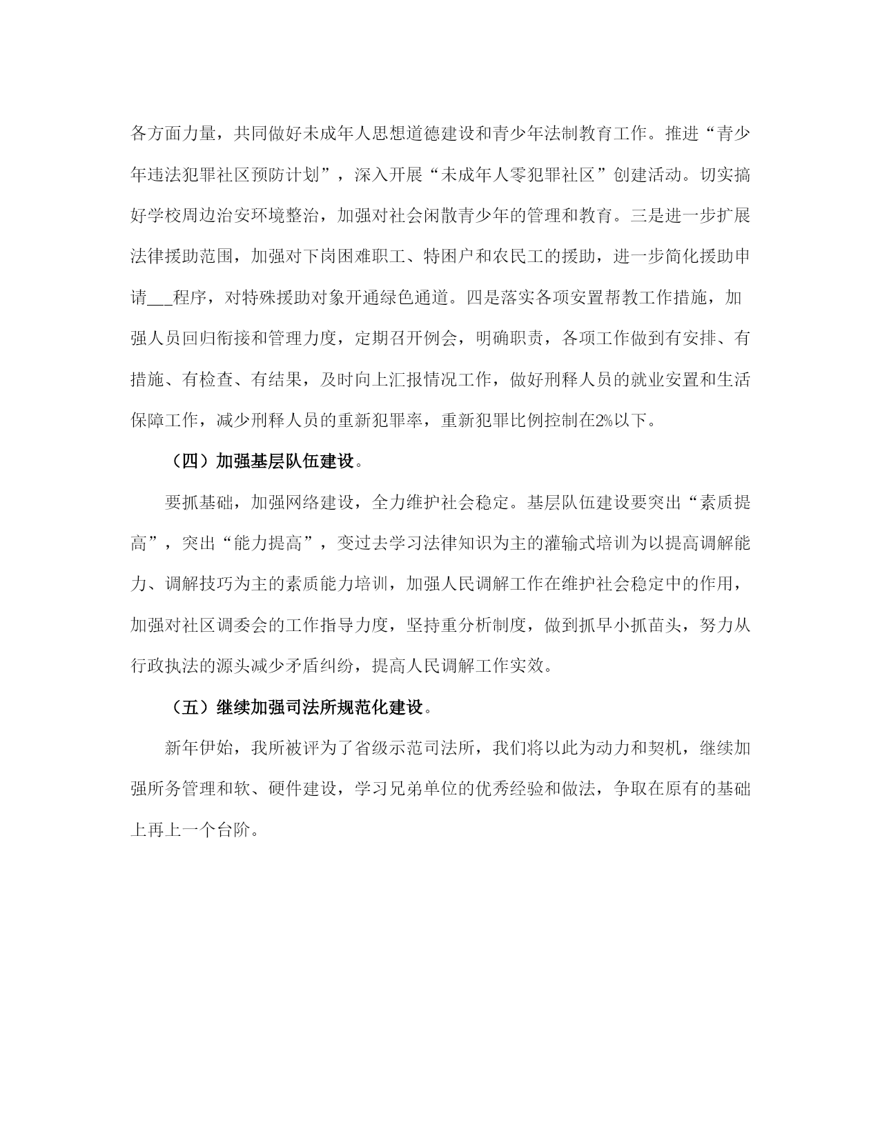司法所工作计划(完整版)文档资料可直接使用,可编辑,欢迎下载司法所工作计划司法所工作计划在刚刚过去的一年里,镇司法所的工作得到了镇党委、政府的大力支持,高标准完成了新所建设任务。20xx年,为了充分发挥镇司法所的职能作用,促进社会稳定,构建和谐××*,特将司法所的基本职能、新时期的新任务和20xx年的工作打算汇报如下:一、基本职能文秘114版权所有。根据郑州市司法局的统一部署,20xx年5月我所顺利完成了司法所、法律服务所两所合并任务,使司法所职能得到加强。具体职能是:1、协助乡镇政府开展依法治理工作和行政执法检查监督工作;2、指导管理人民调解工作,代表乡镇人民政府处理民间纠纷,参与重大疑难民间纠纷调解工作;3、组织开展普法宣传和法制教育工作;4、组织开展对刑满释放和解除劳动教养人员的过渡性安置和帮教工作;5、组织开展法律援助和“148”法律咨询服务工作;6、参与社会治安综合治理工作;7、做好基层法律服务工作(协办公证、代理诉讼、庭外调解等);8、完成乡镇人民政府和上级司法行政机关交办的其他有关工作。二、司法所工作面临的新形势、新机遇(一)自身职能的强化1、基本职能由虚到实。一是各级依法治理办公室设在同级司法行政机关的,在同级人大常委会的领导下,由司法行政部门牵头,会同有关部门,依法进行行政执法检查监督。二是根据20xx年《最高人民法院、最高人民检察院、司法部关于加强新时期人民调解工作的若干意见》,乡镇人民调解委员会在当事双方自愿、调解的依据和程序合法的前提下形成的调解协议,效力优先。即:在调解协议签定生效后,当事人一方仍向人民法院提起诉讼的,法院不予受理或采信原协议,维持协议的效力优先权。三是根据20xx年11月生效的《最高人民法院、司法部关于人民法院实施法律援助政策的若干规定》,凡是法律援助中心(站)作出援助决定,指定的律师事务所或法律服务所必须为援助对象提供无偿的法律服务,人民法院必须无条件受理援助对象的诉讼请求,免收一切费用。2、职能下放和法定。主要指公证业务,基层司法所可以协助公证处办理公证业务。20xx年3月1日即将实施的《公证法》明确地将公证职能下放和法定化。所谓下放,一是指国家和省不再设立同级公证机构,只在设区的市和县设立,将公证职能下放。二是公证机构没有隶属关系,即在设区的市和县(区)设立的公证机构没有行政隶属关系,公证事项和效力同等。因此,在县(区)设立的公证机构权利扩充较大,可以办理涉外、国家招标等业务。所谓法定,一是即将实施的《公证法》一大特点是,将法律、行政法规规定应该办理公证的事项(如土地挂牌出让、政府采购、国家工程招投标等政府行为)由法人自愿变为法定(强制、必须)。二是公证书上载明有强制执行的条款,当事人可申请法院直接强制执行,而不必另行判决。(当然,若公证事项有误或不合法,由公证机关单独承担法律责任的除外)3、主要职能转移。是指司法所职能的发展。在我国中西部地区完成3年建设司法所的目标和完成修改民事诉讼法、刑事诉讼法的任务后,基层司法所的主要职能将转移为社区矫正。社区矫正是与监禁矫正相对的行刑方式,是指将符合社区矫正条件的罪犯置于社区内,由专门的国家机关在相关社会团体和民间组织以及社会志愿者的协助下,在判决、裁定或决定确定的期限内,矫正其犯罪心理和行为恶习,并促进其顺利回归社会的非监禁执行活动。根据我国现行法律的规定,社区矫正的适用范围主要包括下列5种犯罪:1、被判处管制的。2、被宣告缓刑的。3、被暂予监外执行的,具体包括。(1)有严重疾病需要保外就医的;(2)怀孕或者正在哺育自己婴儿的妇女;(3)生活不能自理,适用暂予监外执行不致危害社会的。4、被裁定假释的。5、被剥夺政治权利,并在社会上服刑的。目前全国已有19个省、直辖市试行,正在扩大试点范围。(二)乡镇政府职能的转变随着乡镇政府的社会管理职能的不断强化和村级政权自治程度的提高,依法治理和人民调解工作将得到进一步的重视和加强。(三)弱势群体的法律需求弱势群体的利益越来越受到党和政府的关注。针对他们的经济和社会保障体系日益完善,其中包括法律保障,政府通过实施法律援助来实现“有理无钱也可以打官司”的目标,让弱势群体有理也可以讲出来。(四)构建和谐社会的需要和谐社会不是没有矛盾的社会,而是一个建立有完善矛盾纠纷排查调处制度和体系、能够及时有效运转、依法消除危害因素的社会。当前,社会处于转型期,也是各种矛盾凸现期,历史遗留的和经济社会发展带来的大量矛盾纠纷有85是非诉讼案件,需要化解调处,乡村两级组织维护稳定的任务越来越重,依法解决矛盾是大势所趋。今年,我市正在整合司法所工作计划政法资源,在各乡镇设立矛盾纠纷排查调处中心,建立大排查、大调处格局。三、20xx年工作打算(一)工作思路以创建