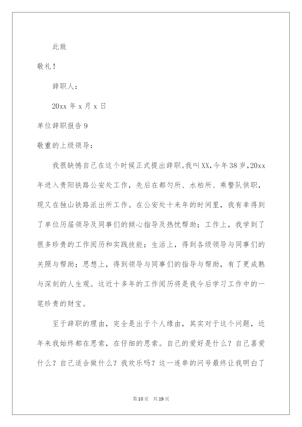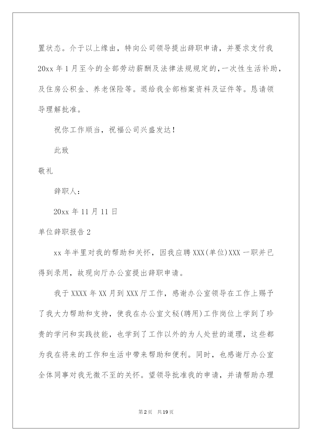 第PAGE\*Arabic\*MERGEFORMAT19页共NUMPAGES\*Arabic\*MERGEFORMAT19页第PAGE\*MERGEFORMAT19页共NUMPAGES\*MERGEFORMAT19页第PAGE\*MERGEFORMAT19页共NUMPAGES\*MERGEFORMAT19页第PAGE\*MERGEFORMAT19页共NUMPAGES\*MERGEFORMAT19页第PAGE\*MERGEFORMAT19页共NUMPAGES\*MERGEFORMAT19页第PAGE\*MERGEFORMAT19页共NUMPAGES\*MERGEFORMAT19页第PAGE\*MERGEFORMAT19页共NUMPAGES\*MERGEFORMAT19页第PAGE\*MERGEFORMAT19页共NUMPAGES\*MERGEFORMAT19页第PAGE\*MERGEFORMAT19页共NUMPAGES\*MERGEFORMAT19页第PAGE\*MERGEFORMAT19页共NUMPAGES\*MERGEFORMAT19页第PAGE\*MERGEFORMAT19页共NUMPAGES\*MERGEFORMAT19页2022单位辞职报告单位辞职报告15篇进入一家公司一段时间后,有可能我们会选择辞职,现在这个时候就要备好辞职报告。那么辞职报告应当包括什么内容呢?以下是我收集整理的单位辞职报告,仅供参考,欢迎大家阅读。单位辞职报告1敬重的领导:你好!我怀着依恋的心情写这封辞职信。首先感谢你们对我的信任让我进入桥梁公司工作。我于20xx年7月进入公司,被派往贵清项目工程部从事现场施工管理工作。期间自己在工作中团结同事、敬重领导、业务上虚心向老同志学习,不怕苦不怕累仔细完成领导支配的各项工作任务。生活中与同事团结互助、和谐相处,两年多大家已建立了深厚的感情。而今自己选择离开,心中有无比的依恋和无奈。由于家庭父母年岁渐高须要照看,加上本人很快就要结婚成家,特殊是单位长期拖欠工资致使我无实力向家庭供应必要的经济保障,深感愧疚。且现在贵清项目也没有我的工作任务,我近段时间处于闲置状态。介于以上缘由,特向公司领导提出辞职申请,并要求支付我20xx年1月至今的全部劳动薪酬及法律法规规定的,一次性生活补助,及住房公积金、养老保险等。退给我全部档案资料及证件等。恳请领导理解批准。祝你工作顺当,祝福公司兴盛发达!此致敬礼辞职人:20xx年11月11日单位辞职报告2xx年半里对我的帮助和关怀,因我应聘XXX(单位)XXX一职并已得到录用,故现向厅办公室提出辞职申请。我于XXXX年XX月到XXX厅工作,感谢办公室领导在工作上赐予了我大力帮助和支持,使我在办公室文秘(聘用)工作岗位上学到了珍贵的学问和实践技能,也学到了工作以外的为人处世的道理,这些都为我在将来的工作和生活中带来帮助和便利。同时,也感谢厅办公室全体同事对我无微不至的关怀。望领导批准我的申请,并请帮助办理相关离职手续,在正式离职之前我将仔细接着做好目前的每一项工作。祝自治区XXX厅事业蓬勃发展,祝办公室领导和同事们前程似锦,鹏程万里!此致敬礼!辞职人:xx年xx月xx日单位辞职报告3敬重的主任:您好!工作近四年来,发觉自己在工作、生活中,所学学问还有许多欠缺,已经不能适应社会发展的须要,因此渴望回到校内,接着深造。经过慎重考虑之后,特此提出申请:我自愿申请辞去在xx的一切职务,敬请批准。在x四年的时间里,我有幸得到了单位历届领导及同事们的倾心指导及热忱帮助。工作上,我学到了很多珍贵的科研阅历和实践技能,对科研工作有了大致的了解。生活上,得到各级领导与同事们的关照与帮助;思想上,得到领导与同事们的指导与帮助,有了更成熟与深刻的人生观。这近四年多的工作阅历将是我今后学习工作中的第一笔珍贵的财宝。在这里,特殊感谢YYY(xx的上级单位)A主任、B主任、C主任在过去的工作、生活中赐予的大力扶持与帮助。尤其感谢Z主任在x二年来的关照、指导以及对我的信任和在人生道路上对我的指引。感谢全部赐予过我帮助的同事们。望领导批准我的申请,并请帮助办理相关离职手续,在正式离开之前我将仔细接着做好目前的每一项工作。祝您身体健康,事业顺心。并祝YYY、事业蓬勃发展。辞职人:20xx年xx月xx日单位辞职报告4敬重的x主任:您好!工作近四年来,发觉自己在工作、生活中,所学学问还有许多欠缺,已经不能适应社会发展的须要,因此渴望回到校内,接着深造。经过慎重考虑之后,特此提出申请:我自愿申请辞去在xx的一切职务,敬请批准。在近四年的时间里,我有幸得到了单位历届领