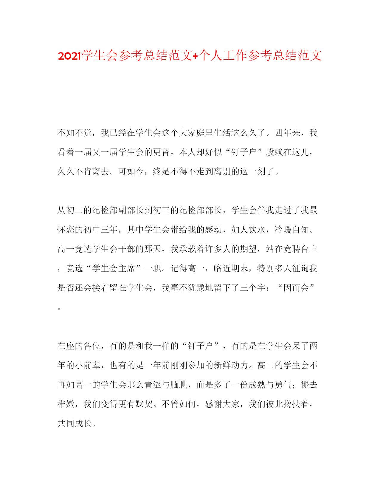 【精编】学生会参考总结范文个人工作参考总结范文