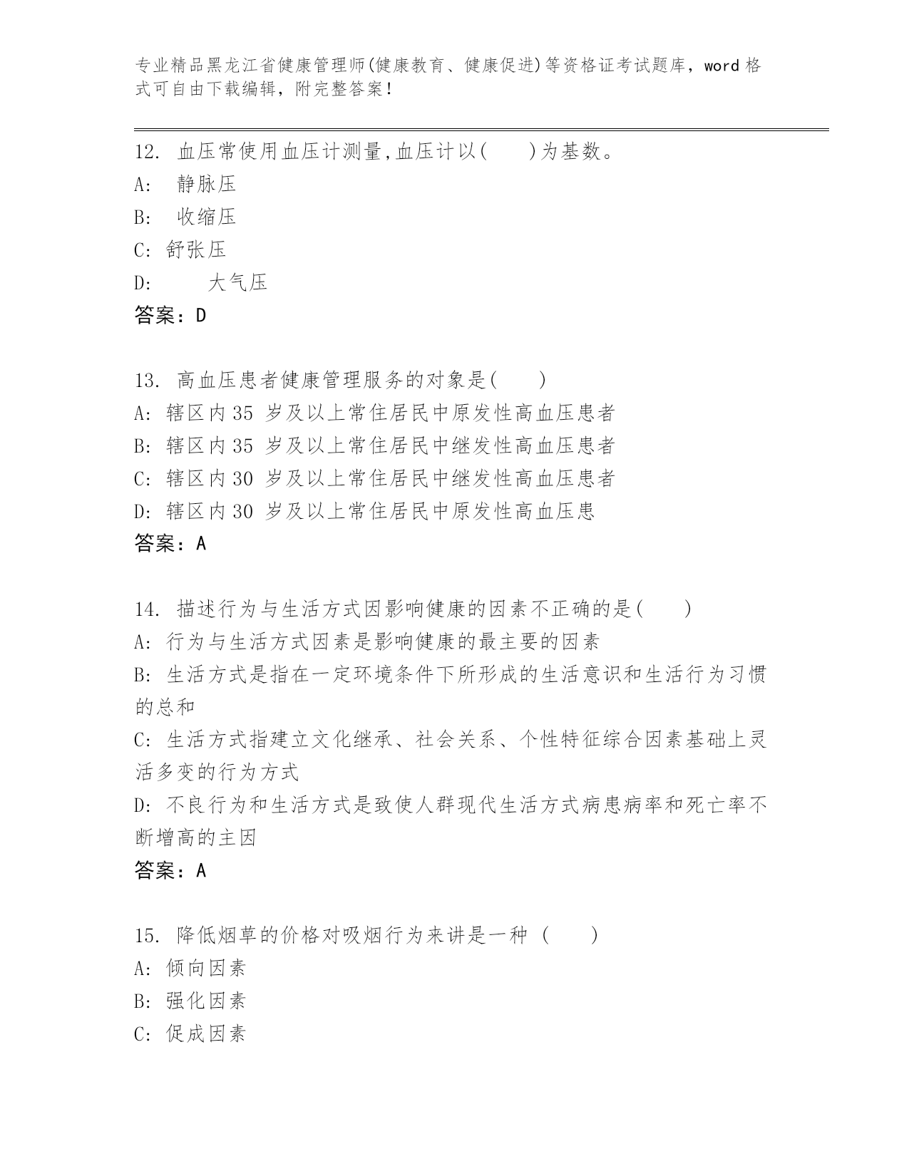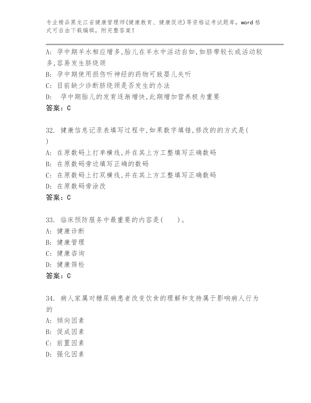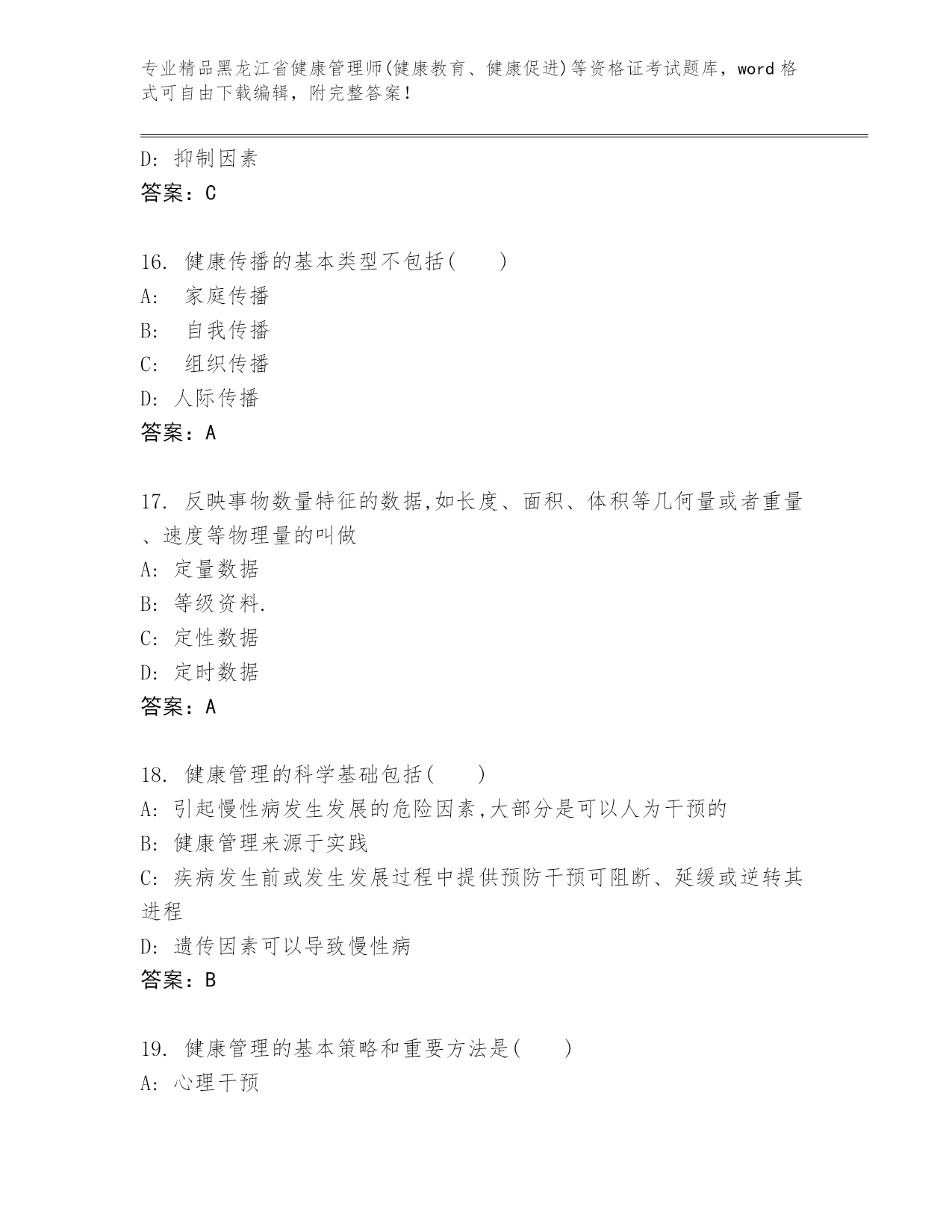 历年黑龙江省健康管理师(健康教育、健康促进)等资格证考试及答案免费下载