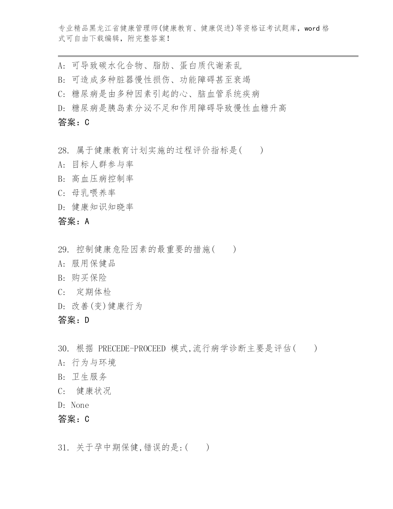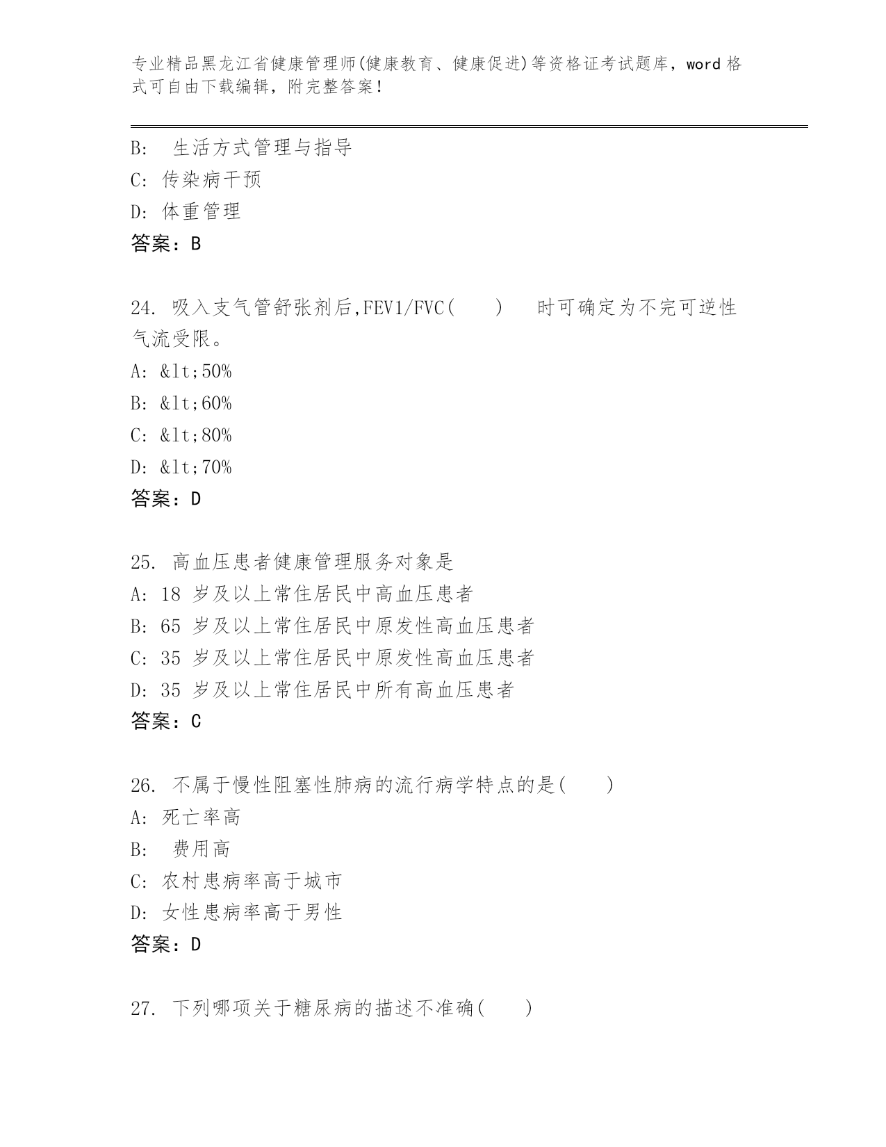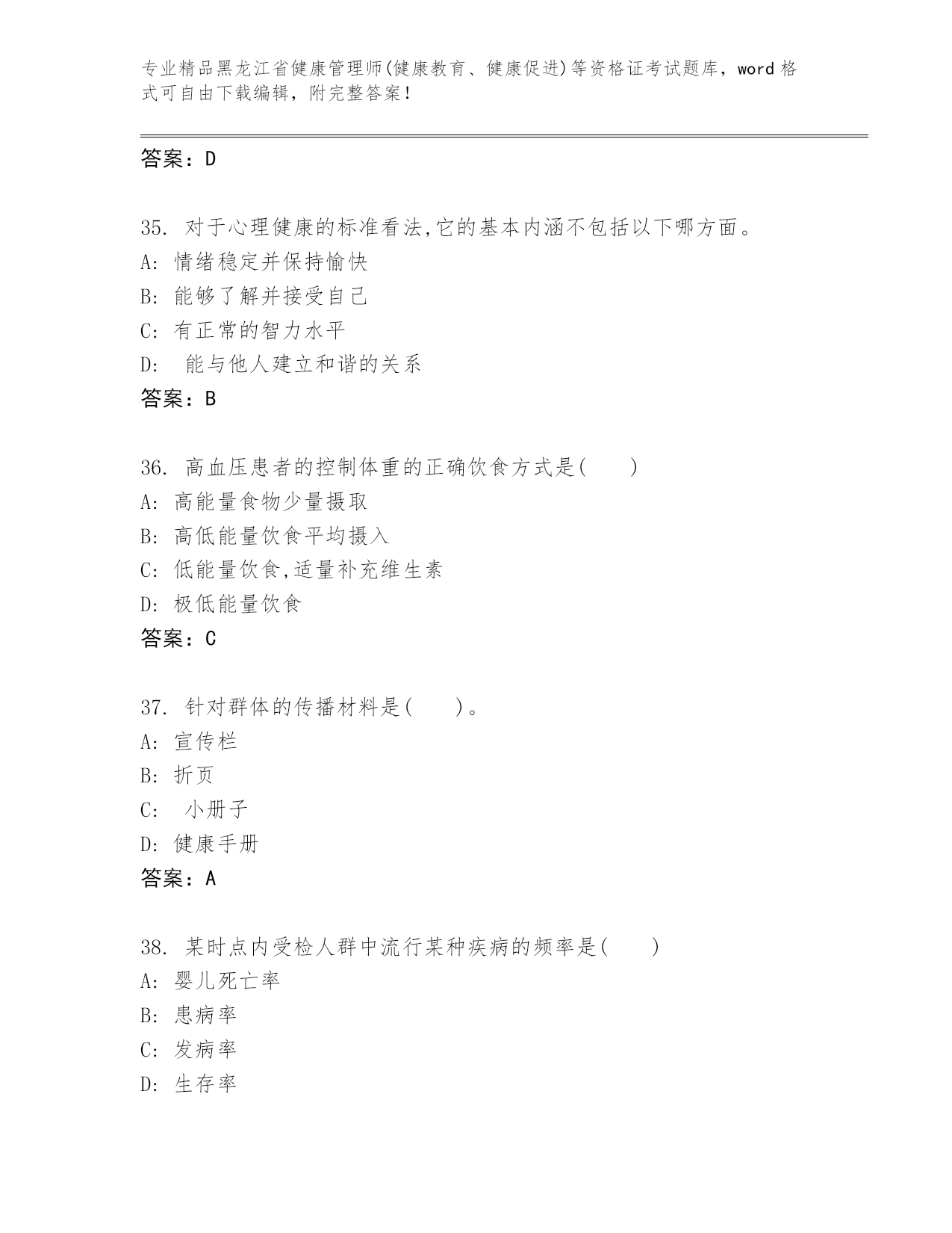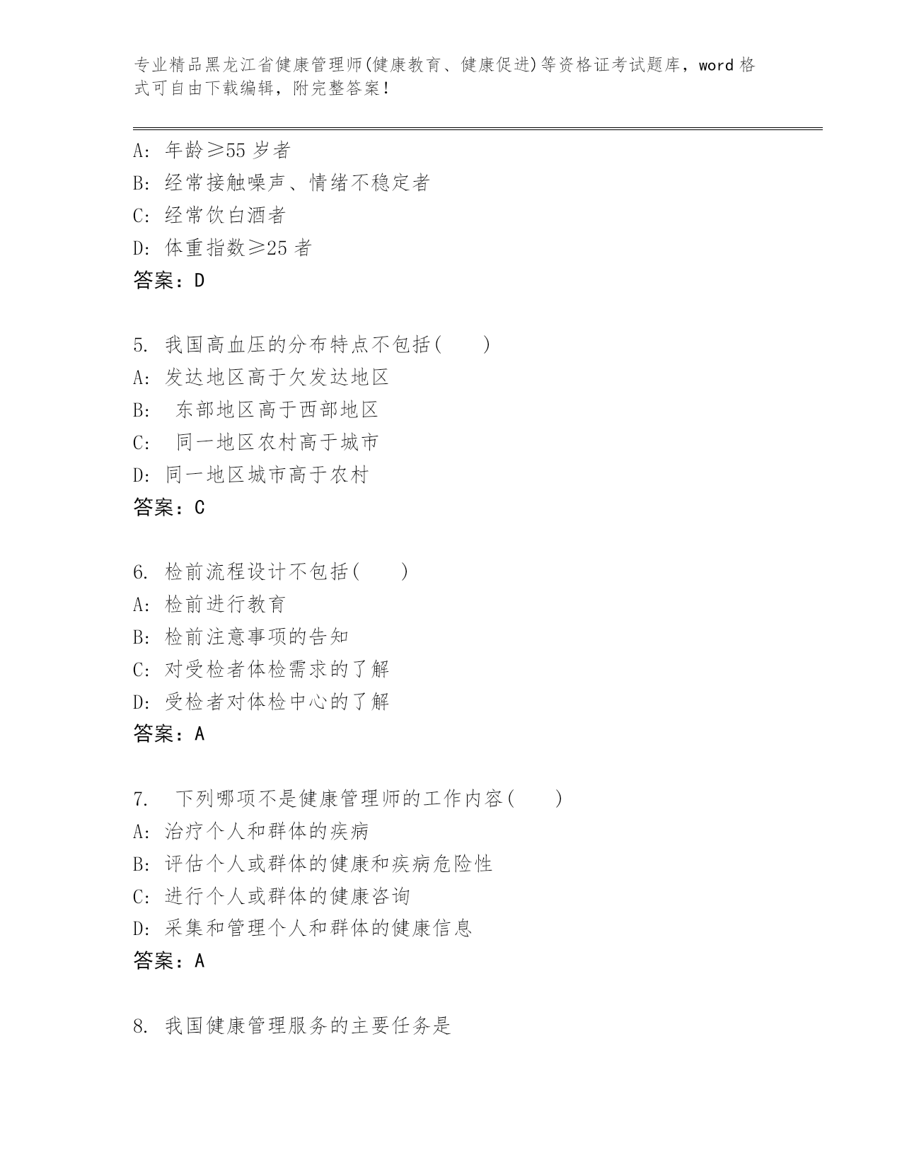 历年黑龙江省健康管理师(健康教育、健康促进)等资格证考试及答案免费下载