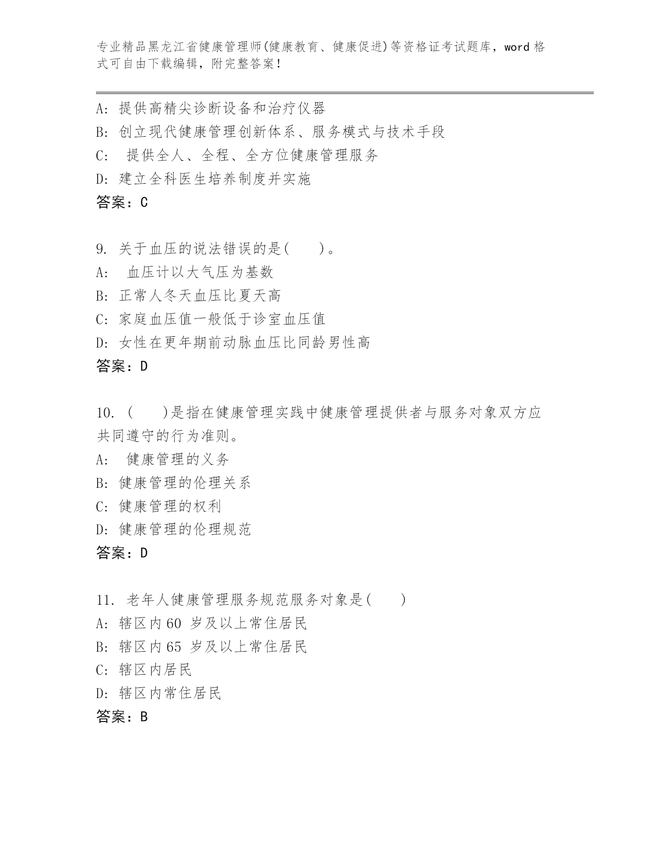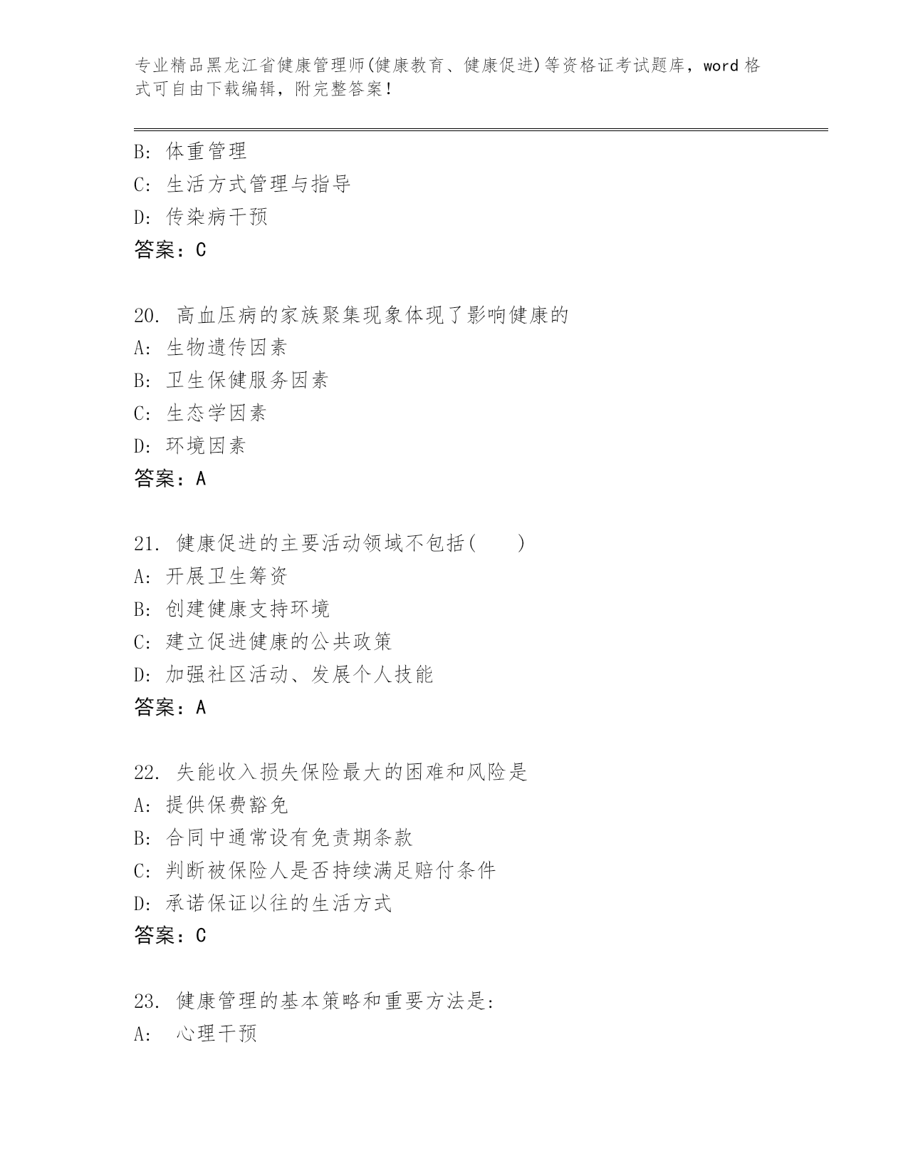 历年黑龙江省健康管理师(健康教育、健康促进)等资格证考试及答案免费下载.docx