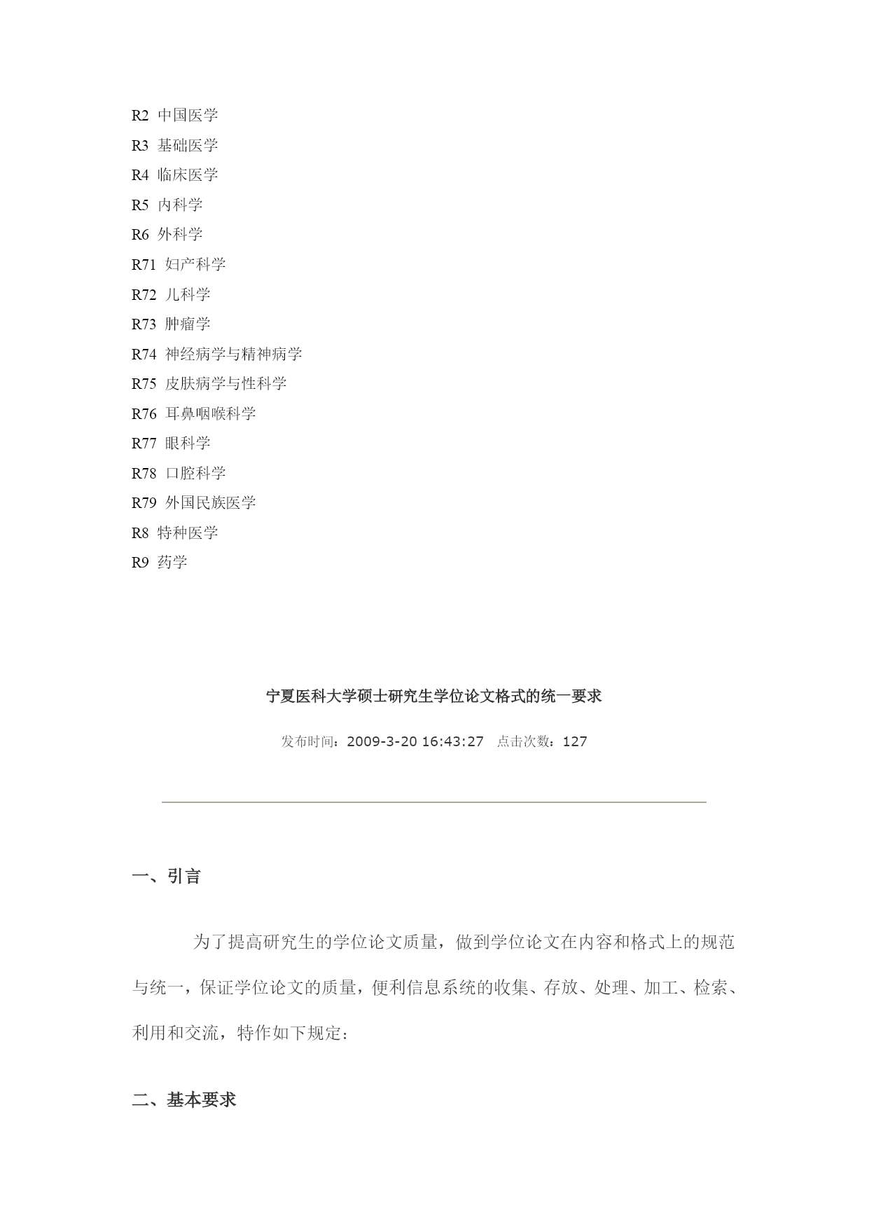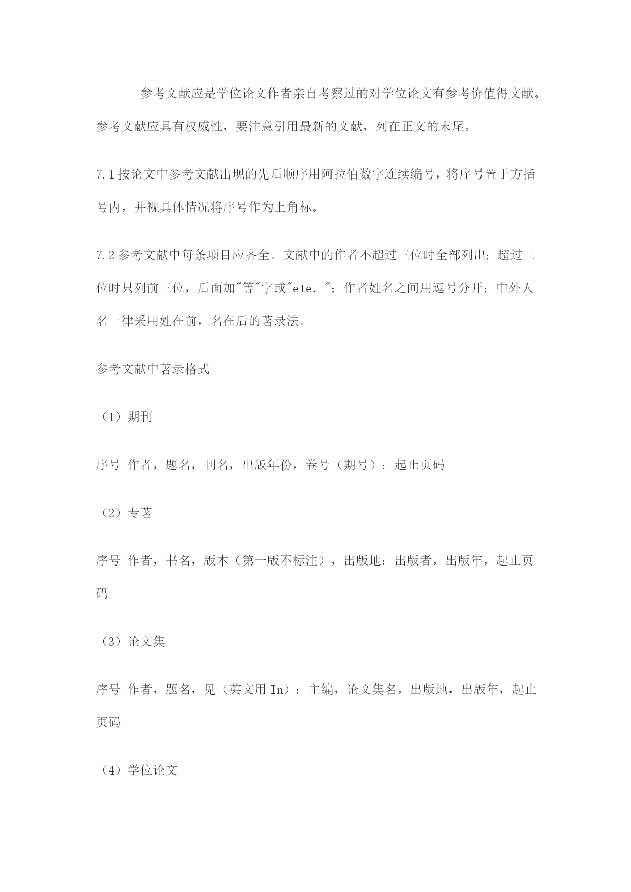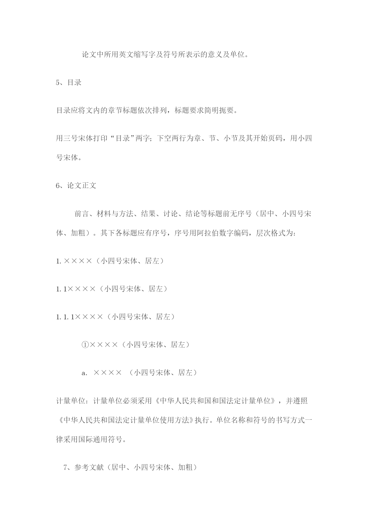 分类号:单位代码:10752密级:公开学号:宁夏医科大学硕士研究生学位论文中文论文题目(二号黑体)英文论文题目(16ptTimeNewRoman,Bold)学位申请人:指导教师姓名、职称指导教师:合作指导教师:医学、理学严格按照专业名称填写申请学位门类级别:按照导师的研究方向填写专业名称:研究方向:严格按照所在学院名称填写所在学院:论文完成日期:宁夏医科大学研究生部NingxiaMedicalUniversityThesisforApplicationofMaster’sDegree英文论文题目(16ptTimeNewRoman,Bold)Student’sName:Supervisor:Assistantsupervisor:SubjectCategory:Major:Specialty:School:CompletionDate:宁夏医科大学学位论文独创性声明本人郑重声明:所呈交的学位论文,是个人在导师的指导下,独立进行研究工作所取得的成果,无抄袭及编造行为。除文中已经特别加以注明引用的内容外,本论文不含任何其他个人或集体已经发表或撰写过的作品成果。对本文的研究做出重要贡献的个人和集体,均已在文中以明确方式标明并致谢。本人完全意识到本声明的法律结果由本人承担。论文作者签名_____论文导师签名_____年月日年月日宁夏医科大学关于学位论文使用授权的声明宁夏医科大学有权保留使用本人学位论文,同意学校按规定向国家有关部门机构送交论文的复印件和电子版,允许被查阅和借阅。本人授权宁夏医科大学可以将本学位论文的全部或部分内容编入有关数据库进行检索,可以采用影印、缩印或其他复印手段保存和汇编本学位论文。可以公布(包括刊登)论文的全部或部分内容。(保密论文在解密后应遵守此规定)论文作者签名_____论文导师签名_____年月日年月日书脊的书写页边学位论文的书脊用小三号仿宋字书写,上方写论文题目,下方写申请人姓名,距上下页边均为5cm,如下图:5cm学号题目姓名5cm页边注:1、申请学位门类级别:遗传学、生理学专业填:理学其它专业均填:医学2、专业名称:按二级学科填写,如:外科学、人体解剖与组织胚胎学3、研究方向:按导师研究方向填写4、分类号:R医学、卫生R1预防医学、卫生学R2中国医学R3基础医学R4临床医学R5内科学R6外科学R71妇产科学R72儿科学R73肿瘤学R74神经病学与精神病学R75皮肤病学与性科学R76耳鼻咽喉科学R77眼科学R78口腔科学R79外国民族医学R8特种医学R9药学宁夏医科大学硕士研究生学位论文格式的统一要求发布时间:2009-3-2016:43:27点击次数:127一、引言为了提高研究生的学位论文质量,做到学位论文在内容和格式上的规范与统一,保证学位论文的质量,便利信息系统的收集、存放、处理、加工、检索、利用和交流,特作如下规定:二、基本要求1、学位论文应能表明作者确已在本门学科上掌握了坚实的基础理论和系统的专门知识,并对研究课题有新的见解,有从事科学研究工作或独立担任专业技术工作的能力。2、学位论文一般用中文撰写,科研型论文正文一般不少于2万字,临床型论文正文一般不少于1万字。三、编排要求1、学位论文由作者在计算机上输入、编排与打印完成。2、字体与间距:学位论文字体为小四号宋体,字间距设置为标准字间距,行间距设置为固定值26磅;按每页38字×26行设置。3、页面设置:学位论文须用A4白纸,80页以下用单面打印,80页以上的学位论文用双面打印面。学位论文页边距按以下标准设置:上边距(天头)为:30mm;下边距(地脚):28mm;左边距和右边距为:22mm;装订线:6mm;页眉:18mm;页脚:18mm。4、页眉:页眉从摘要页开始到论文最后一页,均需设置。页眉内容:单面印制的论文,左对齐为“宁夏医科大学硕士研究生学位论文”,右对齐为各章章名;双面印制的论文,左页居中为“宁夏医科大学硕士研究生学位论文”,右页居中为各章章名。打印字号为小5号宋体,页眉之下有一条下划线。5、页脚:从论文主体部分(引言或绪论)开始,用阿拉伯数字连续编页,页码位于每页页脚的中部。6、前置部分单独编页。7、图:图号按顺序编号,如图1、图2………。绘图必须工整、清晰、规范。示意图应能清楚反映图示内容;照片应在右下角给出放大标尺。图量较多时,可将图置于正文后(参考文献之前)。8、表格:表格按顺序编号,如表1、表2………。表应有标题,表内必须按规定的符号标注单位。四、论文组成部分论文内容一般应由十个主要部分组成,依次