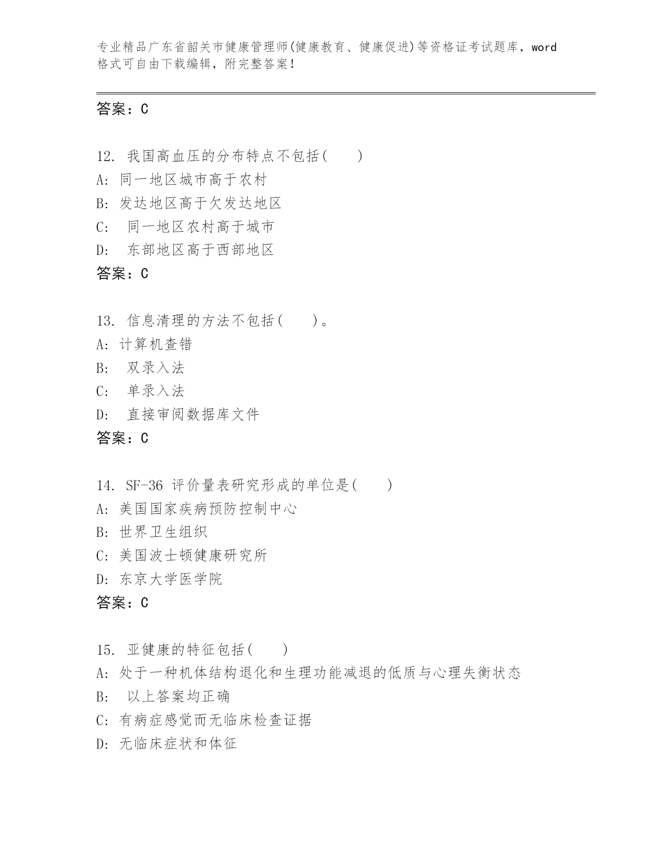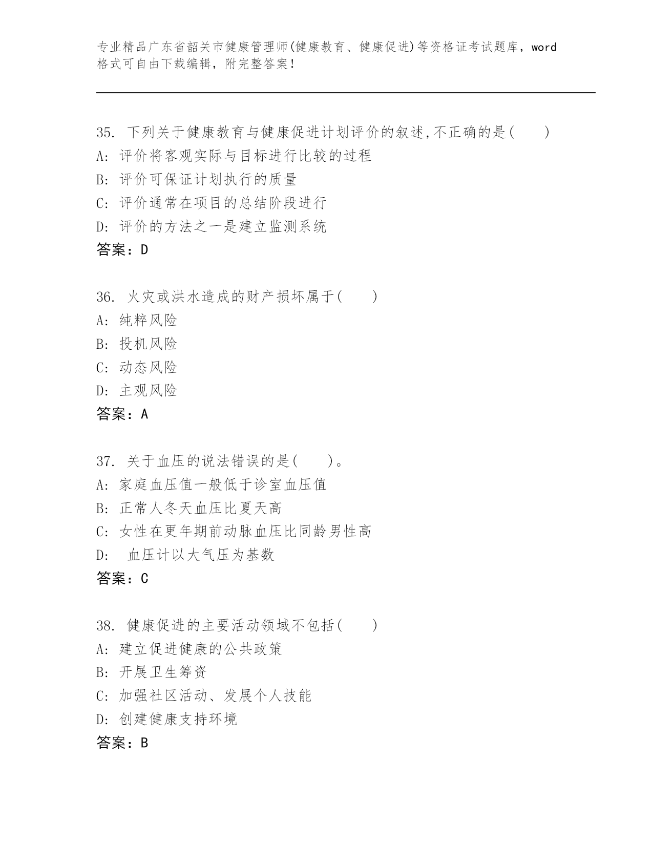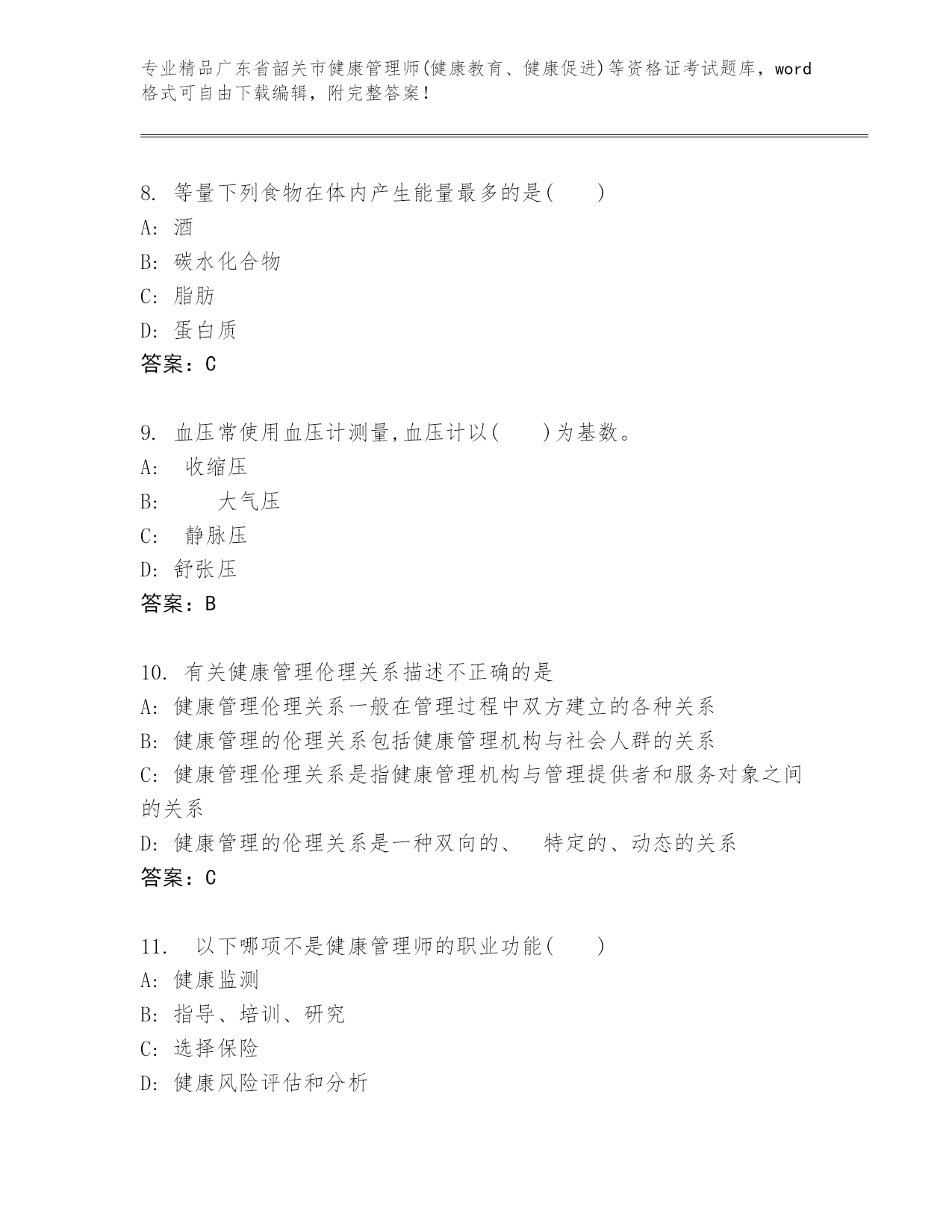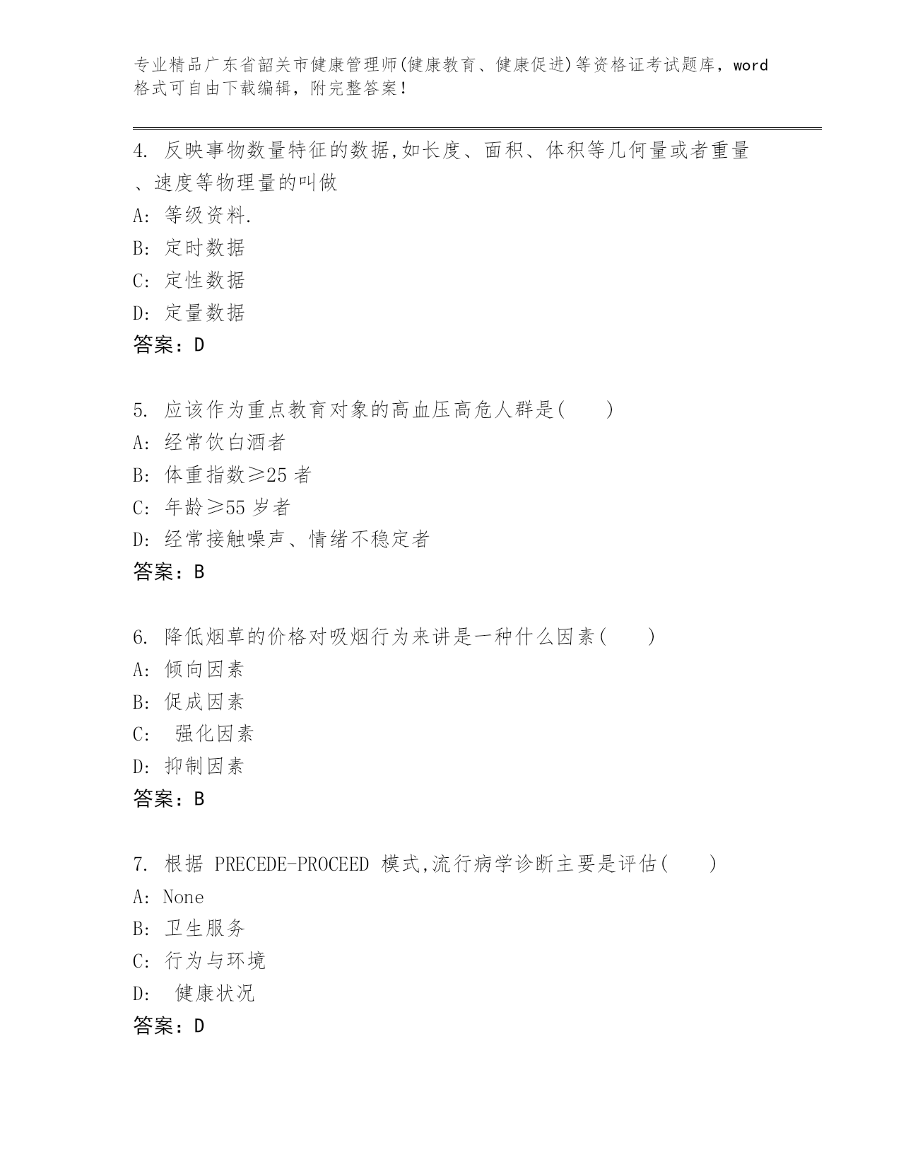 精心整理广东省韶关市健康管理师(健康教育、健康促进)等资格证考试真题(典型题).docx