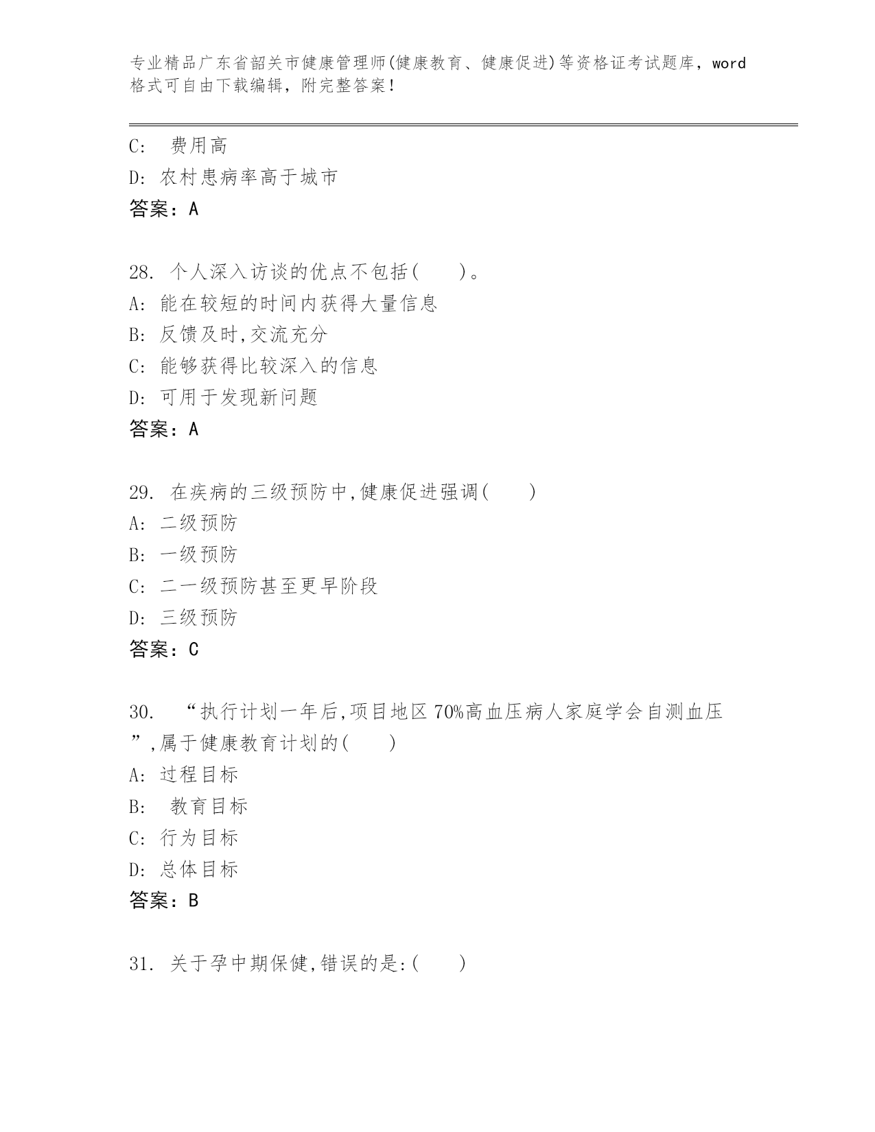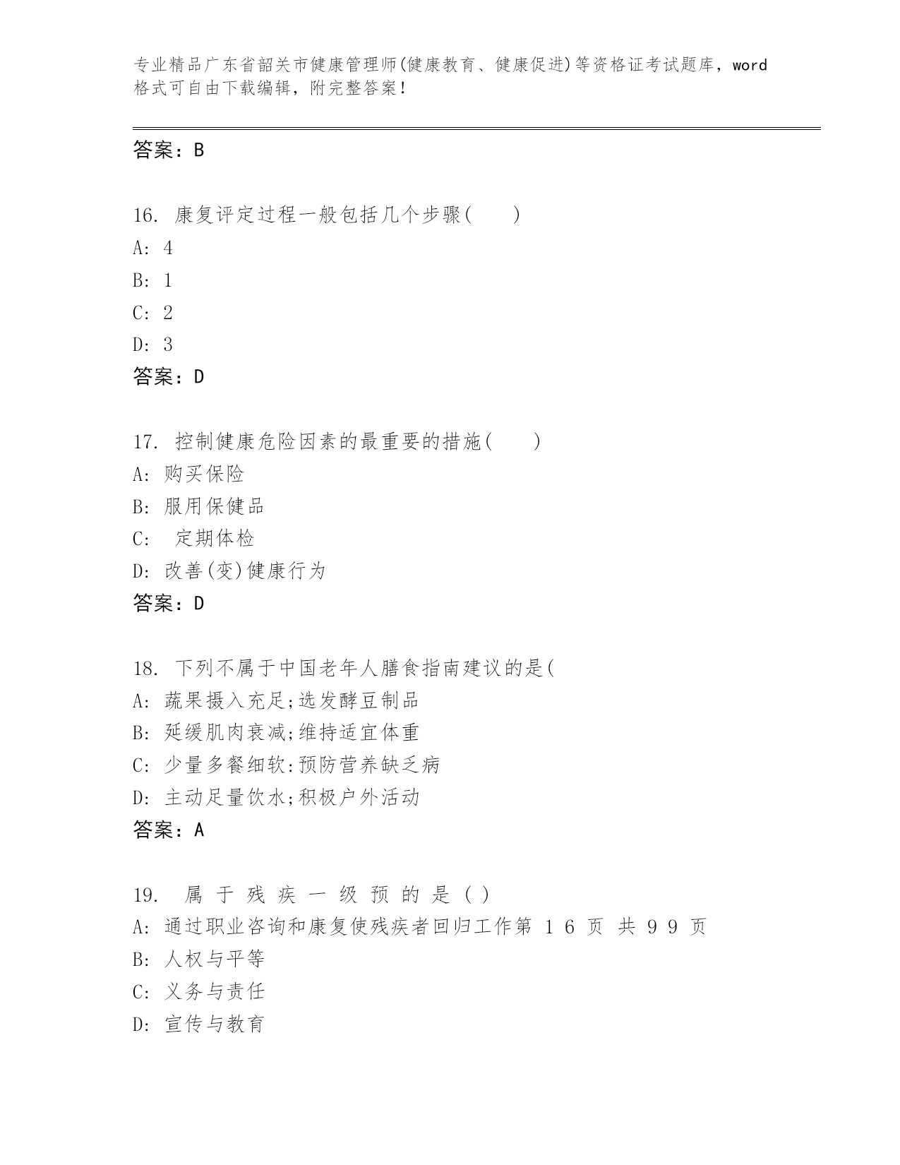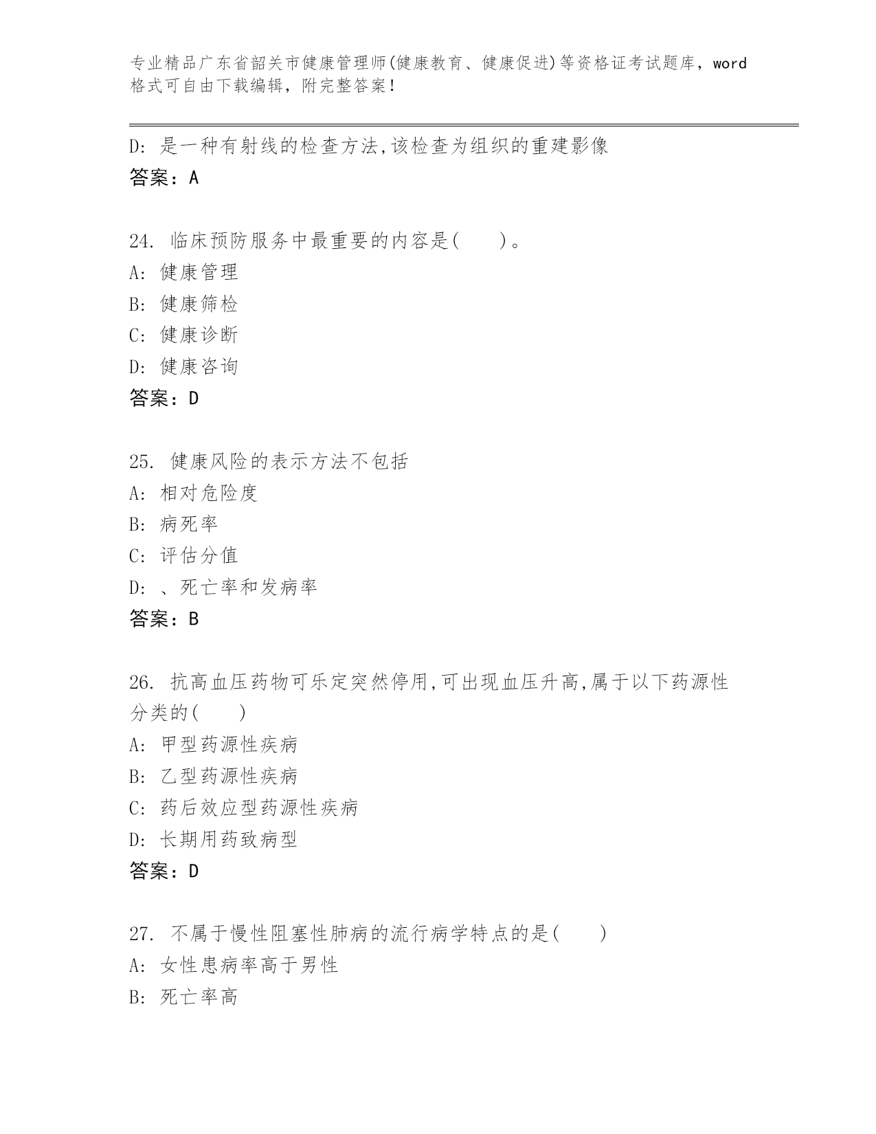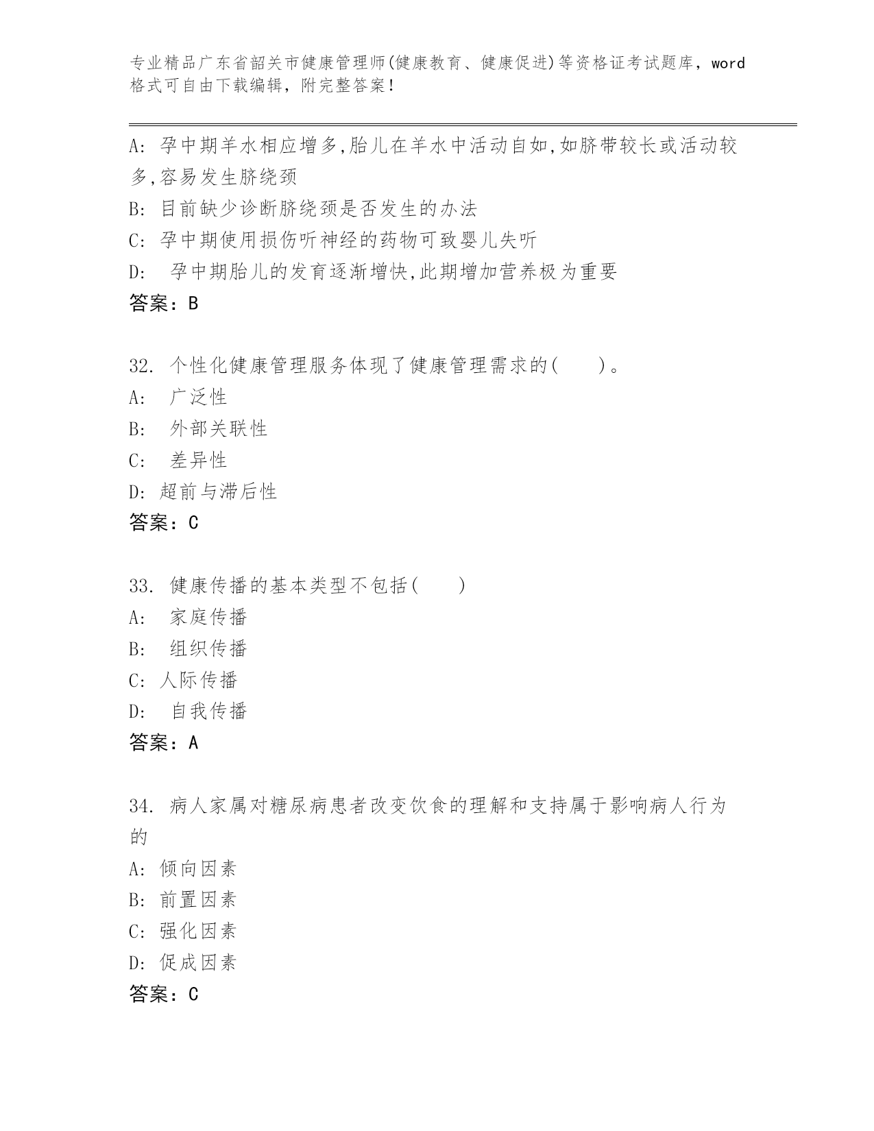 精心整理广东省韶关市健康管理师(健康教育、健康促进)等资格证考试真题(典型题).docx
