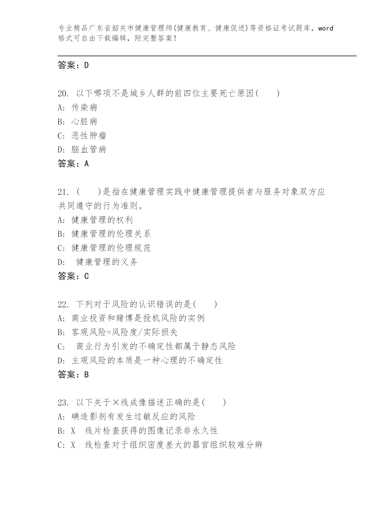 精心整理广东省韶关市健康管理师(健康教育、健康促进)等资格证考试真题(典型题)
