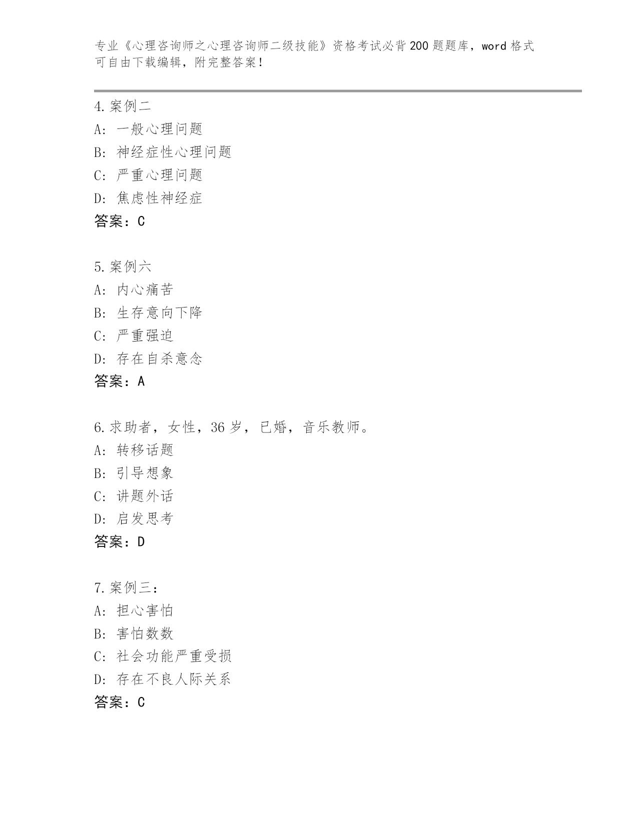 2024黑龙江省萨尔图区《心理咨询师之心理咨询师二级技能》资格考试必刷200题真题题库【夺冠系列】