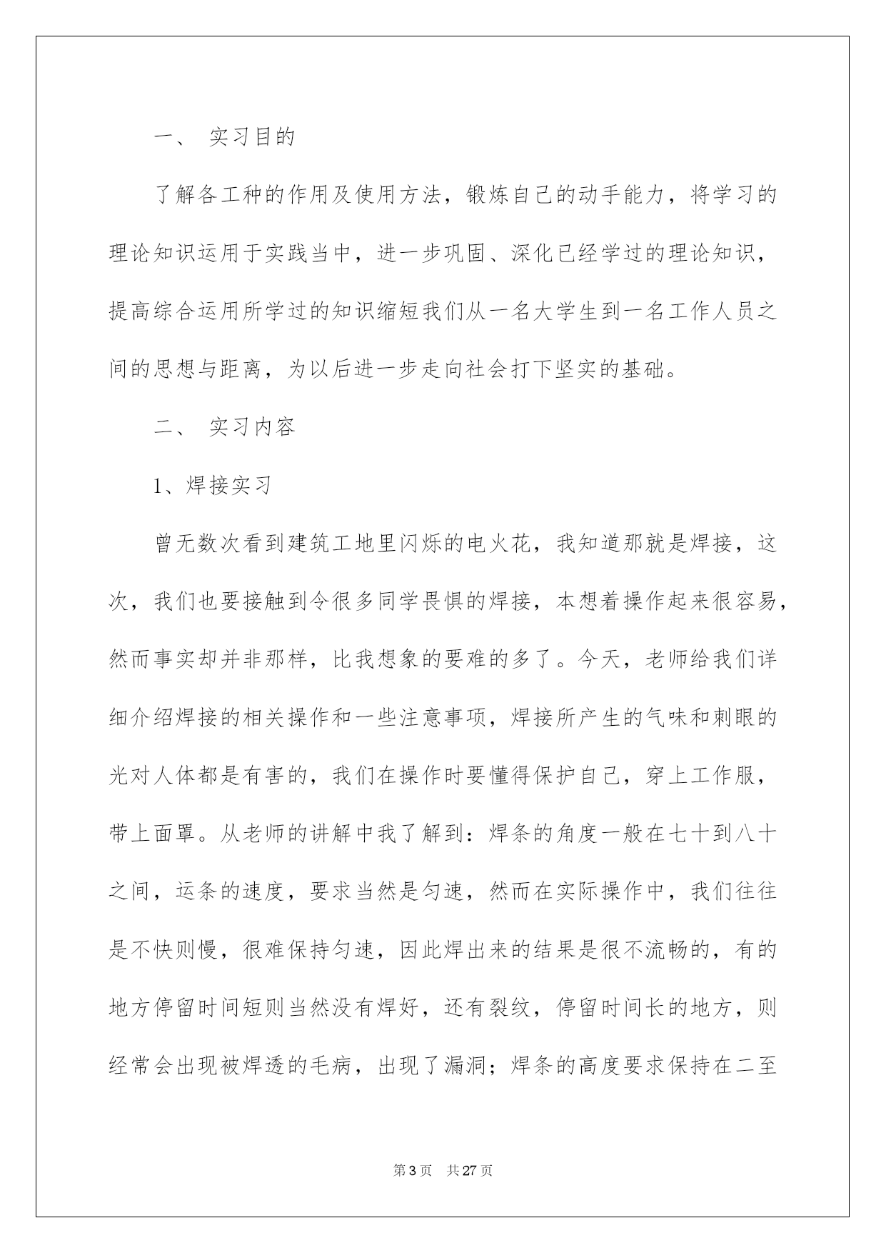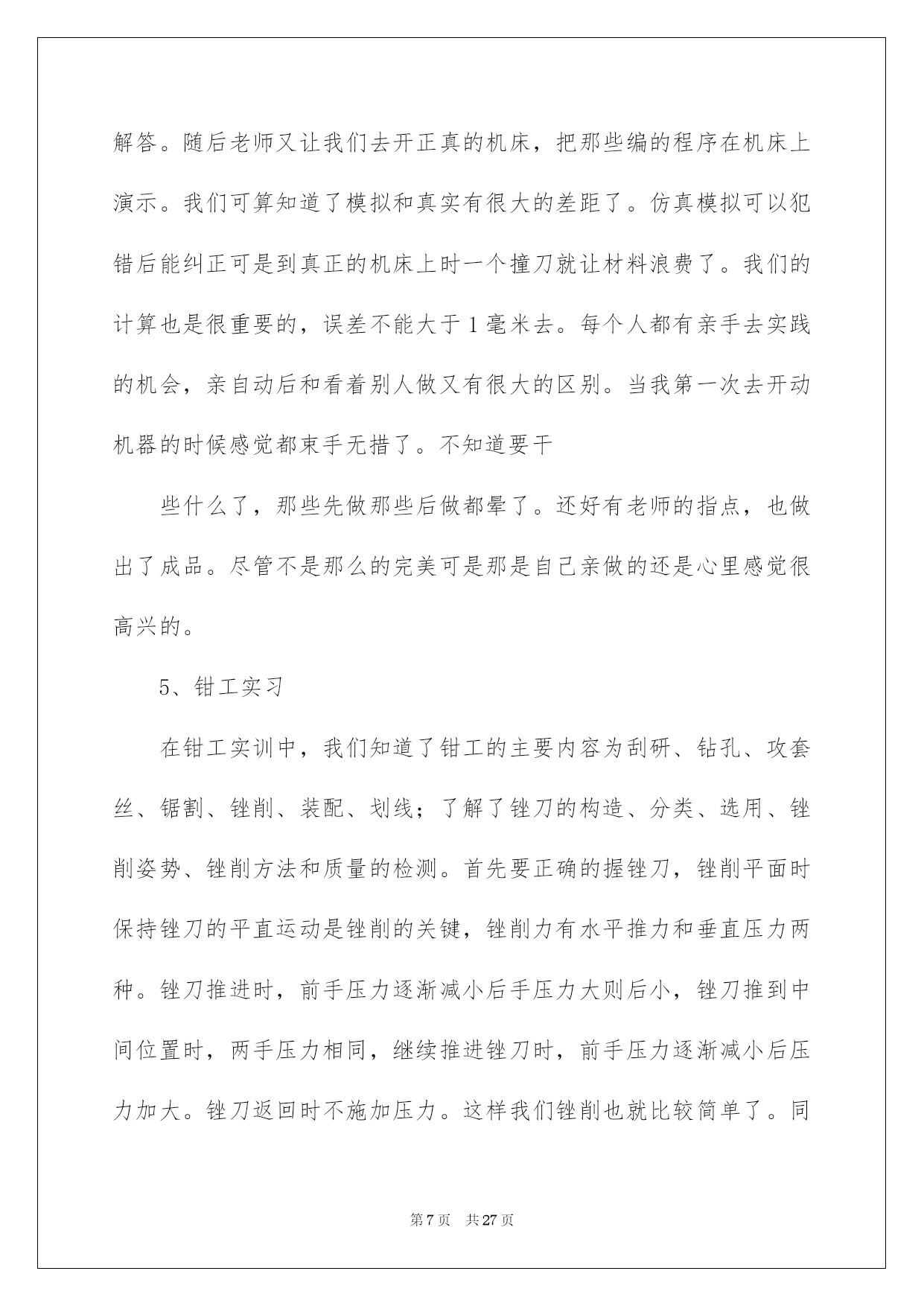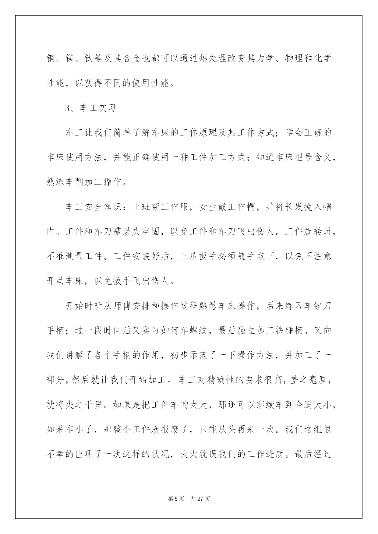 第PAGE\*Arabic\*MERGEFORMAT27页共NUMPAGES\*Arabic\*MERGEFORMAT27页第PAGE\*MERGEFORMAT27页共NUMPAGES\*MERGEFORMAT27页第PAGE\*MERGEFORMAT27页共NUMPAGES\*MERGEFORMAT27页第PAGE\*MERGEFORMAT27页共NUMPAGES\*MERGEFORMAT27页第PAGE\*MERGEFORMAT27页共NUMPAGES\*MERGEFORMAT27页第PAGE\*MERGEFORMAT27页共NUMPAGES\*MERGEFORMAT27页第PAGE\*MERGEFORMAT27页共NUMPAGES\*MERGEFORMAT27页第PAGE\*MERGEFORMAT27页共NUMPAGES\*MERGEFORMAT27页第PAGE\*MERGEFORMAT27页共NUMPAGES\*MERGEFORMAT27页第PAGE\*MERGEFORMAT27页共NUMPAGES\*MERGEFORMAT27页第PAGE\*MERGEFORMAT27页共NUMPAGES\*MERGEFORMAT27页2022机电类实习报告3篇机电类实习报告随着人们自身素质提升,接触并使用报告的人越来越多,我们在写报告的时候要注意语言要准确、简洁。你还在对写报告感到一筹莫展吗?以下是我整理的机电类实习报告3篇,希望能够帮助到大家。机电类实习报告篇1为期两周的金工实习在金属的回响中落下了大幕,总的来说这次为期两周的实习活动是一次有趣且必将影响我今后的学习工作的重要的经验。我想在将来的岁月里恐怕不会再有这样的机会,在短短的时间内那么完整的体验到当今工业界普遍所应用的方法;也恐怕难有这样的幸运去体验身边的每一样东西到底是如何制造出来的了。“金工实习”是一门实践性的技术基础课,是高等院校工科学生学习机械制造的基本工艺方法和技术,完成工程基本训练的重要必修课。它不仅可以让我们获得了机械制造的基础知识,了解了机械制造的一般操作,提高了自己的操作技能和动手能力,而且加强了理论联系实际的锻炼,提高了工程实践能力,培养了工程素质。这是一次我们学习,锻炼的好机会!通过这次虽短而充实的实习我懂得了很多???在工业生产中,安全要摆在第一位,是至关重要的!这是每个老师给我们的第一忠告。在工业安全科目中,我们便被安排轮流去看一个实习安全方面的录像。录像里详尽的播放了许多工种的实习要求和安全处理,像电焊气焊,热处理等。看着那么复杂生于操作的机器还有许多因不按要求操作机器而发生的事故,我们都吓了一跳。真是不看不知道,一看吓一跳!一个无意的动作或是一个小小的疏忽,都可能导致机械事故甚至人身安全事故。在未发生安全事故前,许多人对安全教育不重视,认为太烦琐,太枯燥。一旦发生了事故,事后诸葛亮就很多。看完录像后,我们在车间里,听老师讲解有关工业安全方面的知识。看着发下来的资料,我才明白工业安全的重要性,工业安全知识是工业高层管理人员和开发人员的必备知识,对于草拟或一个企业的安全条例,减少工业污染,防火防爆等方面来说是非常重要的知识,如果不掌握的话,不但会被人斥为无知,有时还会发生重大事故。所以安全总是第一位的,我们深深牢记于心,做起事来认真,严肃。我很庆幸我对它有了足够的重视,所以我安全的度过了实习的两周!一、实习目的了解各工种的作用及使用方法,锻炼自己的动手能力,将学习的理论知识运用于实践当中,进一步巩固、深化已经学过的理论知识,提高综合运用所学过的知识缩短我们从一名大学生到一名工作人员之间的思想与距离,为以后进一步走向社会打下坚实的基础。二、实习内容1、焊接实习曾无数次看到建筑工地里闪烁的电火花,我知道那就是焊接,这次,我们也要接触到令很多同学畏惧的焊接,本想着操作起来很容易,然而事实却并非那样,比我想象的要难的多了。今天,老师给我们详细介绍焊接的相关操作和一些注意事项,焊接所产生的气味和刺眼的光对人体都是有害的,我们在操作时要懂得保护自己,穿上工作服,带上面罩。从老师的讲解中我了解到:焊条的角度一般在七十到八十之间,运条的速度,要求当然是匀速,然而在实际操作中,我们往往是不快则慢,很难保持匀速,因此焊出来的结果是很不流畅的,有的地方停留时间短则当然没有焊好,还有裂纹,停留时间长的地方,则经常会出现被焊透的毛病,出现了漏洞;焊条的高度要求保持在二至四毫米,然而在自己刚开始的时候也是漏洞百出,因为在运条的同时,焊条在不断的减短,因此要不断的改变焊条的原有高度,这控制起来就有些困难了,高了则容易脱弧,