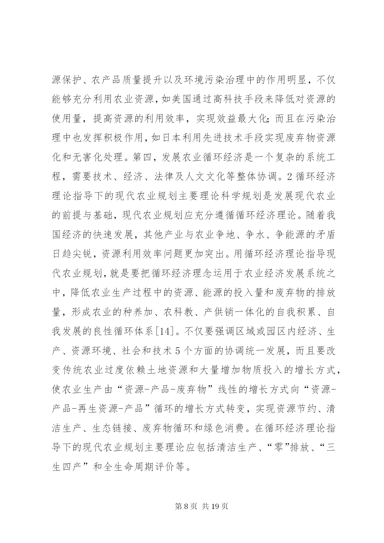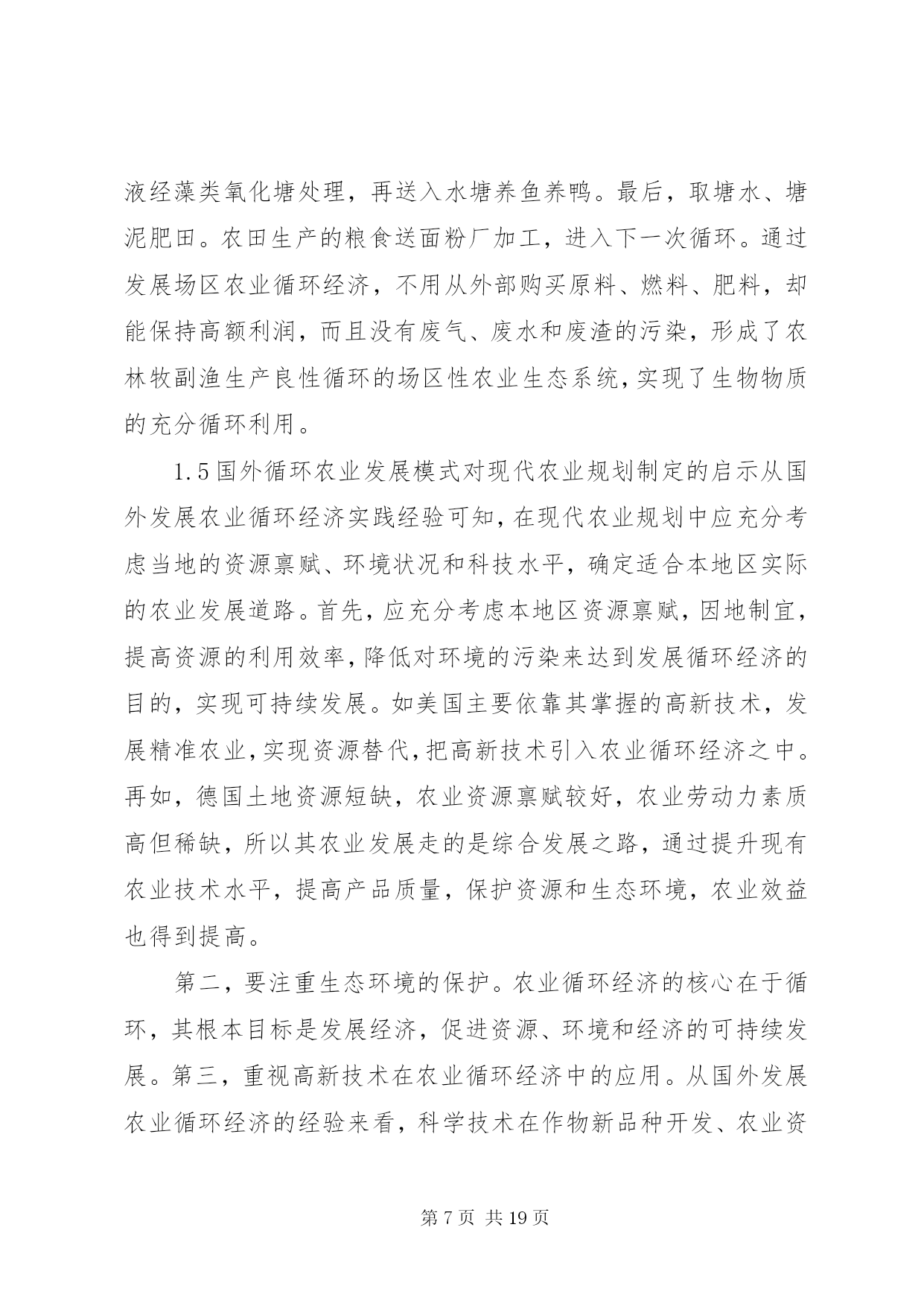 第PAGE\*Arabic\*MERGEFORMAT19页共NUMPAGES\*MERGEFORMAT19页现代化农业规划理论探讨摘要。“石油农业”发展在大幅度提高产量和增加效益的同时,也带来了资源过度消耗和生态环境污染等一系列问题;随着循环经济理论的提出与发展,农业循环经济成为现代农业发展的重要形态和终极目标。为探讨循环经济理论指导下的现代农业规划理论与实践,该文在简述循环经济理论形成与发展的基础上,归纳了以欧盟、美国、日本和菲律宾玛雅农场为代表的国外农业循环经济模式,阐述了循环经济理论指导下的现代农业规划主要理论、思路方法和核心内容;以《XX县区农业生态循环经济“十二五”发展规划》为例,分析了循环经济理论指导下的现代农业规划实践。该研究可为现代农业规划与发展农业循环经济提供借鉴与参考。关键词:农业,经济分析,规划,现代化,循环经济,循环农业,农业规划,现代农业0引言自20世纪20年代以来,为解决粮食问题,伴随着工业发展和科技进步,一些发达国家先后步入以化石能源投入和机械化生产为主导的“石油农业”生产。石油农业依靠化肥、农药、化石燃料、塑料薄膜等的广泛应用,使农业劳动生产率大幅度提高,农产品产量大幅度增长[1-2]。但是,也带来了诸多问题,例如过多施用化肥、农药,使用塑料薄膜,造成土壤质量下降;农产品农药残留量的增多使食品安全受到威胁;农机具、化石燃料的广泛应用增加了能源消耗和大气污染;规模化养殖业的迅猛发展造成了畜禽粪便不能及时消纳,导致环境污染等问题日益突出[3-7]。为此,人们开始尝试探索新型的农业发展模式,农业循环经济应运而生。农业循环经济是循环经济理论在农业中的具体应用,循环经济理论萌芽可追溯到20世纪60年代美国经济学家肯尼斯·鲍尔丁(k.e.boulding)的“宇宙飞船理论”。“循环经济”作为科学名词,是英国环境经济学家d.w.pearce和r.k.turner于1990年首先提出来的[8]。循环经济本质上是一种生态保护型经济,它要求运用生态学规律而不是机械论规律来指导人类社会的经济活动[9-10],把传统的依赖资源消耗的线型增长的经济,转变为依靠生态型资源循环来发展的经济。要求以“减量化(reduce)、再利用(reuse)、再循环(recycle)”(3r)为社会经济活动的行为准则。农业循环经济作为循环经济理论的应用形式之一,强调在农业生产过程和农产品生命周期中,尽可能地减少农业资源、物质的投入量,增加物质在农业系统中的循环再生利用和能量多级使用,得到更好更多的农产品,减少废弃物的产生排放量。农业循环经济的具体载体和实践模式是循环农业[11],倡导农业经济系统与生态环境系统相互协调的发展战略,把农业经济增长建立在国内生产总值增长、经济结构优化、人口规模、环境等经济社会指标与生物多样性、土地承载力、生态资源数量与质量等生态系统指标综合分析的基础上,通过实施有效干预,促进农业经济系统更和谐地纳入到生态系统的物质循环过程中来,利用生物与生物、生物与环境、环境与环境之间的能量和物质的联系建立起来的整体功能和有序结构,实现生态系统中的物质、能量、信息和资源的有效转换,从而实现经济效益、社会效益和生态效益的有机统一。近年来,农业循环经济发展在我国受到了政府和研究者的广泛关注。党的十七届三中全会提出,按照建设生态文明的要求,发展节约型农业、循环农业、生态农业,加强生态保护,促进农业可持续发展。农业部在2007年和2008年连续提出“循环农业促进行动”,在全国范围内组织了10个循环农业示范市建设,力求通过开展试点示范促进循环农业在更大范围内的发展[12]。自2010年起,农业部在全国范围内组织开展了国家现代农业示范区创建工作,鼓励在有条件的地方建设现代农业示范区,发展农业循环经济,率先实现农业现代化,梯度推进我国现代农业发展。本文在简述循环经济理论形成与发展的基础上,归纳了以欧盟、美国、日本和菲律宾玛雅农场为代表的国外循环农业发展模式,阐述了循环经济理论指导下的现代农业规划主要理论、思路方法和核心内容;以《XX县区农业生态循环经济“十二五”发展规划》为例,分析了循环经济理论指导下的现代农业规划实践。寄望为制定现代农业规划与发展农业循环经济提供借鉴与参考。1国外循环农业发展模式及其对现代农业规划制定的启示1.1以欧盟为代表的综合型循环农业欧盟综合型循环农业,主要目标是限制化学品投入,强调使用可再生资源生产生态产品,追求生态农业、有机农业和传统农业的统一。欧盟综合型循环农业尤以德国为典型。为了发展综合型循环农业,德国政府制定了一系列法律法规和政策措施,包括化肥施用量限制、废弃物排放控制、农业资源保护、环境污染处罚,另外还倡导农牧业相结合、作物轮作、少耕免耕、再生资源开发等。在农业生产环节提倡清洁生产