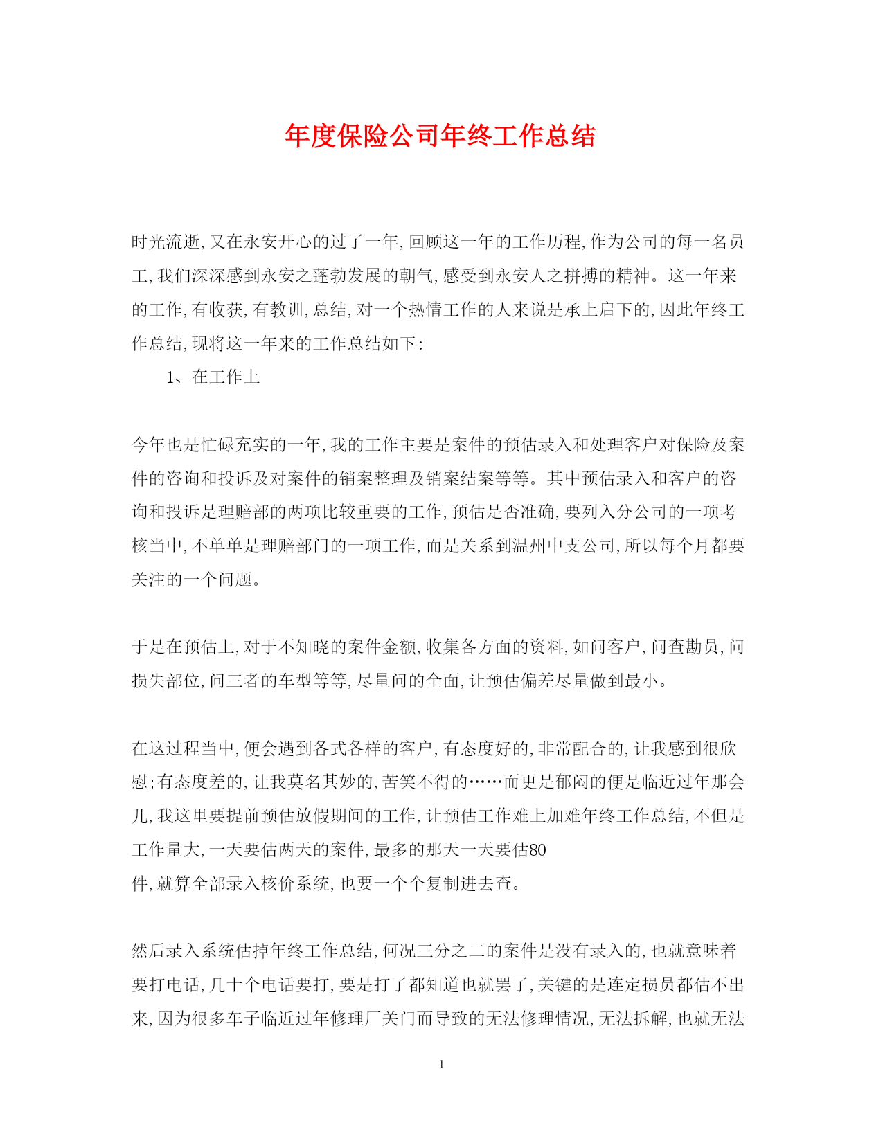 此资料由网络收集而来,如有侵权请告知上传者立即删除。资料共分享,我们负责传递知识。PAGEPAGE3年度保险公司年终工作总结时光流逝,又在永安开心的过了一年,回顾这一年的工作历程,作为公司的每一名员工,我们深深感到永安之蓬勃发展的朝气,感受到永安人之拼搏的精神。这一年来的工作,有收获,有教训,总结,对一个热情工作的人来说是承上启下的,因此年终工作总结,现将这一年来的工作总结如下:1、在工作上今年也是忙碌充实的一年,我的工作主要是案件的预估录入和处理客户对保险及案件的咨询和投诉及对案件的销案整理及销案结案等等。其中预估录入和客户的咨询和投诉是理赔部的两项比较重要的工作,预估是否准确,要列入分公司的一项考核当中,不单单是理赔部门的一项工作,而是关系到温州中支公司,所以每个月都要关注的一个问题。于是在预估上,对于不知晓的案件金额,收集各方面的资料,如问客户,问查勘员,问损失部位,问三者的车型等等,尽量问的全面,让预估偏差尽量做到最小。在这过程当中,便会遇到各式各样的客户,有态度好的,非常配合的,让我感到很欣慰;有态度差的,让我莫名其妙的,苦笑不得的……而更是郁闷的便是临近过年那会儿,我这里要提前预估放假期间的工作,让预估工作难上加难年终工作总结,不但是工作量大,一天要估两天的案件,最多的那天一天要估80件,就算全部录入核价系统,也要一个个复制进去查。然后录入系统估掉年终工作总结,何况三分之二的案件是没有录入的,也就意味着要打电话,几十个电话要打,要是打了都知道也就罢了,关键的是连定损员都估不出来,因为很多车子临近过年修理厂关门而导致的无法修理情况,无法拆解,也就无法知晓,但预估工作并不是因为无法知道而停滞在那里,我必须要得到接近的数字,所以常常一个案件,我要打好几个电话,所以预估是一份棘手的工作,但我还是在预估偏差率上很好的体现出来,20xx年我想我会做的更好。接下来是客户的咨询和投诉,面对客户的咨询和投诉,我首先做的工作便是对此案件的来龙去脉摸个清楚,对不清楚的条款向同事们讨教,于是能够很好的答复客户的疑问,同时也给客户一些很好的建议,常常引得客户“满意而归”,当然这其中也有着难缠的客户,但最后都能迎刃而解。这是我最为开心的事情。在处理咨询和投诉上,不但能让我学会与各式各样的客户沟通的能力,还在理赔及其它知识上给予了一定的学习和提升,特别在12月份,投诉只有1个,还是无效投诉,很明显的降低了,让我很欣喜,这不但说明我们在外工作人员在理论上,技术上,沟通上有了很好的提升,还说明了平时我对于客户咨询问题处理的好。最后是20xx年的销案工作的做的好。在领导的正确领导下,在同事的相互帮助下,在自己平时的辛勤努力工作下,案件的未决件数一直处于一个很好的位置,20xx年将做的更好。2、业务上完成了今年公司完分配的业务任务,实现了业绩和效益双丰收。为了配合公司业务发展的需要,管理部门人员分配了一定的业务任务,每季度都定期评比,面对了相当的压力,我通过自身的努力,顺利的完成了全年任务,期间遇到的客户多种多样,通过耐心回答客户的疑问,尽量系统解释条款,最终让客户满意买下我们的保险产品,中间虽然有很多小麻烦,但经历这些让我增加了业务方面的知识并更能体会业务员的辛劳。3、劳动纪律上今年在劳动纪律上公司出台了相应的奖惩文件,本人严格遵循文件精神做到不迟到不早退,上班时间不开小差,认真负责的工作。平时尽量不请假,遇到事情必须请假时,也提早向上级领导申请并交接好自己的工作。做到不影响部门日常工作正常运行。