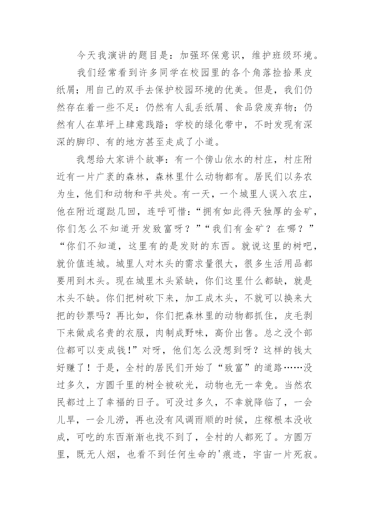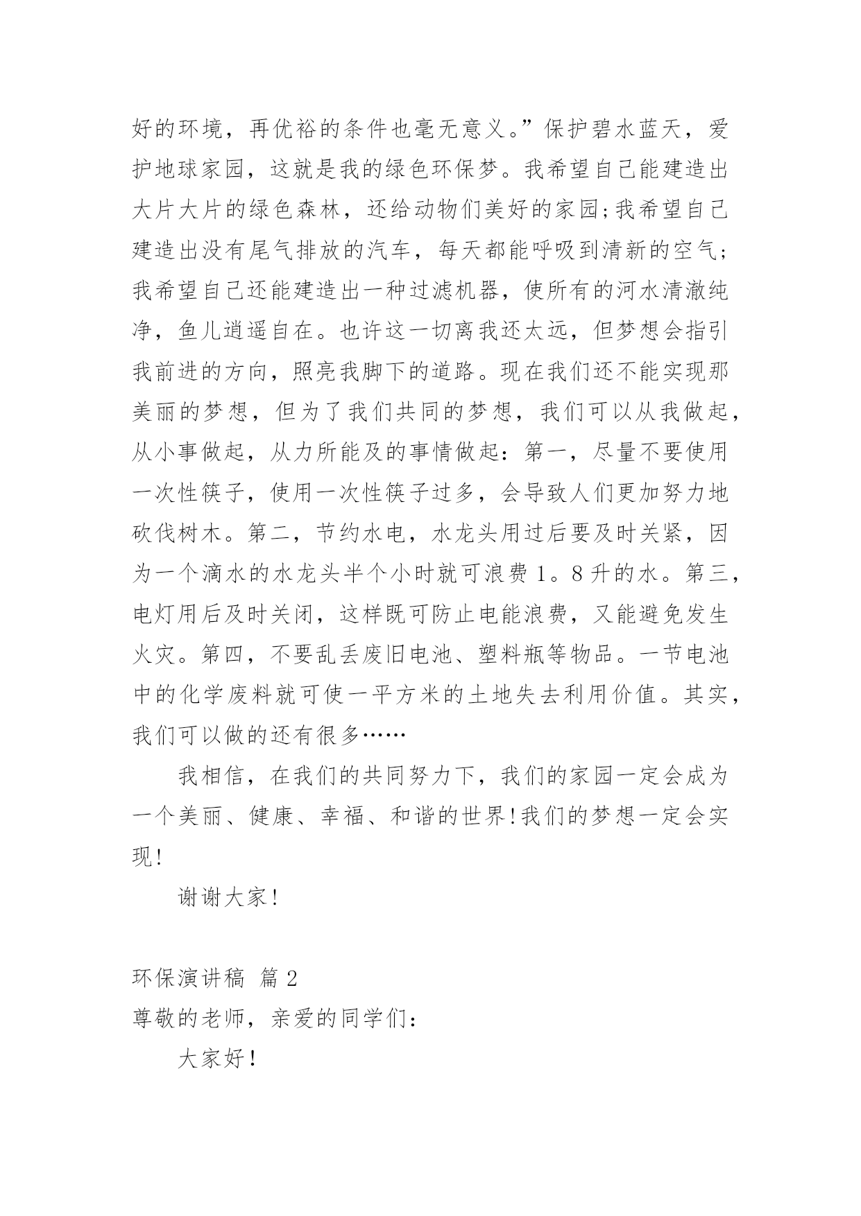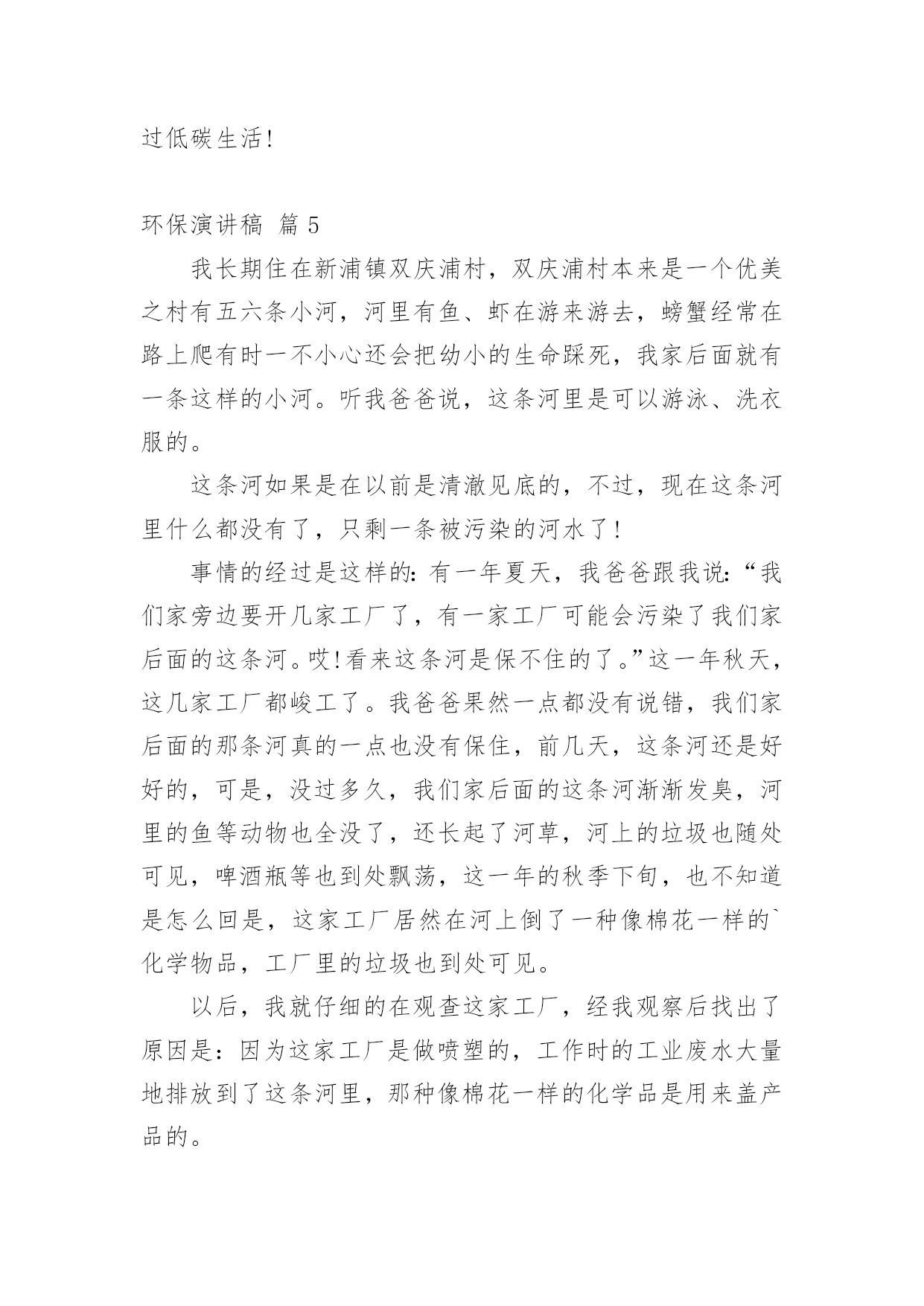 环保演讲稿【必备】环保演讲稿范文集合五篇使用正确的写作思路书写演讲稿会更加事半功倍。在不断进步的社会中,演讲稿应用范围愈来愈广泛,还是对演讲稿一筹莫展吗?下面是小编整理的环保演讲稿5篇,希望能够帮助到大家。环保演讲稿篇1尊敬的老师、各位同学:大家好!今天我演讲的题目是《绿色环保梦》。保护环境,是21世纪人类的当务之急。随着人类生活水平的不断提高,对生活用品的要求也越来越高。一些工厂为了自己的利益,把排放出的废水倒进清澈的'小溪;把废气排进森林里。森林渐渐枯萎,小溪渐渐浑浊,一些小动物和人类因为喝不上干净的水而死去。过去的十年,全世界的热带雨林已有70%被毁掉,目前,中国的荒漠化土地已达267。4万多平方公里,七大江河水系中,完全没有使用价值的水质已超过40%。全国668座城市,有400多个处于缺水状态,全国三分之一的人口,呼吸着严重污染的空气。这已经危害到了我们的生存环境!所以,环境问题越来越受到人类的关注。世界著名环境科学家曲格曾经说过:“没有一个清洁美好的环境,再优裕的条件也毫无意义。”保护碧水蓝天,爱护地球家园,这就是我的绿色环保梦。我希望自己能建造出大片大片的绿色森林,还给动物们美好的家园;我希望自己建造出没有尾气排放的汽车,每天都能呼吸到清新的空气;我希望自己还能建造出一种过滤机器,使所有的河水清澈纯净,鱼儿逍遥自在。也许这一切离我还太远,但梦想会指引我前进的方向,照亮我脚下的道路。现在我们还不能实现那美丽的梦想,但为了我们共同的梦想,我们可以从我做起,从小事做起,从力所能及的事情做起:第一,尽量不要使用一次性筷子,使用一次性筷子过多,会导致人们更加努力地砍伐树木。第二,节约水电,水龙头用过后要及时关紧,因为一个滴水的水龙头半个小时就可浪费1。8升的水。第三,电灯用后及时关闭,这样既可防止电能浪费,又能避免发生火灾。第四,不要乱丢废旧电池、塑料瓶等物品。一节电池中的化学废料就可使一平方米的土地失去利用价值。其实,我们可以做的还有很多……我相信,在我们的共同努力下,我们的家园一定会成为一个美丽、健康、幸福、和谐的世界!我们的梦想一定会实现!谢谢大家!环保演讲稿篇2尊敬的老师,亲爱的同学们:大家好!地球——是我们生存的家园。它的青山绿水,碧海蓝天是我们地球人的骄傲。清晨,我迈着欢快的步伐走进草地玩耍,吸着花草的芬芳,听着鸟儿的歌唱,享受着白雾,尽情玩乐;夜晚,坐在明亮的星空下,蝉鸣不断,歌颂自然,自得其乐,仿佛置身于一个神奇的王国。春天,我漫步在河边的垂柳下,听着鱼儿诉说着昨夜的梦,听着小草诉说着昨夜的欢乐;夏天,赤脚走在柔软的沙滩上,看海鸥轻盈地掠过浩瀚的大海;秋天,袖手旁观打开窗户,看着金色的树叶一片一片落下;冬天,北方的土地变成了银白色的捆.曾几何时,人类滥砍滥伐,使得郁郁葱葱的森林突然变成了孤立树木的“秃地”;让清澈的小溪变成一个堆满垃圾的“废池”;沙丘吞噬了大片肥沃的土地,洪水摧毁了可爱的家园.铁的事实告诉我们,它们威胁生态平衡,危害人类健康,制约经济和社会的`可持续发展,使人类陷入困境。这些灾难敲响了人类的警钟,保护环境、维护生态平衡的重任应该落在我们的肩上。加油,从自己做起,从小事做起,携手保护我们的家园。将来,天空一定是蓝色的,水是清澈的,树是荫凉的,到处都是花。人类可以享受大自然赋予我们的幸福。环保演讲稿篇3各位老师,各位同学,下午好!今天我演讲的题目是:加强环保意识,维护班级环境。我们经常看到许多同学在校园里的各个角落捡拾果皮纸屑;用自己的双手去保护校园环境的优美。但是,我们仍然存在着一些不足:仍然有人乱丢纸屑、食品袋废弃物;仍然有人在草坪上肆意践踏;学校的绿化带中,不时发现有深深的脚印、有的地方甚至走成了小道。我想给大家讲个故事:有一个傍山依水的村庄,村庄附近有一片广袤的森林,森林里什么动物都有。居民们以务农为生,他们和动物和平共处。有一天,一个城里人误入农庄,他在附近遛跶几回,连呼可惜:“拥有如此得天独厚的金矿,你们怎么不知道开发致富呀?”“我们有金矿?在哪?”“你们不知道,这里有的是发财的东西。就说这里的树吧,就价值连城。城里人对木头的需求量很大,很多生活用品都要用到木头。现在城里木头紧缺,你们这里什么都缺,就是木头不缺。你们把树砍下来,加工成木头,不就可以换来大把的钞票吗?再比如,你们把森林里的动物都抓住,皮毛剥下来做成名贵的衣服,肉制成野味,高价出售。总之没个部位都可以变成钱!”对呀,他们怎么没想到呀?这样的钱太好赚了!于是,全村的居民们开始了“致富”的道路……没过多久,方圆千里的树全被砍光,动物也无一幸免。当然农民都过上了幸福的日子。可没过多久,不幸就降临了,一会儿旱,一会儿涝,再也没有风调雨顺的时候,庄稼根本没收成,可吃的东西渐渐也找不到了,全村的人都死了。方圆万里,既无人烟,也看不