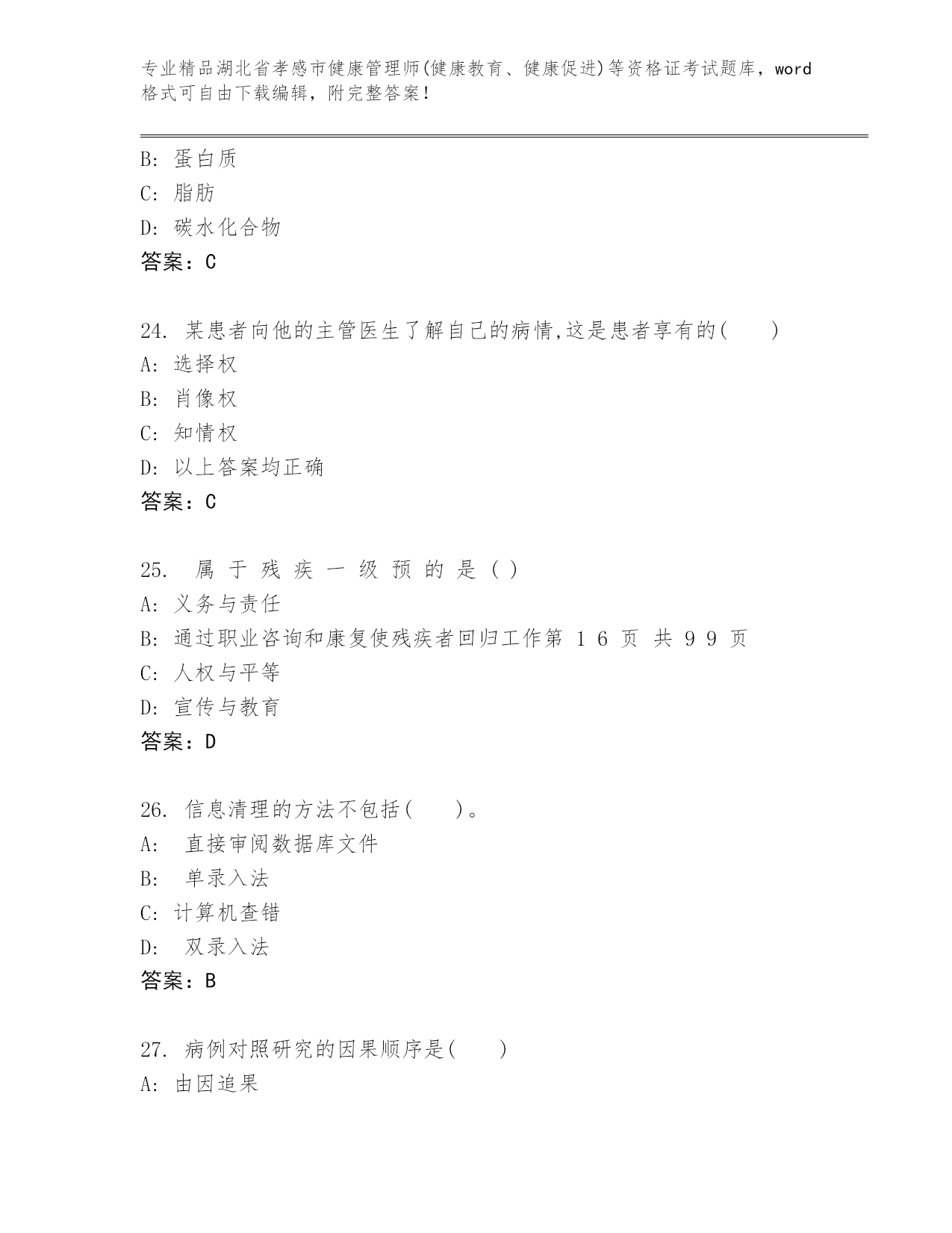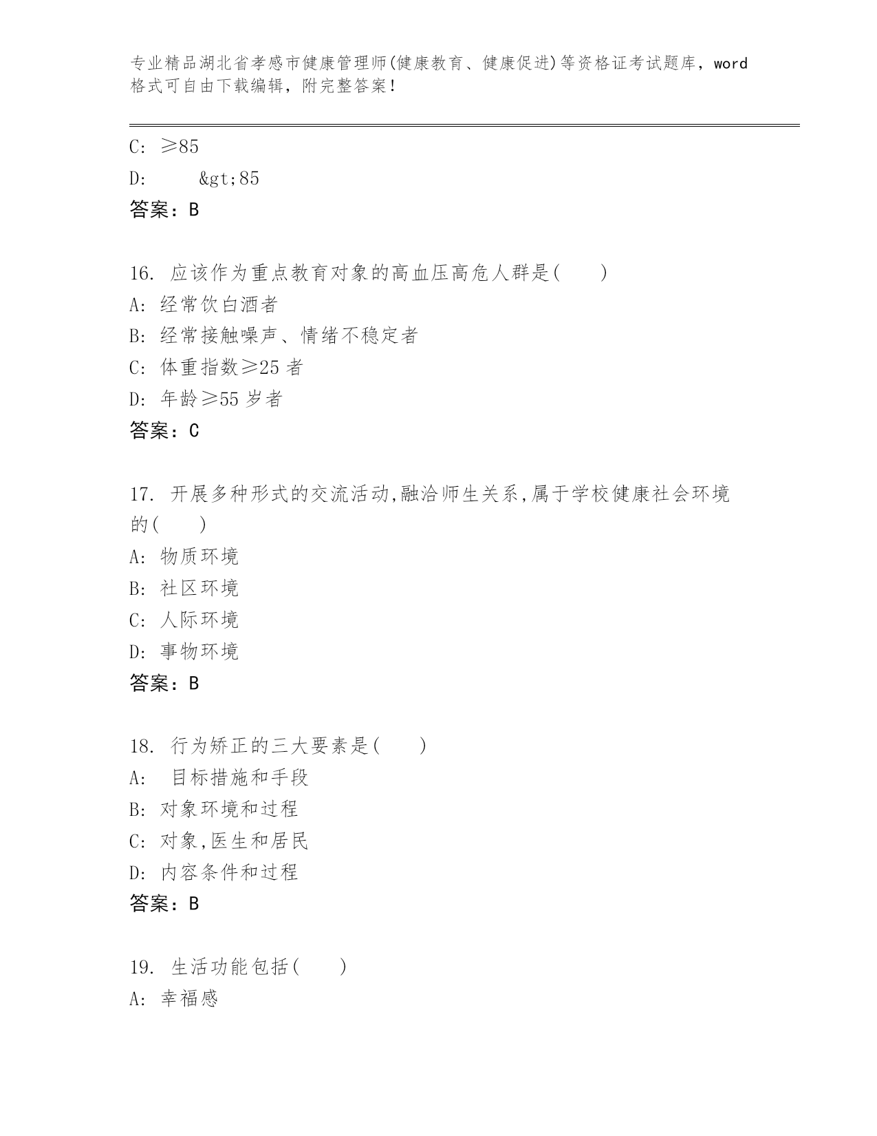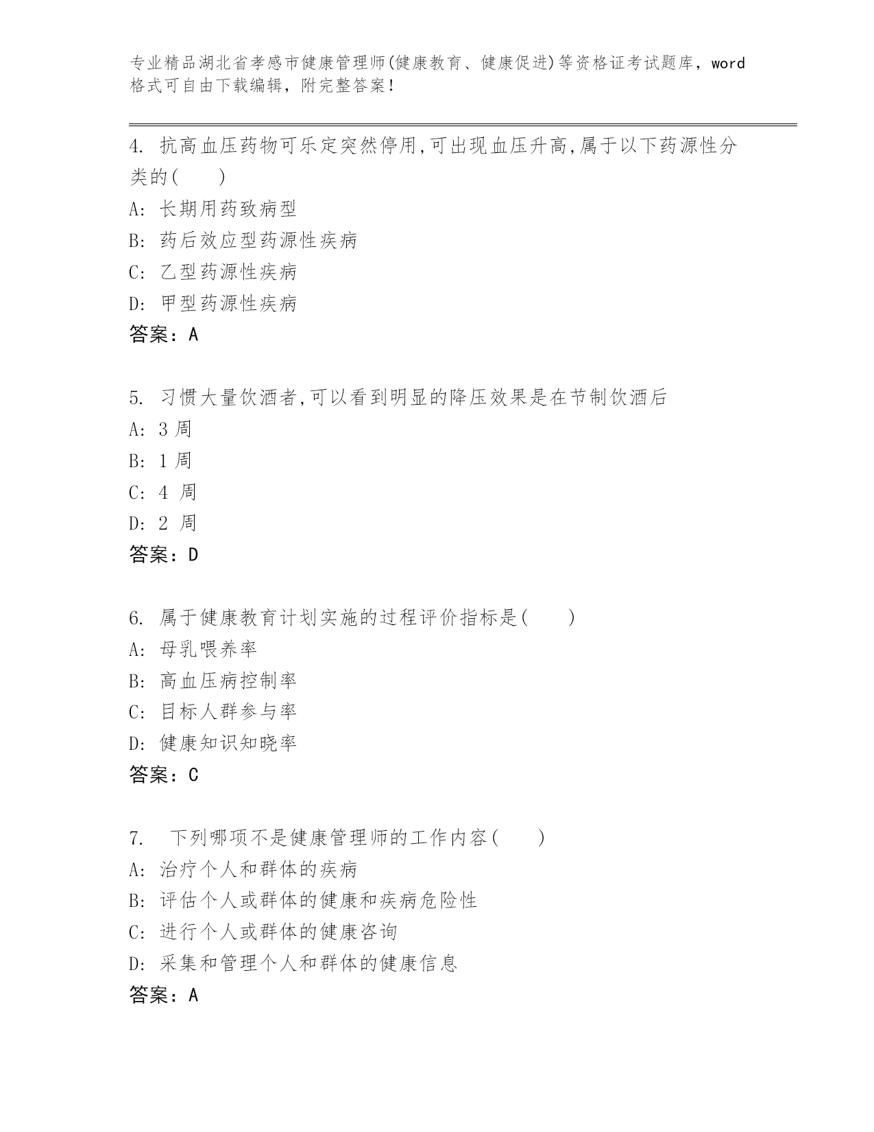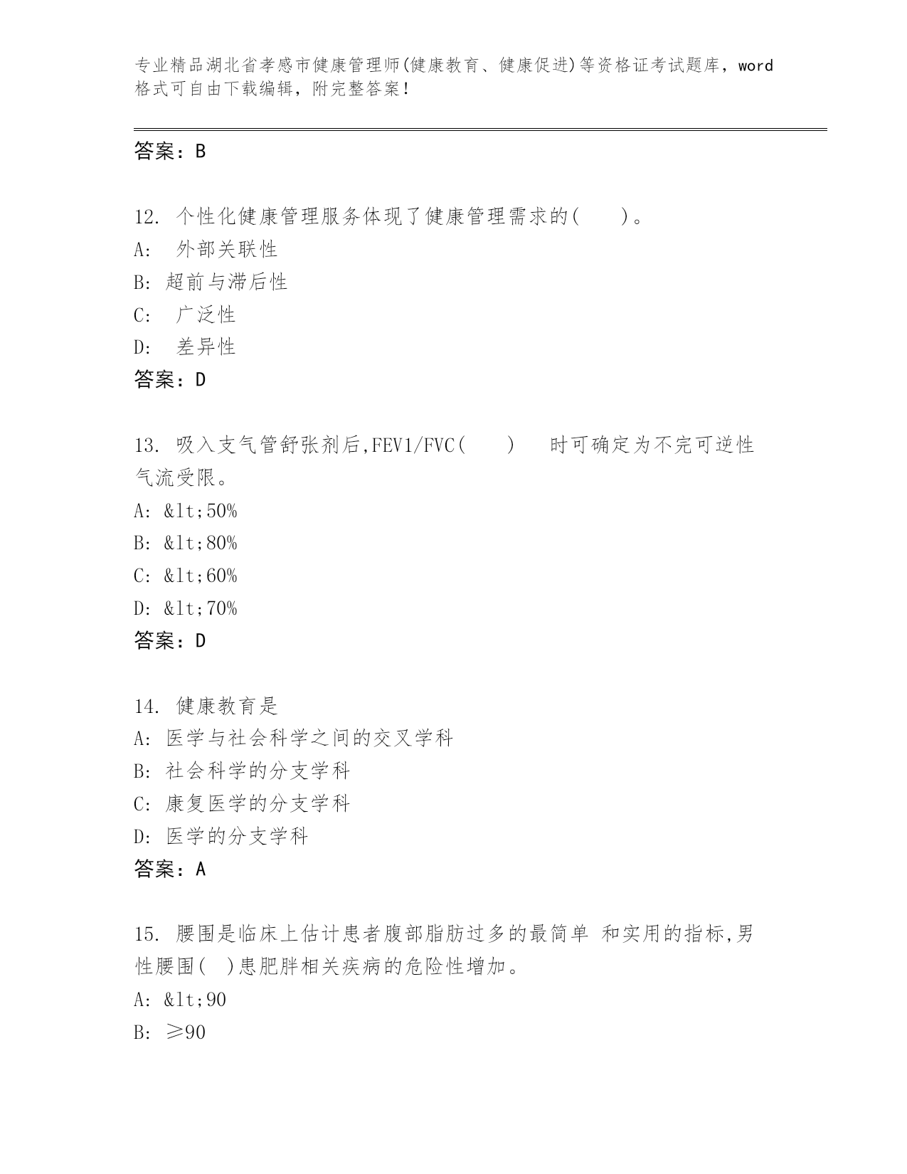 最新湖北省孝感市健康管理师(健康教育、健康促进)等资格证考试及答案(历年真题)