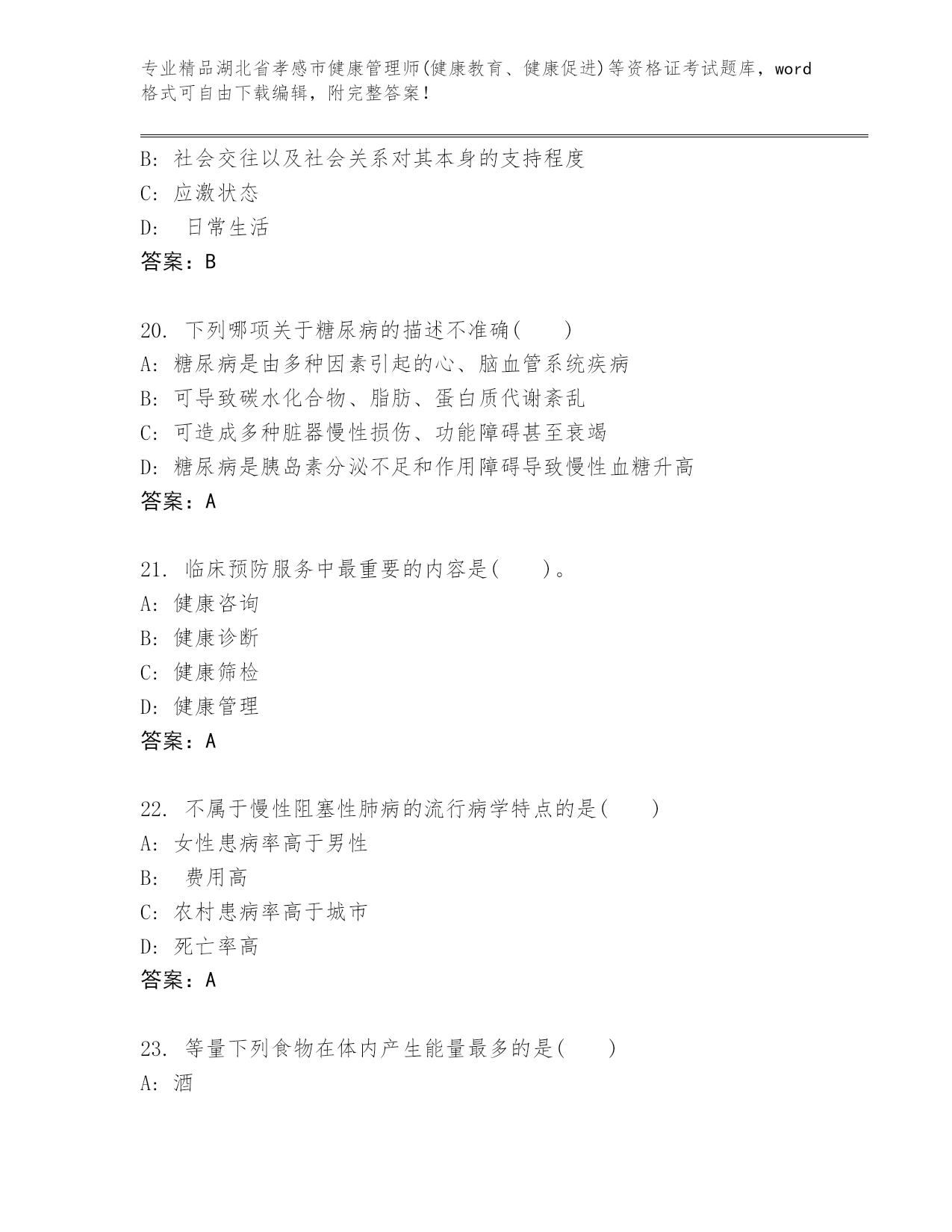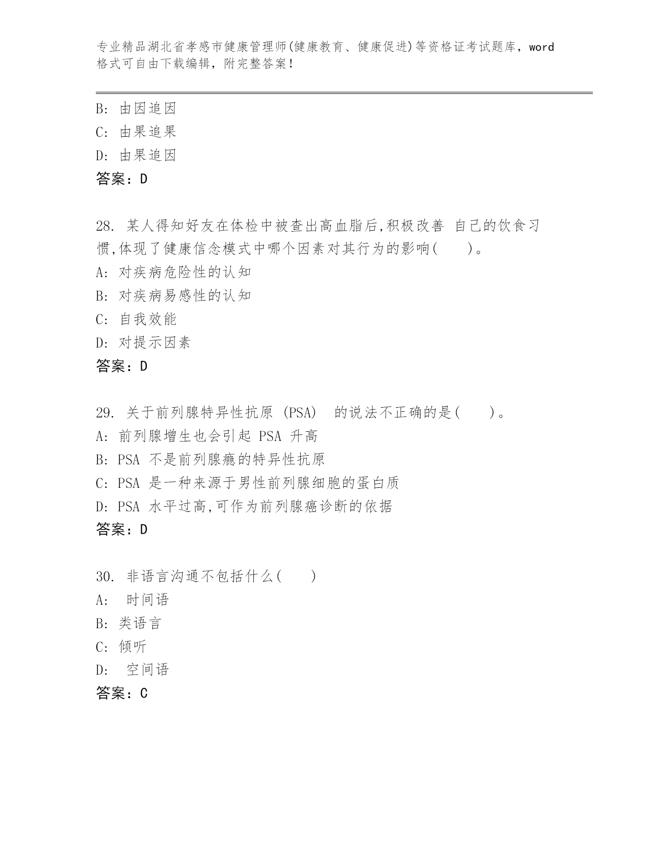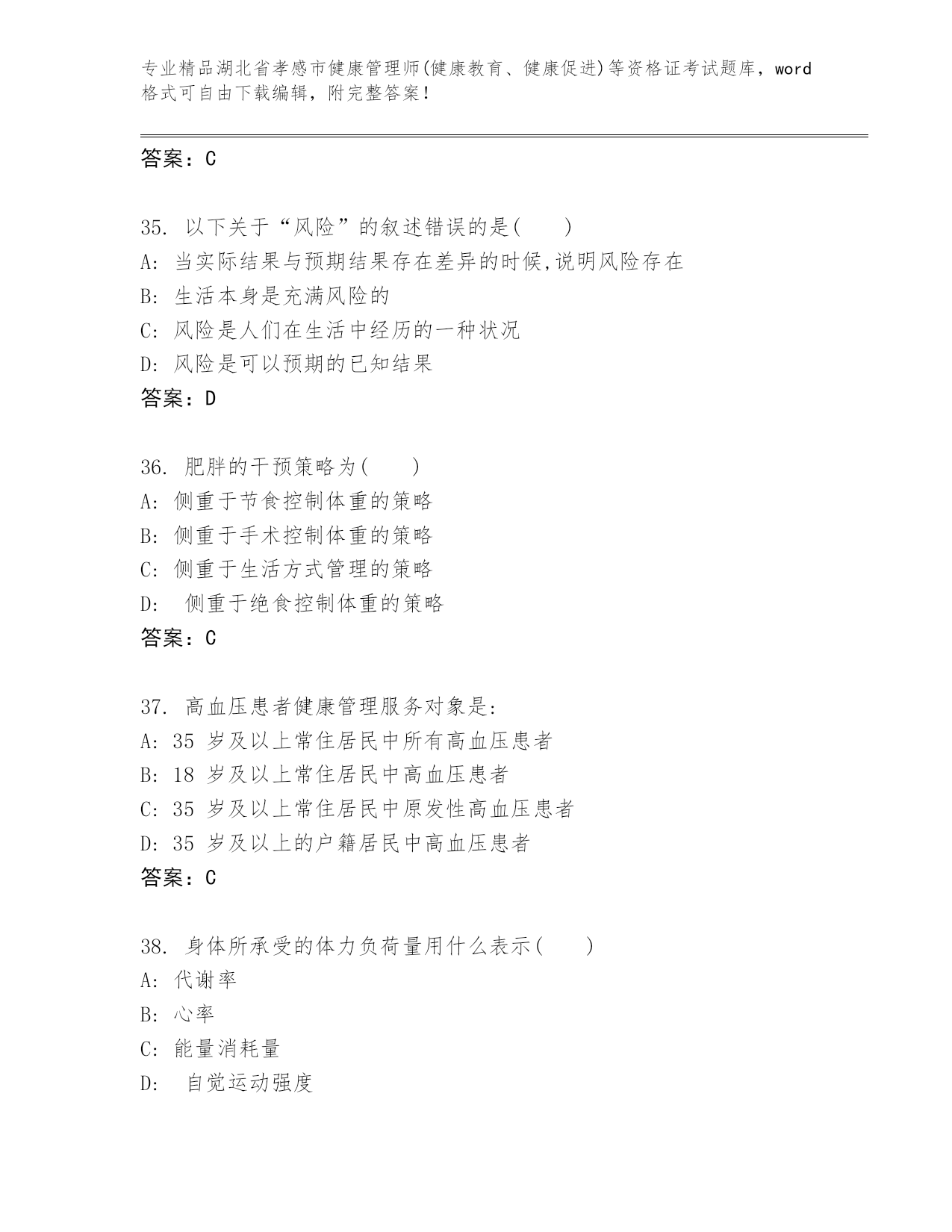最新湖北省孝感市健康管理师(健康教育、健康促进)等资格证考试及答案(历年真题).docx