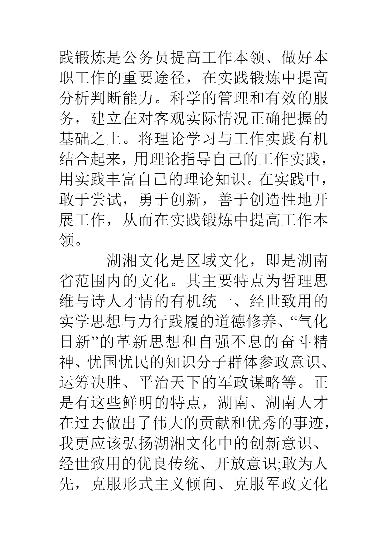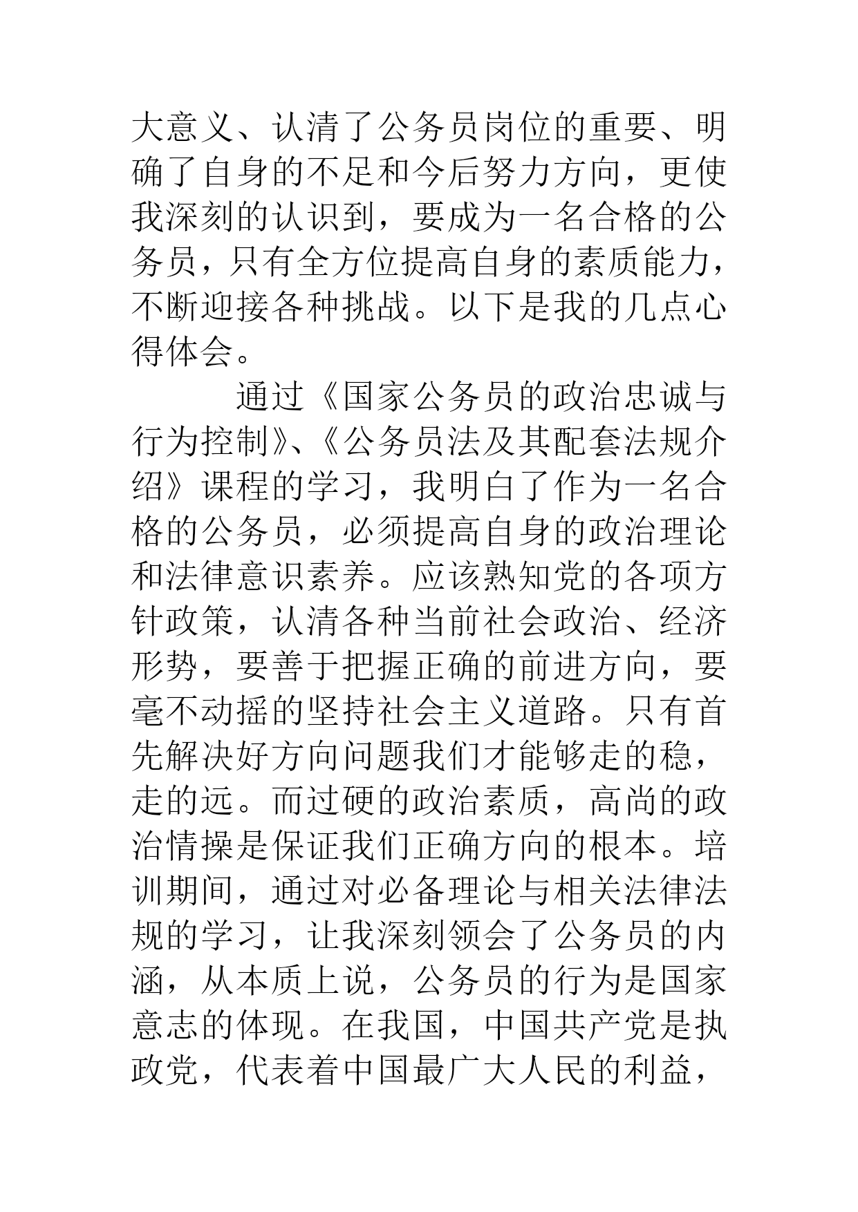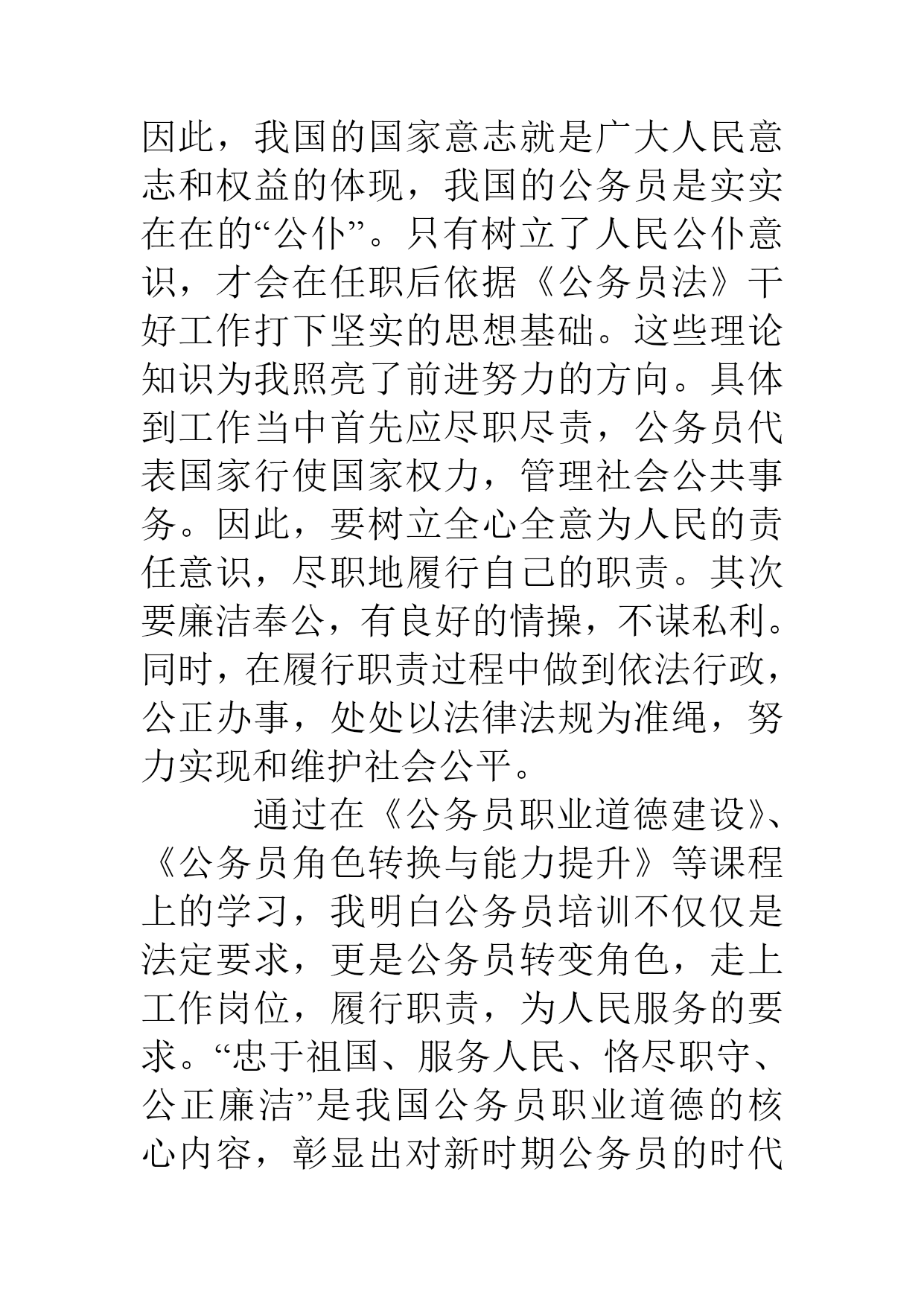 2017初任公务员培训心得体会初任公务员应具备的基本素养和具体能力。作为一名初任的基层公务员,必须要不断提高科学判断能力、驾驭市场经济能力、依法行政能力、应对复杂局面能力和总揽全局能力,从而加强自身的基本素养。下面是qc99整理的关于2017初任公务员培训心得体会范文,欢迎借鉴!2017初任公务员培训心得体会范文一在公务员初任培训这段时间里,在培训学校领导和老师的精心组织下,我始终以高昂的热情、严谨的态度全身心地投入到学习当中去,比较好的完成了培训任务,培训之后收获很多。通过学习培训,我深刻认识到作为一个国家公务员为人民服务并不是一件简单的事情,不仅要有主观上的热情和干劲,还要求有扎实的业务知识和作为公务员必须具备的能力,才能达到为人民服务的要求才不会被人民淘汰。首先,公务员必须是人民的公仆,而不是凌驾于人民头上的“官”,我们最主要的目标就是为人民群众提供最大、最多、最好的服务。第二,公务员队伍必须是一个高效的团队。在高度的服从之下的同时,也要具有一定的能动判断能力。高效还要求公务员精通业务知识和行政知识,具备较强的协调能力,并且这些知识和能力也要随时代的快速发展而不断更新。所以一名合格的公务员必须有较强的学习能力和强劲的动力。为了让我们尽快地掌握为履行职责所必须的基本知识,为今后的工作做好准备。通过学习公务员法,我们了解了公务员的权利和义务。通过学习公务礼仪,我们了解了公务员还要有一个良好的个人形象。公文写作与处理是公务员的必修课,掌握了一定的公文写作方法和技巧……在学习之余大家认真整理笔记、相互交流学习心得,巩固了学习成果。当然我们不能把学习的知识仅仅停留在书本上,要理论和实践相结合,做到知行统一,学以致用。为广大人民群众和社会提供优质高效的服务。知识经济是我们面临的机遇和挑战,这对国家公务员提出了更高的要求。知识经济要求我们应当具备1、较高的理论素养,坚定的政治信念和坚强的党性。只有具备了较高的理论素养,才能在当今这个多元化的政治经济格局中把握时代的脉搏,不被表面现象所迷惑。2、既有深度又有广度的合理的知识结构。国家公务员要加速更新知识,树立创新意识。国家公务员只有具备创新奋进的精神,不因循守旧,不满足于现状,才能及时吸收、消化新知识,适应新情况,否则有可能被甩在时代的后面。3、国家公务员要不断提高决策水平和管理水平。为了适应四个现代化的要求,国家公务员应努力学习现代管理理论和方法,使自己不但具有一定的科学技术的造诣,而且有相应的组织能力、协调能力、决断能力以及经济核算能力,提高决策、管理水平。我们这些学员有的是市里的各部门、有的是镇乡街道,大家来自各个不同的单位和岗位,这次培训是难得的沟通和交流的机会。在这十多天的时间里,我们互相关心,互相帮助,互相学习,大家增进了了解建立了深厚的友谊。本次初任培训虽然时间短暂,却有着重要的意义。初任培训只是打下了一个理论基础,今后工作中将遇到的各种问题和各种复杂情况我将积极做到:一是要加强学习,坚持谦虚谨慎的作风。不断加强政治理论的学习,加强法律知识的学习和行政管理等知识的学习,提高自己的理论素养、知识水平和实践能力。二是要增强为人民服务的意识。时刻牢记为人民服务的宗旨。要牢固树立“立党为公,执政为民”的观念,树立正确的权力观,增强廉政意识,严格自律。努力成为符合人民不断提高的要求的国家公务员,为社会主义建设事业做出应有的贡献。2017初任公务员培训心得体会范文二2017年11月25日~30日,我参加了2017年湖南省直机关新录用公务员初任培训班。期间老师讲解学习了《公务员职业道德建设》、《国家公务员的政治忠诚与行为控制》、《公务员法及相关配套制度解读》、《公务员角色转换与能力提升》、《党政机关公文处理》、《公务员行为规范政务礼仪》、《湖湘文化的源与流及其现代意义》等课程;并自学了《公务员管理政策法规》、《应对突发事件能力》、《调查研究能力》等相关课程。初任公务员集体宣誓,让我感受到了公务员这一职业的神圣和自己今后工作信念。虽然只有一周的培训时间,在这紧张、充实的培训中,在党校领导和老师的精心组织下,我以严谨的态度全身心地投入到学习当中去,比较好的完成了培训任务,认清了这次培训的重大意义、认清了公务员岗位的重要、明确了自身的不足和今后努力方向,更使我深刻的认识到,要成为一名合格的公务员,只有全方位提高自身的素质能力,不断迎接各种挑战。以下是我的几点心得体会。通过《国家公务员的政治忠诚与行为控制》、《公务员法及其配套法规介绍》课程的学习,我明白了作为一名合格的公务员,必须提高自身的政治理论和法律意识素养。应该熟知党的各项方针政策,认清各种当前社会政治、经济形势,要善于把握正确的前进方向,要毫不动摇的坚持社会主义道路。只有首先解决好方向问题我们才能够走的