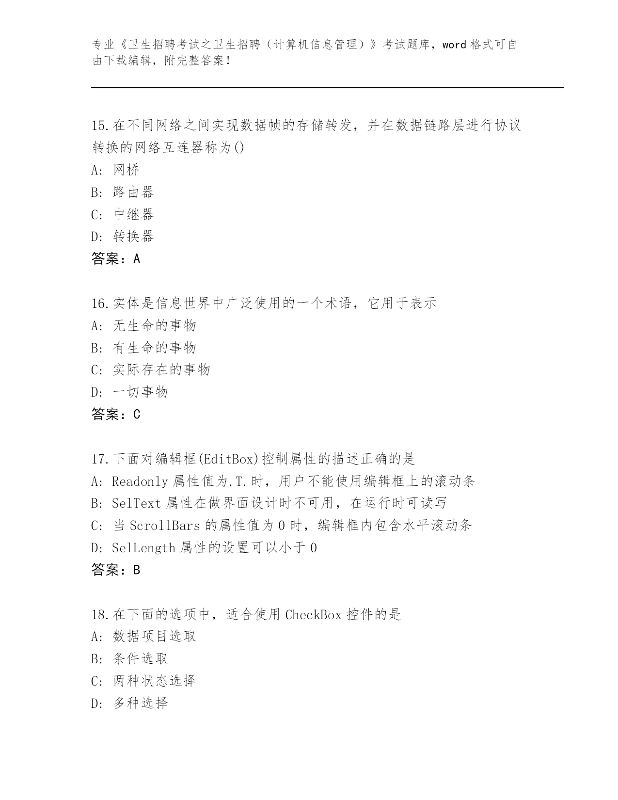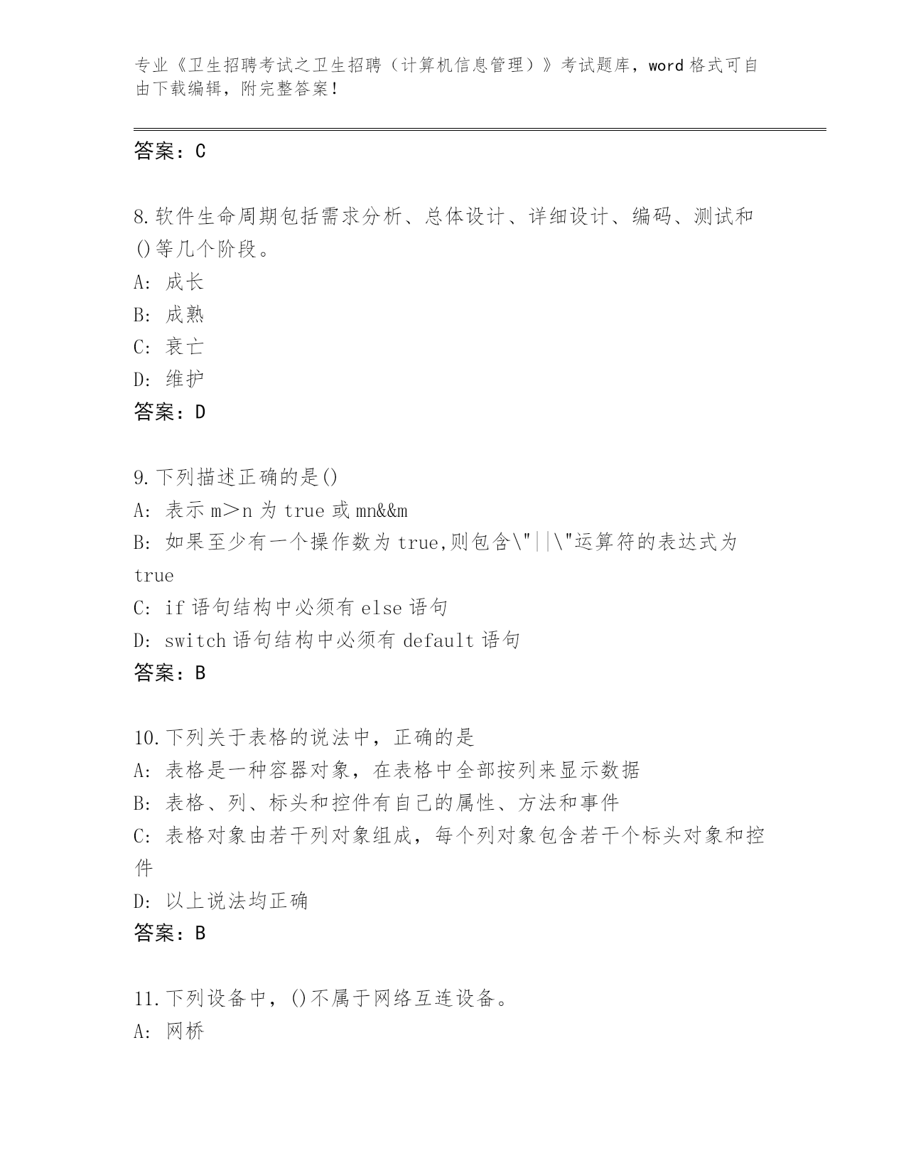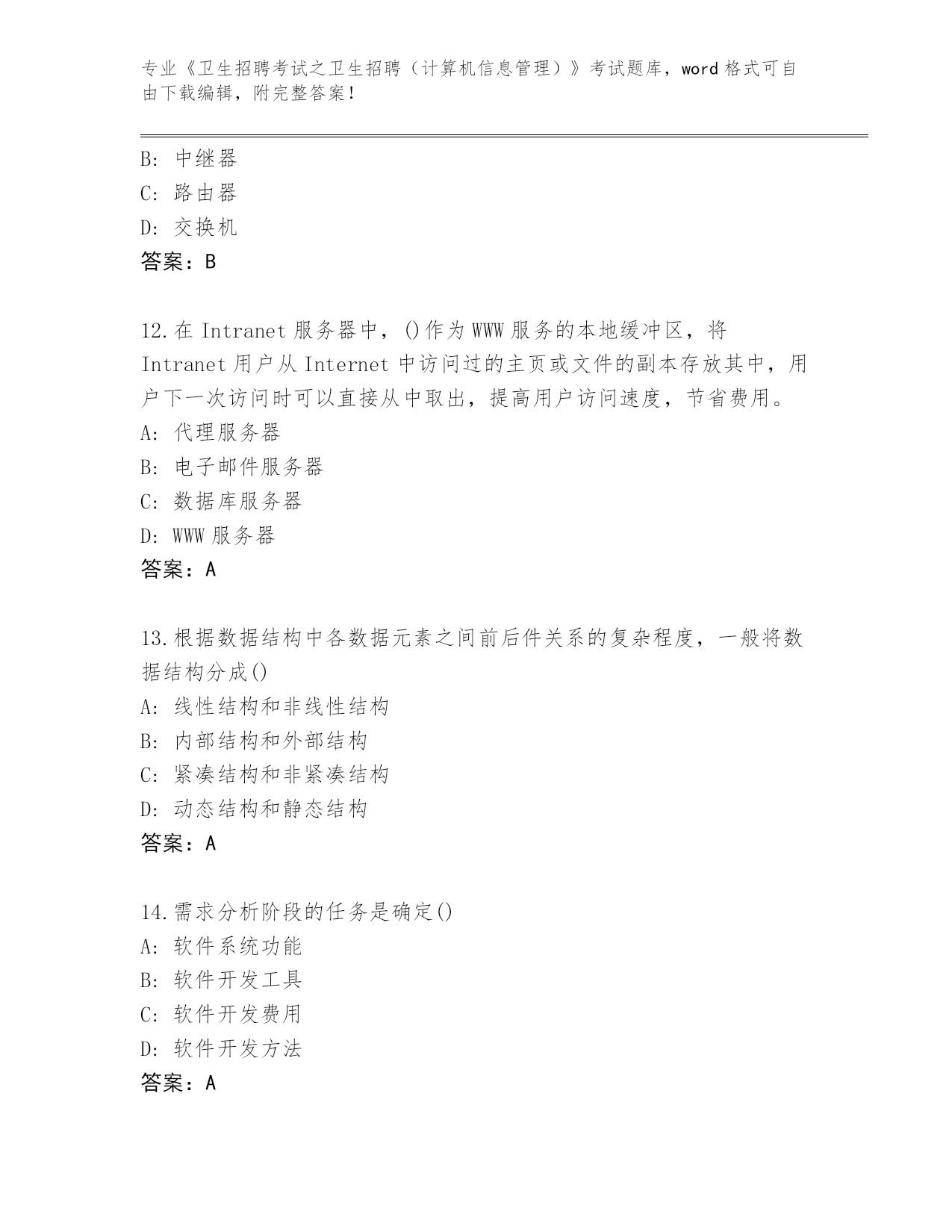 历年海南省《卫生招聘考试之卫生招聘(计算机信息管理)》考试必刷200题题库附参考答案(夺分金卷)