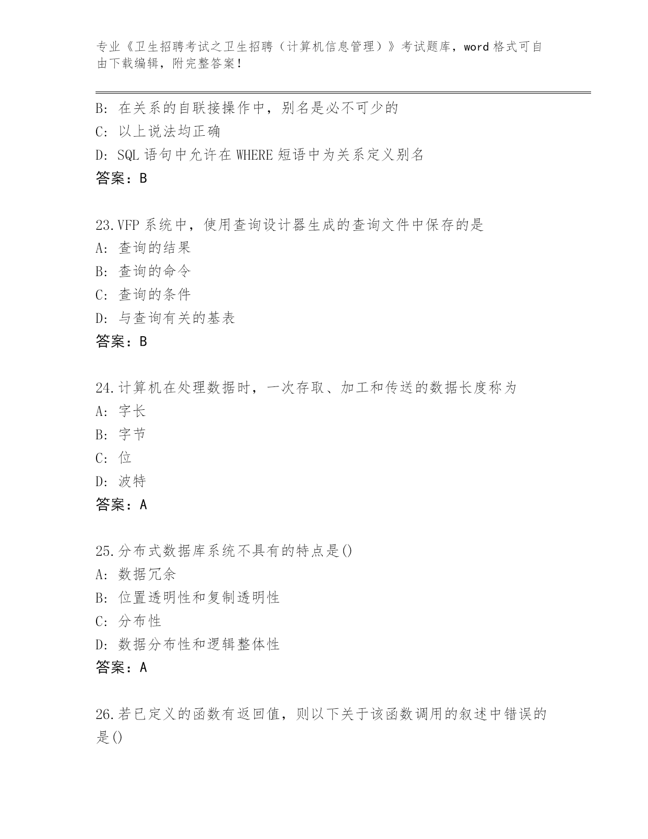 江苏省港闸区2024《卫生招聘考试之卫生招聘(计算机信息管理)》考试必背200题王牌题库标准卷
