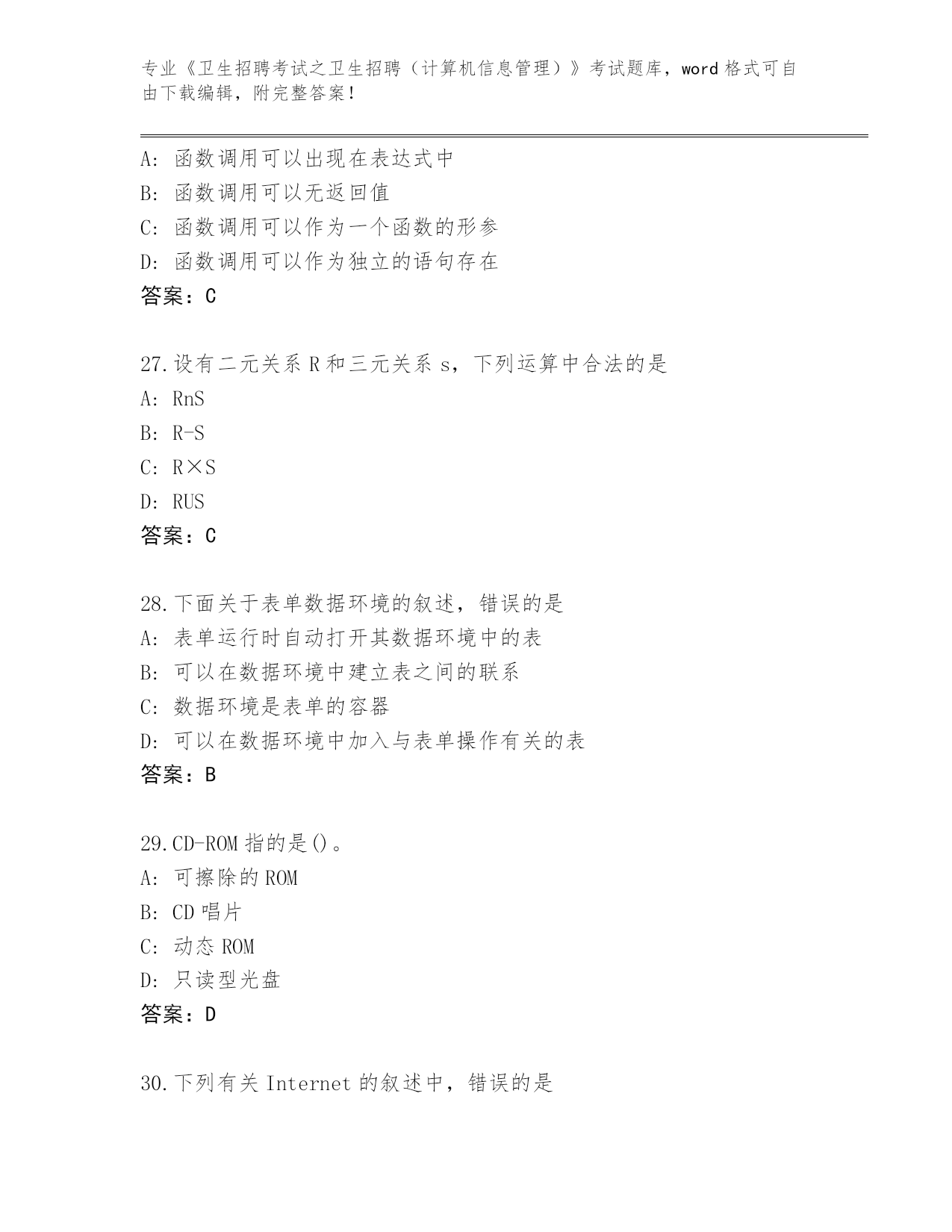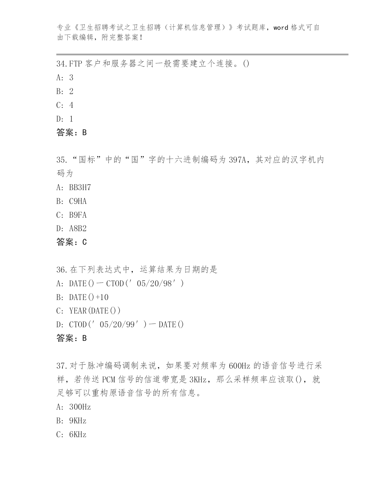 内部使用江苏省港闸区《卫生招聘考试之卫生招聘(计算机信息管理)》资格考试大全(B卷)