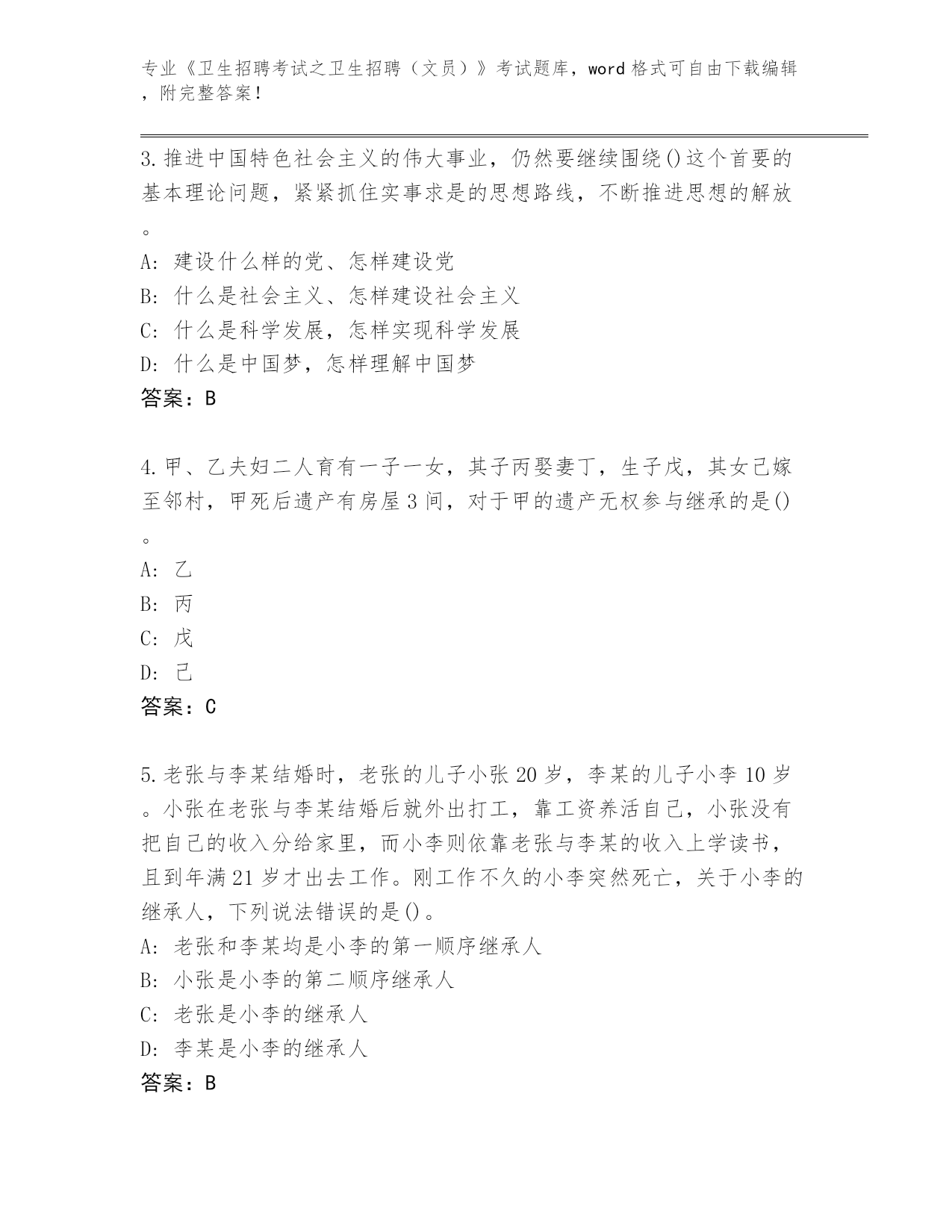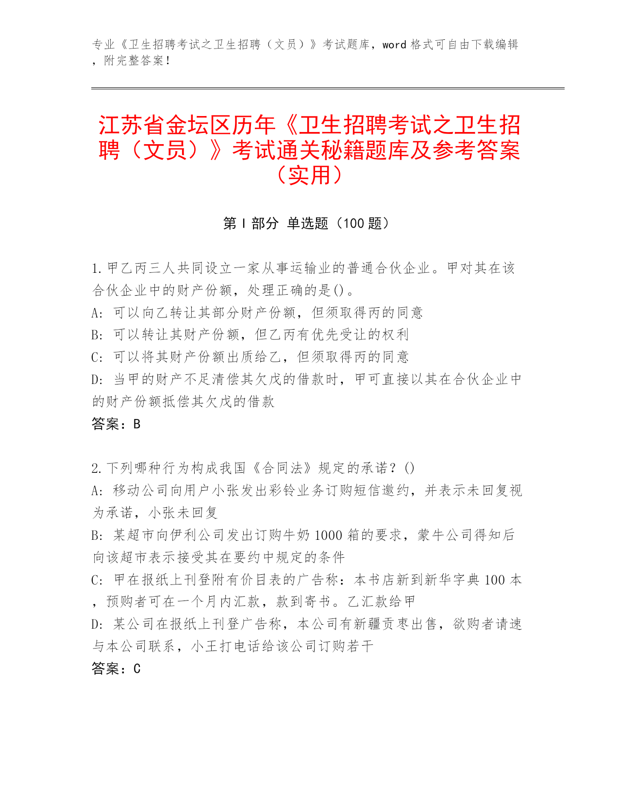 历年江苏省通州区《卫生招聘考试之卫生招聘(文员)》考试通关秘籍题库(B卷)