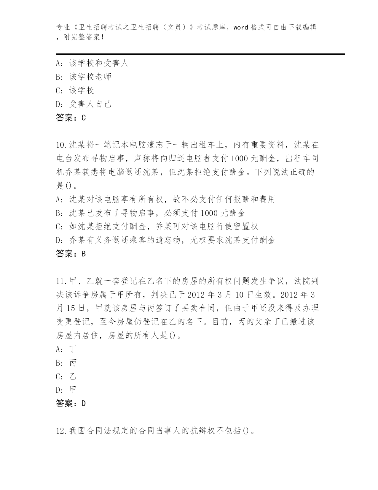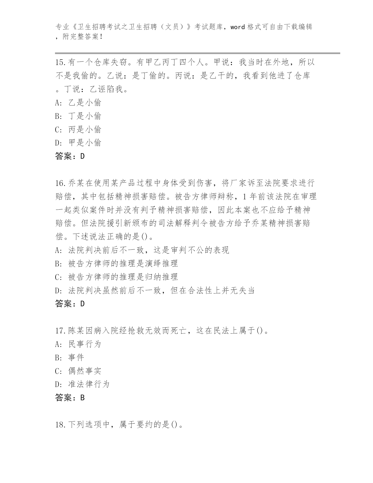 历年贵州省碧江区《卫生招聘考试之卫生招聘(文员)》考试通关秘籍题库及参考答案(巩固)