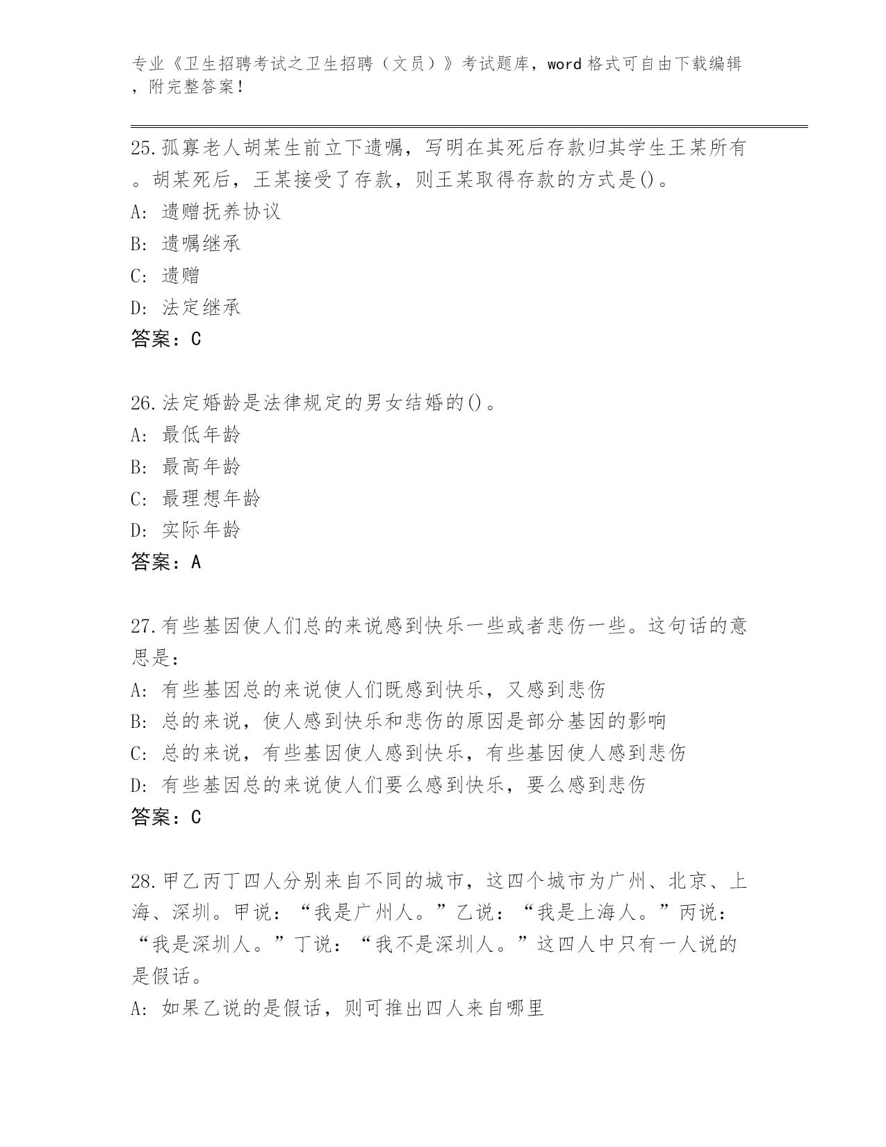 江苏省《卫生招聘考试之卫生招聘(文员)》考试通关秘籍题库(实用)