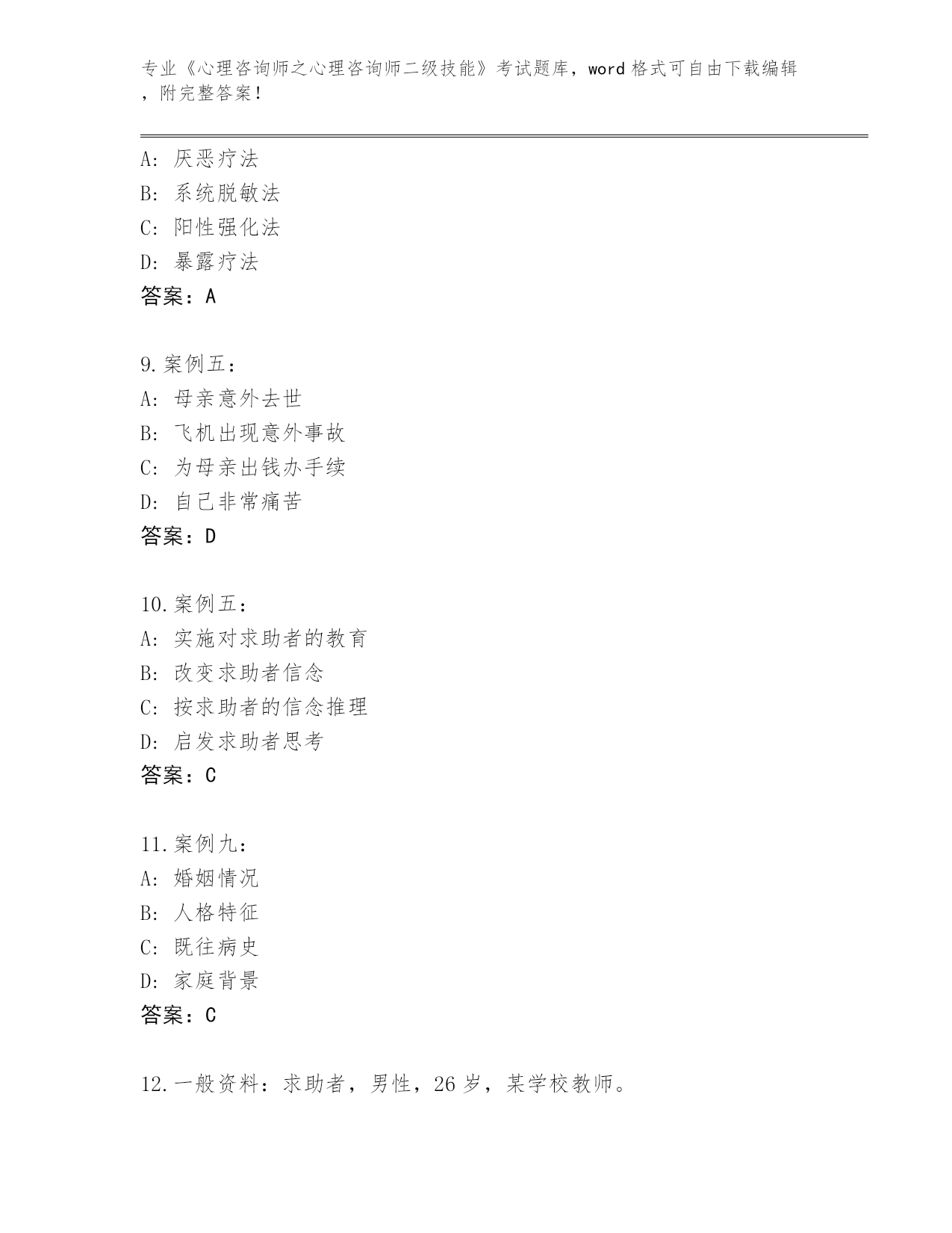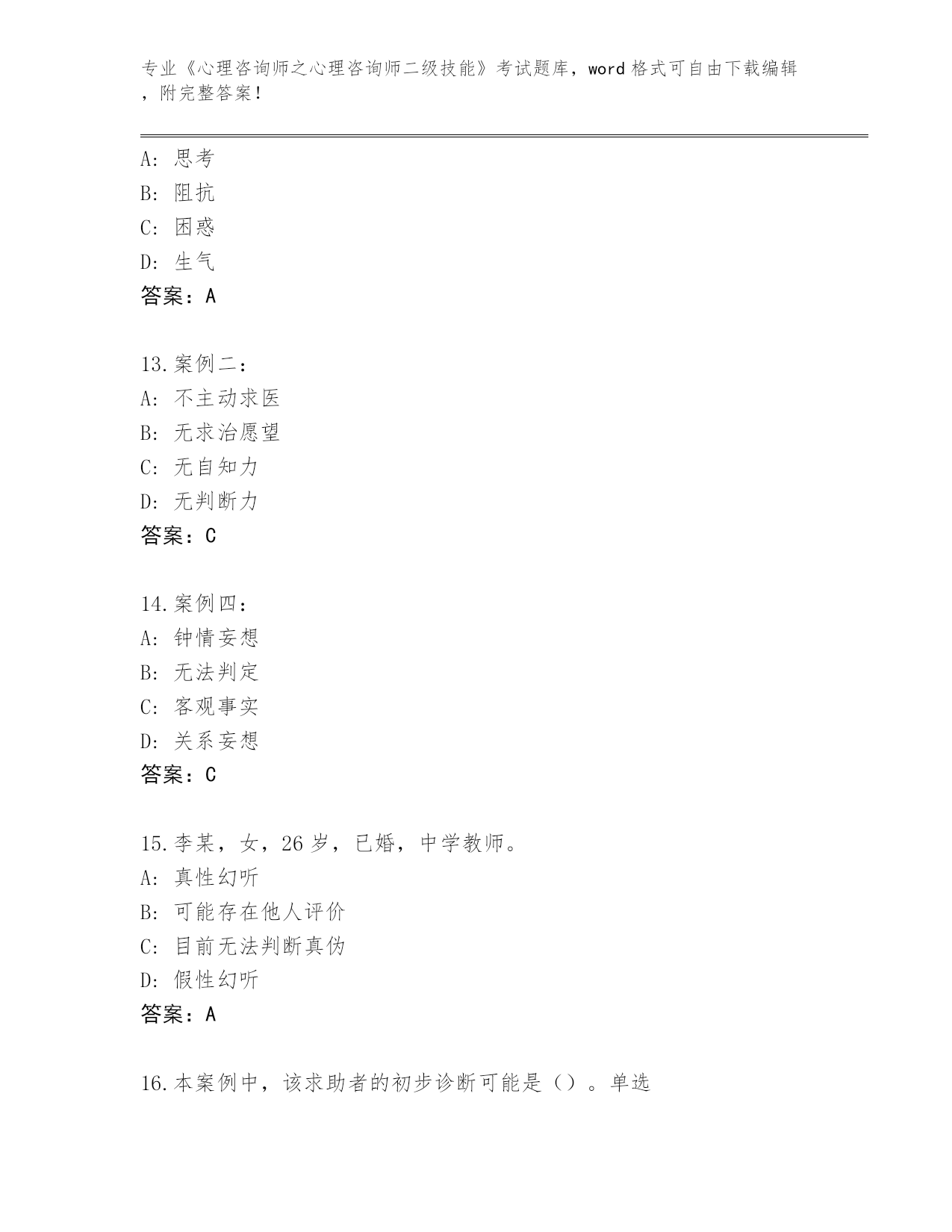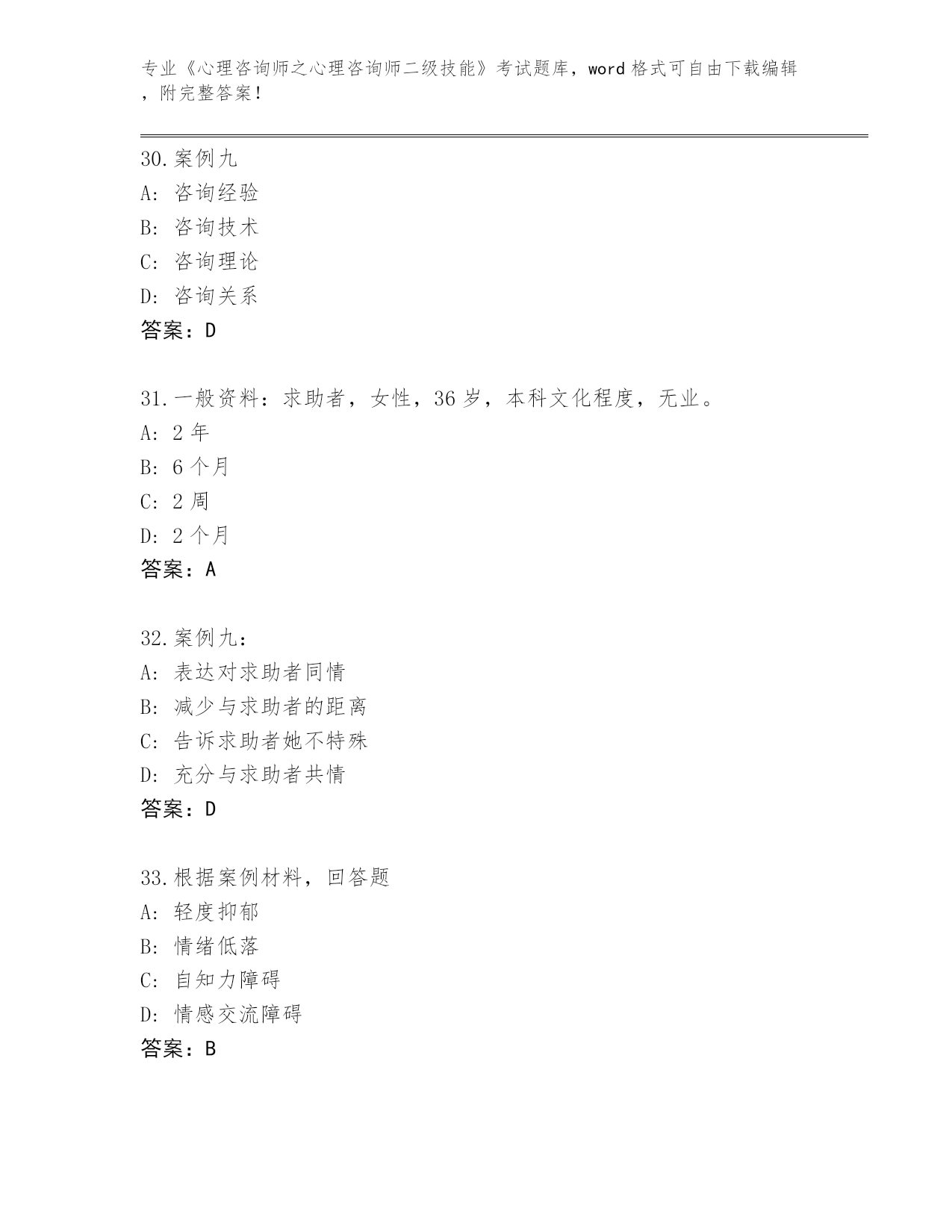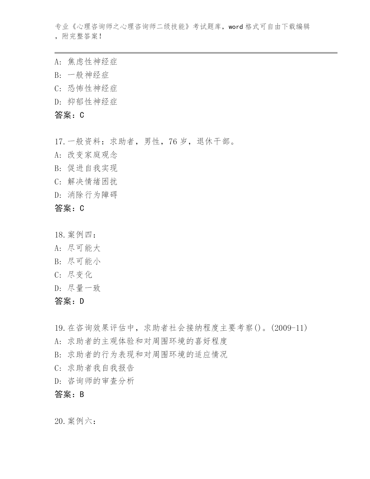 河南省新华区2024年《心理咨询师之心理咨询师二级技能》考试附答案(B卷)