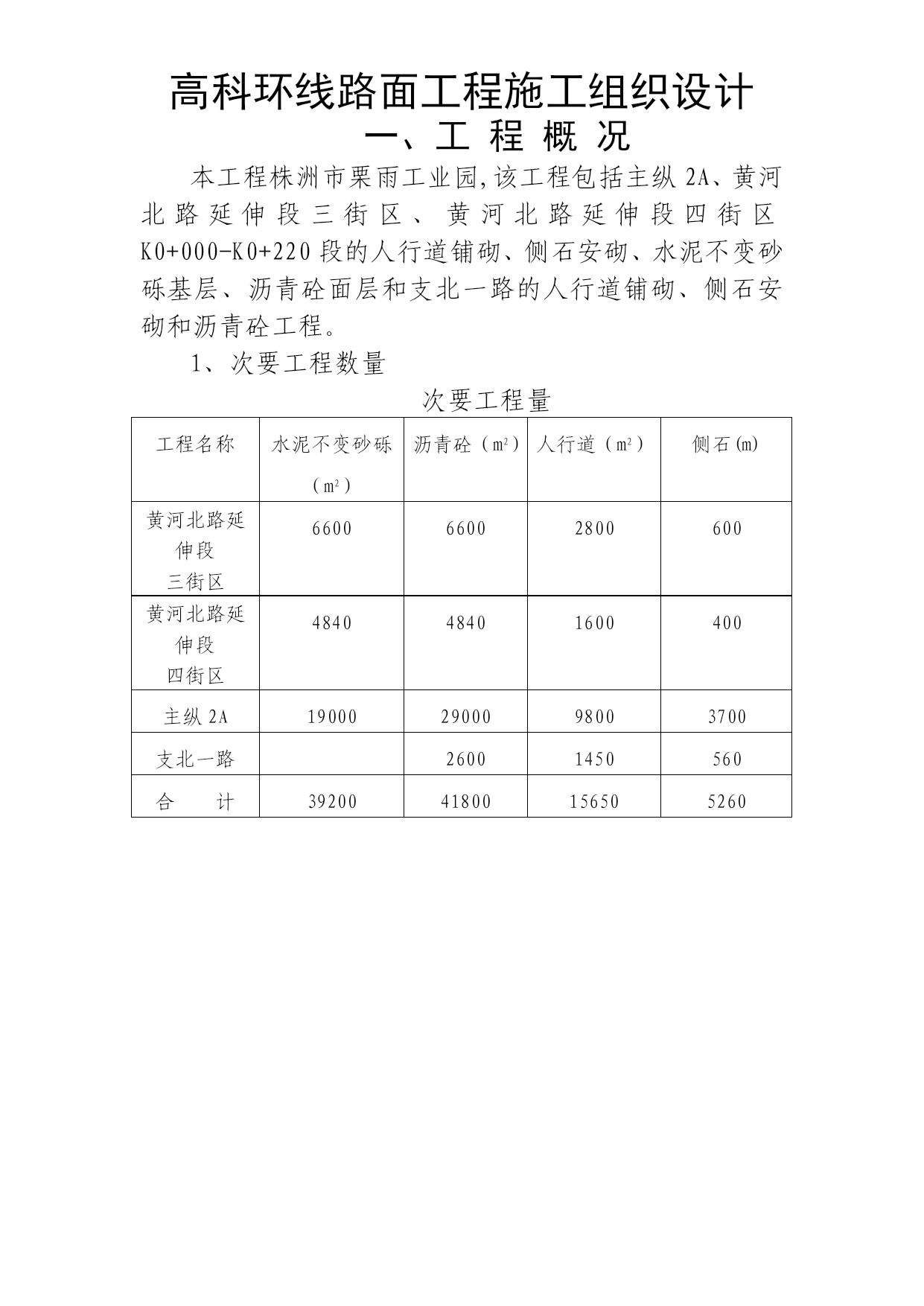 高科环线路面工程施工组织设计方案-经典通用宝藏文档.doc