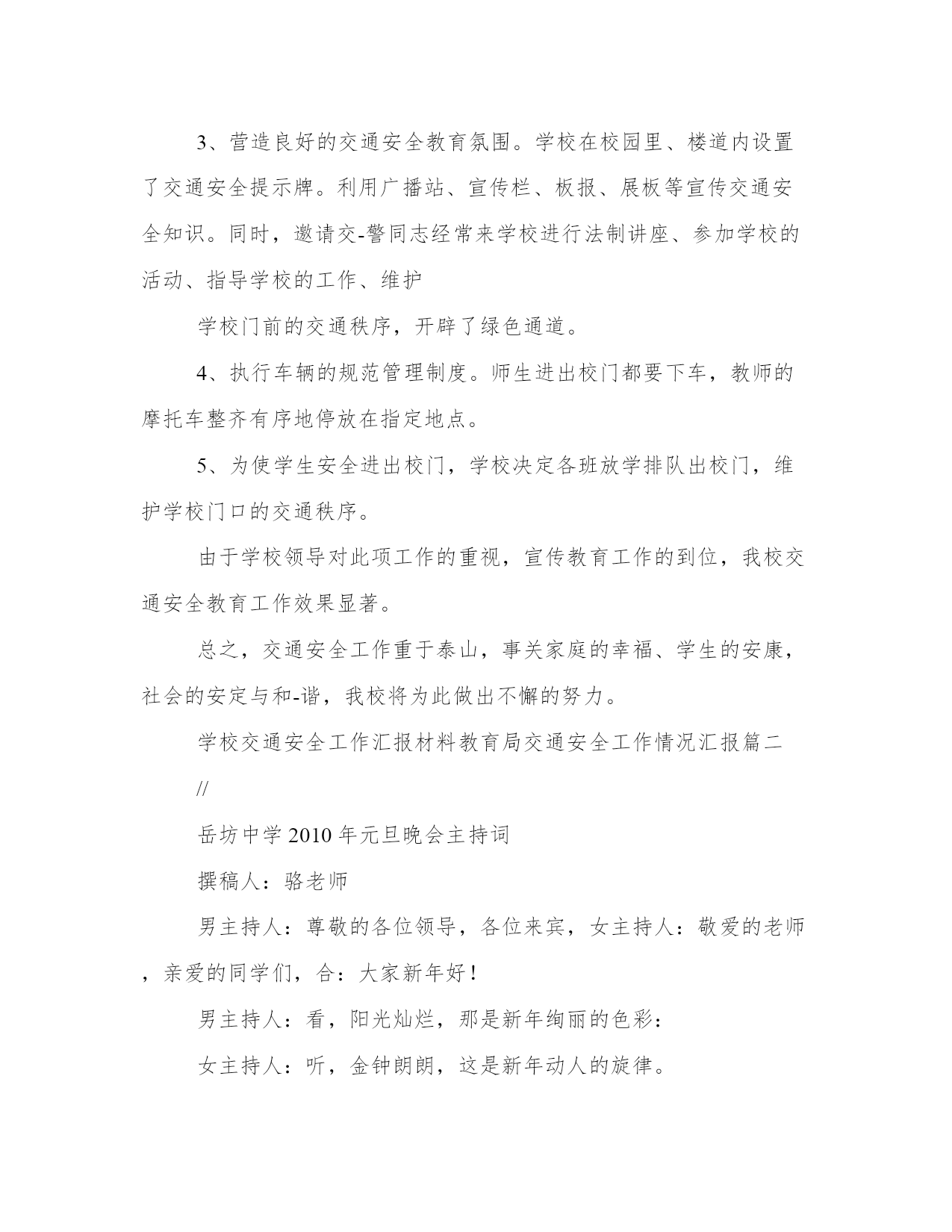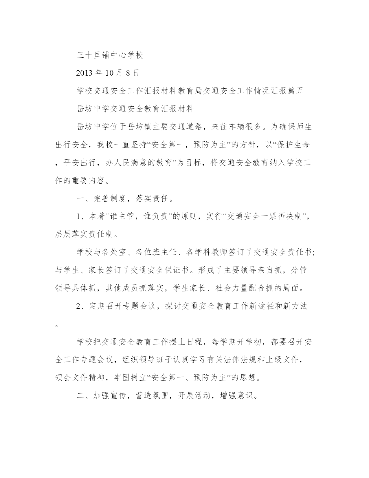 学校交通安全工作汇报材料 教育局交通安全工作情况汇报(5篇).docx