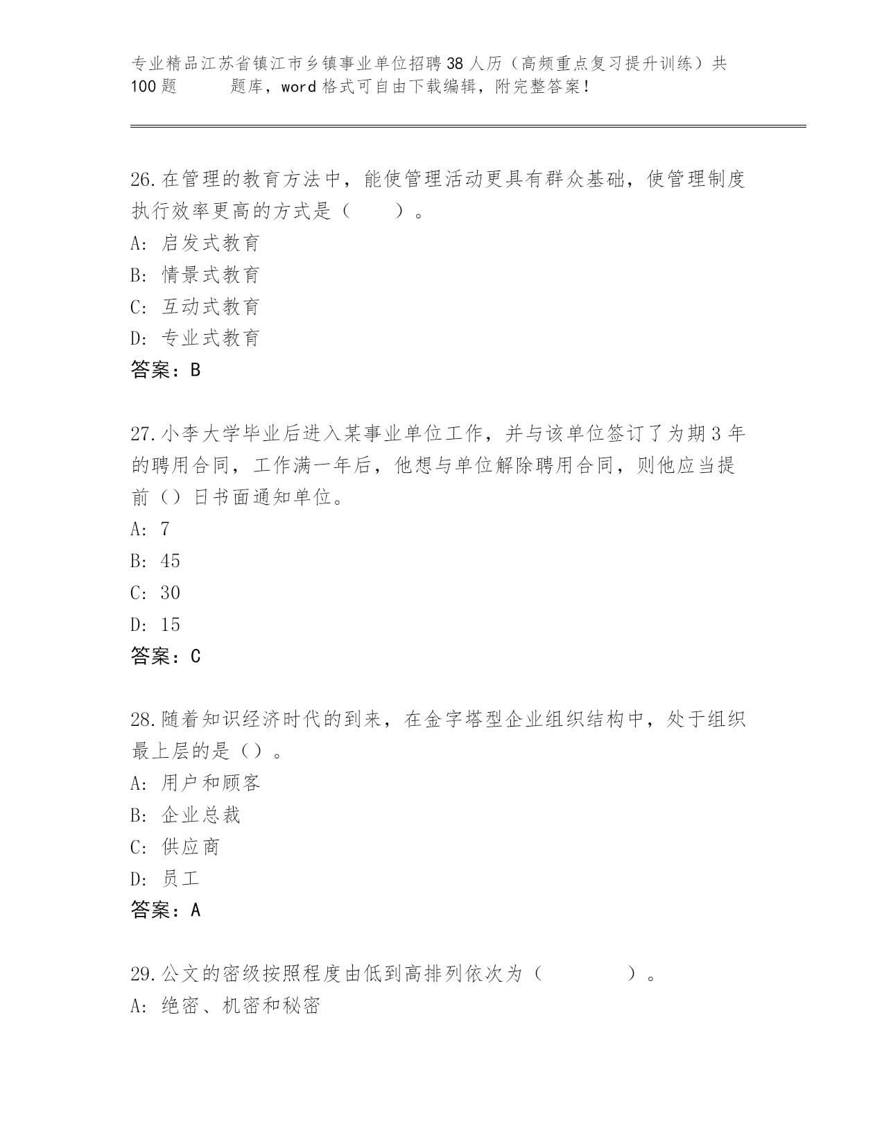 历年江苏省镇江市乡镇事业单位招聘38人历(高频重点复习提升训练)共100题 题库a4版打印