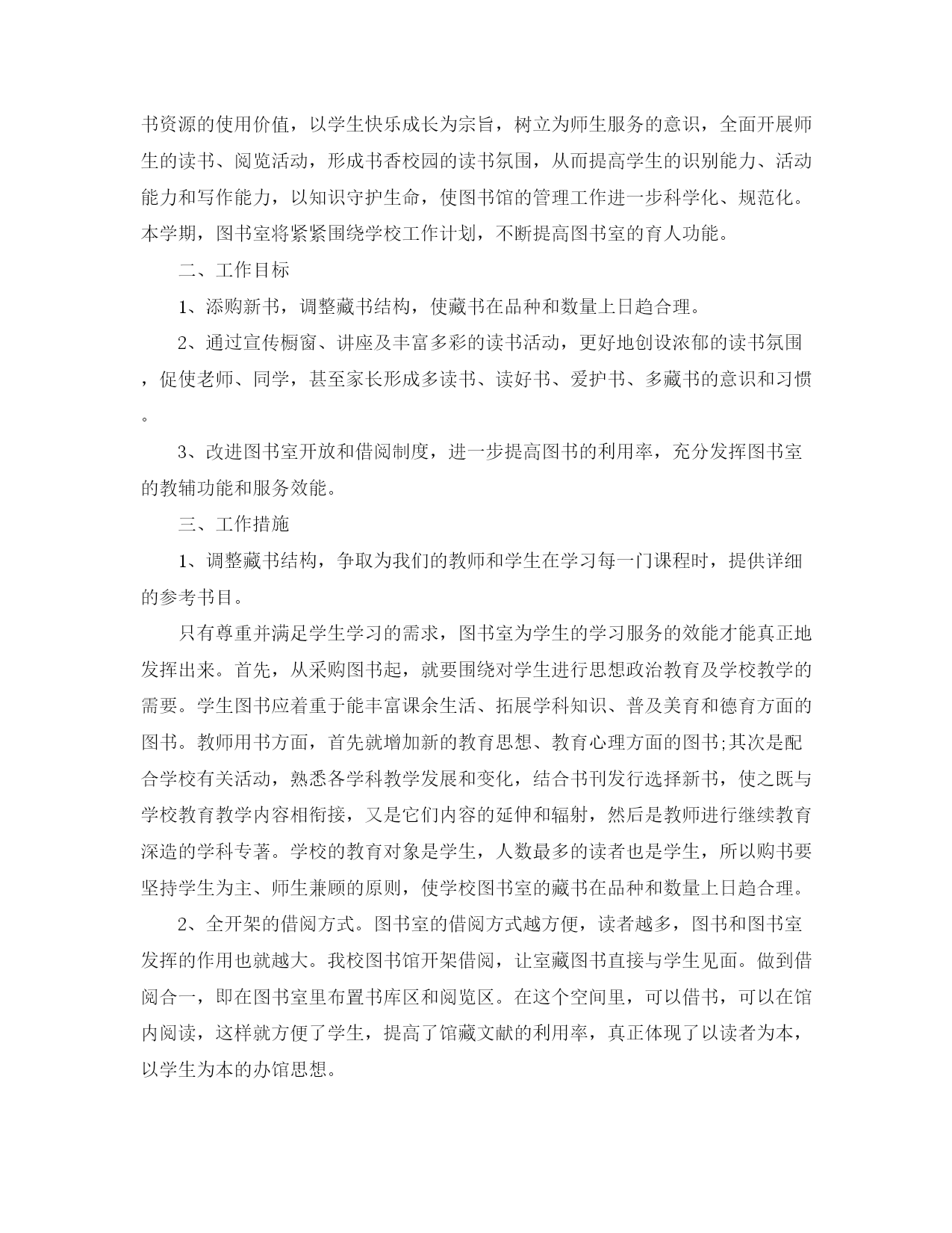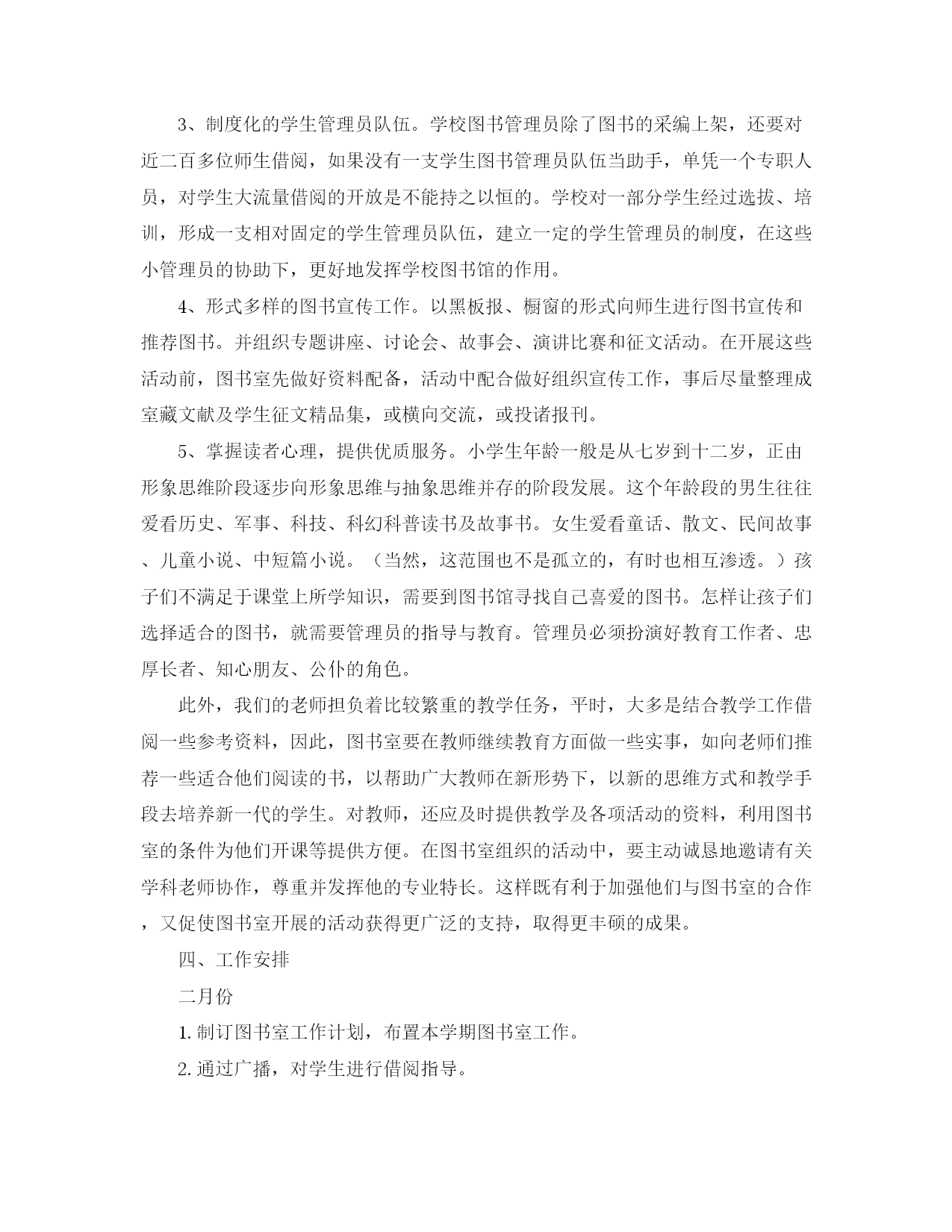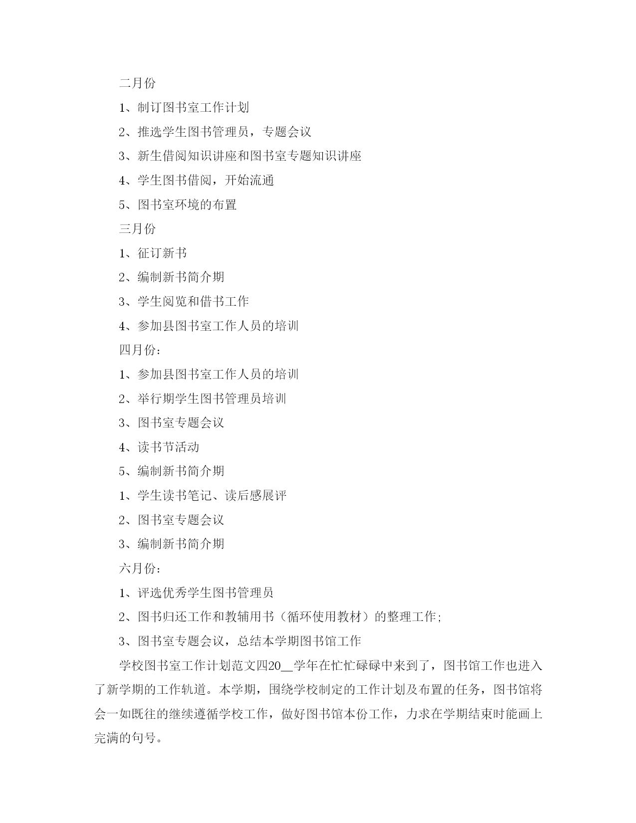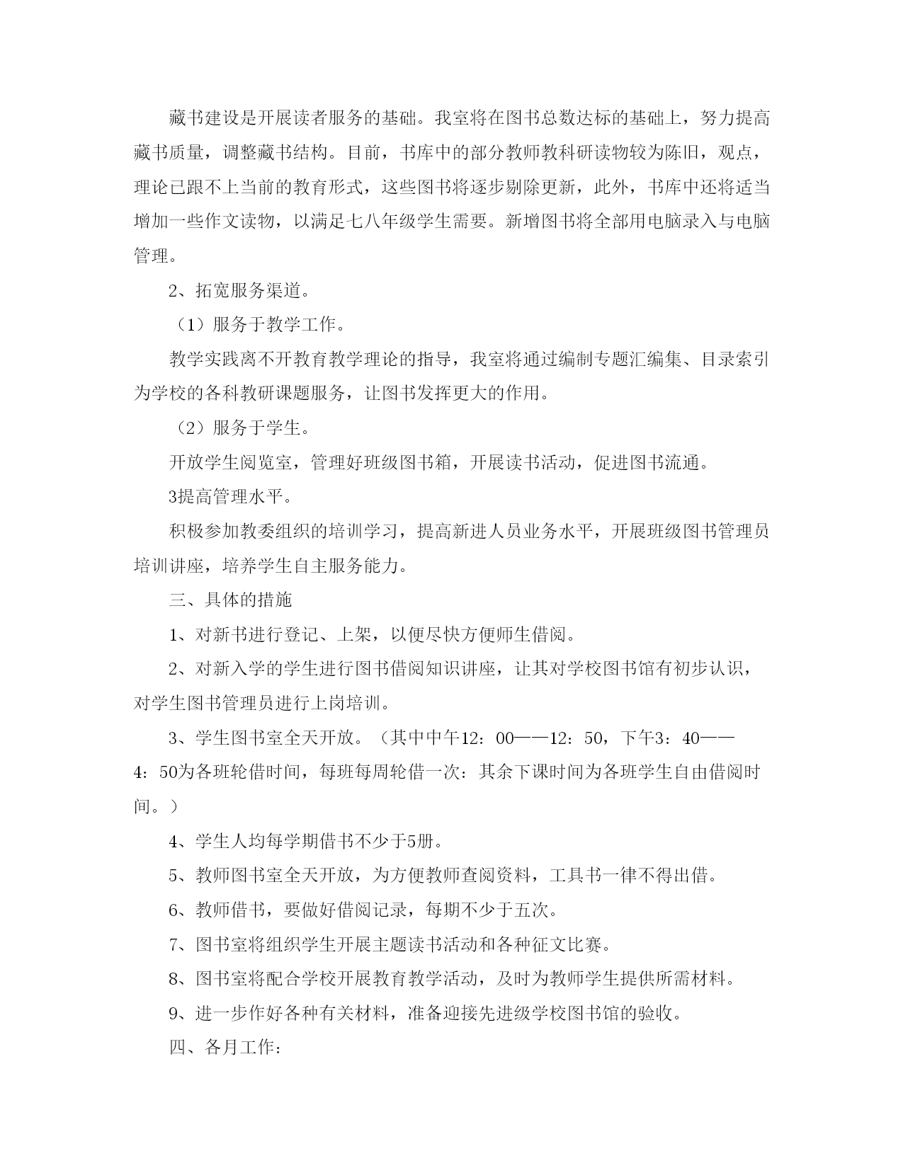 学校图书室工作计划模板(完整版)文档资料可直接使用,可编辑,欢迎下载学校图书室工作计划五篇学校图书室工作计划范文一本学期,学校图书室将继续在学校领导,教师的支持与配合下,认真贯彻国家教委《中小学图书馆(室)规程》,积极主动地服务,以充分发挥图书室对实施全面素质教育的推进作用。一、指导思想。图书管理员应树立以人为本的管理理念,确立主动服务为宗旨。遵循图书室的工作规律,加强图书室管理理论研究,对图书报刊管理、读者服务等进行科学的组织和管理。二、工作重心。1、对图书进行科学管理,提高图书利用率。2、开拓创新,读书活动力求有特色,以丰富多彩的活动来激发学生们的读书热情。3、配合学校每日下午的读书课程,协调各班的绘本图书,组织好学生的绘本阅读。三、主要目标。1、积极配合学校各项活动,做好服务工作。2、开展丰富多彩的读者活动,引导读者充分利用图书室资源。3、认真做好书目,为教师查找资料提供一切便利,并做好借阅的记录。4、做好各项日常性工作。开放学生阅览室,开展读好书活动。学校图书室工作计划范文二为了使学校的老师和同学们进一步多读书、读好书,不断长善救失,逐步迈进灿烂的书香人生,本学期制定工作计划如下:一、指导思想以教育部《中小学图书馆(室)规程(修订)》为依据,以为孩子未来奠基,为学生发展服务的办学理念为指导,根据学校工作的要求,进一步认识新时期学校对图书馆工作的新要求,进一步提高对学校图书室重要性的认识,进一步确立服务育人的思想意识,充分发挥图书室在教学、科研和实施素质教育中的作用,提高图书资源的使用价值,以学生快乐成长为宗旨,树立为师生服务的意识,全面开展师生的读书、阅览活动,形成书香校园的读书氛围,从而提高学生的识别能力、活动能力和写作能力,以知识守护生命,使图书馆的管理工作进一步科学化、规范化。本学期,图书室将紧紧围绕学校工作计划,不断提高图书室的育人功能。二、工作目标1、添购新书,调整藏书结构,使藏书在品种和数量上日趋合理。2、通过宣传橱窗、讲座及丰富多彩的读书活动,更好地创设浓郁的读书氛围,促使老师、同学,甚至家长形成多读书、读好书、爱护书、多藏书的意识和习惯。3、改进图书室开放和借阅制度,进一步提高图书的利用率,充分发挥图书室的教辅功能和服务效能。三、工作措施1、调整藏书结构,争取为我们的教师和学生在学习每一门课程时,提供详细的参考书目。只有尊重并满足学生学习的需求,图书室为学生的学习服务的效能才能真正地发挥出来。首先,从采购图书起,就要围绕对学生进行思想政治教育及学校教学的需要。学生图书应着重于能丰富课余生活、拓展学科知识、普及美育和德育方面的图书。教师用书方面,首先就增加新的教育思想、教育心理方面的图书;其次是配合学校有关活动,熟悉各学科教学发展和变化,结合书刊发行选择新书,使之既与学校教育教学内容相衔接,又是它们内容的延伸和辐射,然后是教师进行继续教育深造的学科专著。学校的教育对象是学生,人数最多的读者也是学生,所以购书要坚持学生为主、师生兼顾的原则,使学校图书室的藏书在品种和数量上日趋合理。2、全开架的借阅方式。图书室的借阅方式越方便,读者越多,图书和图书室发挥的作用也就越大。我校图书馆开架借阅,让室藏图书直接与学生见面。做到借阅合一,即在图书室里布置书库区和阅览区。在这个空间里,可以借书,可以在馆内阅读,这样就方便了学生,提高了馆藏文献的利用率,真正体现了以读者为本,以学生为本的办馆思想。3、制度化的学生管理员队伍。学校图书管理员除了图书的采编上架,还要对近二百多位师生借阅,如果没有一支学生图书管理员队伍当助手,单凭一个专职人员,对学生大流量借阅的开放是不能持之以恒的。学校对一部分学生经过选拔、培训,形成一支相对固定的学生管理员队伍,建立一定的学生管理员的制度,在这些小管理员的协助下,更好地发挥学校图书馆的作用。4、形式多样的图书宣传工作。以黑板报、橱窗的形式向师生进行图书宣传和推荐图书。并组织专题讲座、讨论会、故事会、演讲比赛和征文活动。在开展这些活动前,图书室先做好资料配备,活动中配合做好组织宣传工作,事后尽量整理成室藏文献及学生征文精品集,或横向交流,或投诸报刊。5、掌握读者心理,提供优质服务。小学生年龄一般是从七岁到十二岁,正由形象思维阶段逐步向形象思维与抽象思维并存的阶段发展。这个年龄段的男生往往爱看历史、军事、科技、科幻科普读书及故事书。女生爱看童话、散文、民间故事、儿童小说、中短篇小说。(当然,这范围也不是孤立的,有时也相互渗透。)孩子们不满足于课堂上所学知识,需要到图书馆寻找自己喜爱的图书。怎样让孩子们选择适合的图书,就需要管理员的指导与教育。管理员必须扮演好教育工作者、忠厚长者、知心朋友、公仆的角色。此外,我们的老师担负着比较繁重的教学