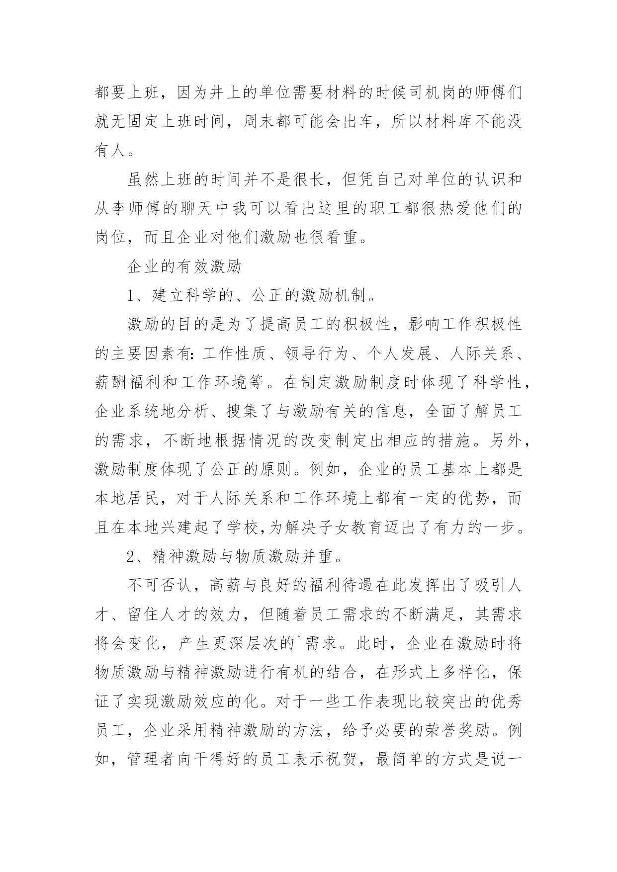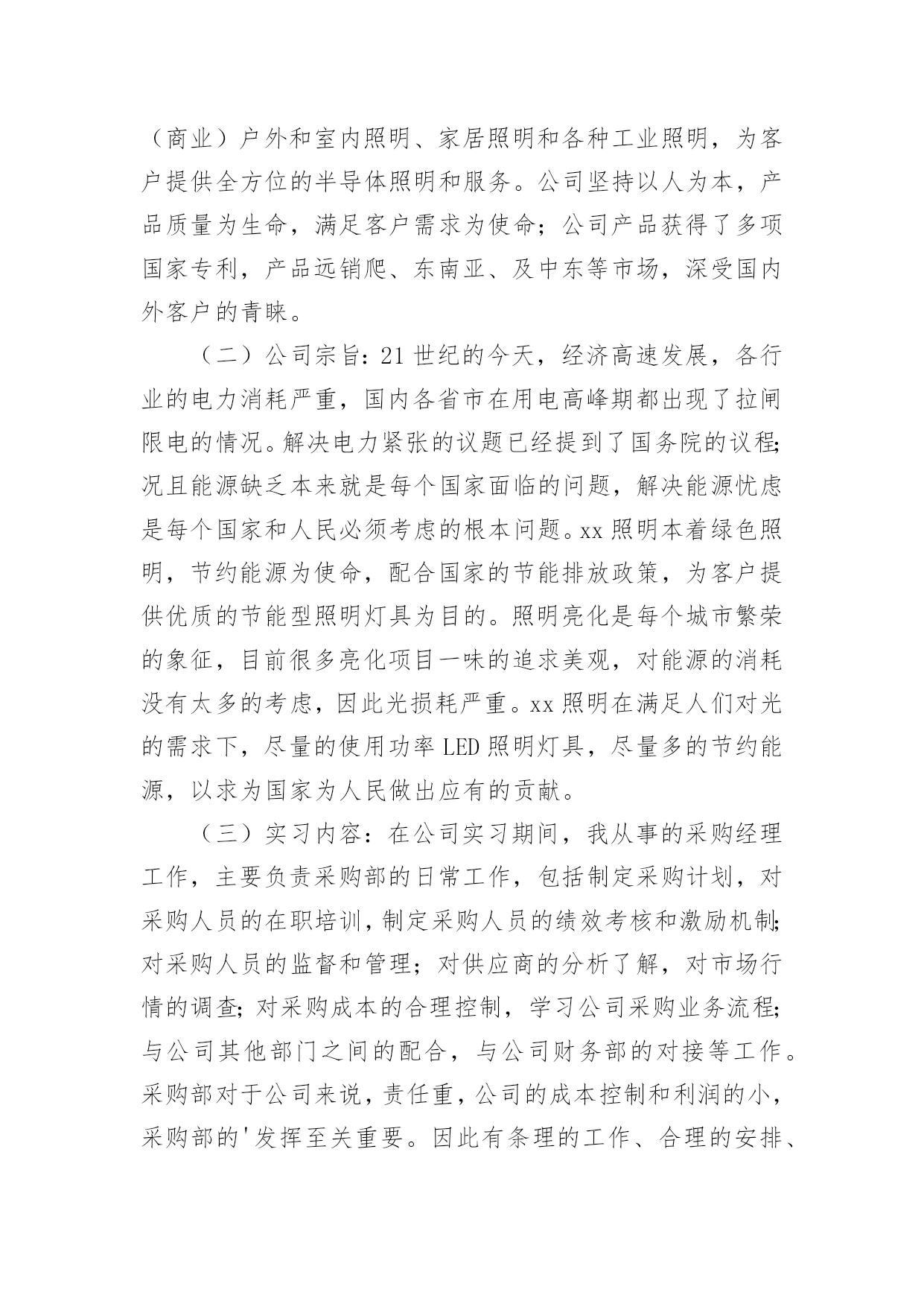 工商管理实习报告随着社会一步步向前发展,报告的使用频率呈上升趋势,要注意报告在写作时具有一定的格式。那么你真正懂得怎么写好报告吗?以下是小编帮大家整理的工商管理实习报告,欢迎大家借鉴与参考,希望对大家有所帮助。工商管理实习报告1一、实习目的了解工商企业管理的先进方式和现代化管理方法,提高调查研究、文献检索和搜集资料的能力,提高理论与实际相结合的能力,提高协同合作及组织工作的能力,培养立分析问题和解决实际问题的能力。二、实习时间20xx年9月20日~20xx年10月25日三、实习地点x市福田区八卦一路617栋401室四、实习单位x市xx照明有限公司实习部门采购部五、实习主要内容(一)公司xx照明是一家专业从事功率LED照明灯具集研发、生产、销售为一体的专业公司。其产品涵盖了工程(商业)户外和室内照明、家居照明和各种工业照明,为客户提供全方位的半导体照明和服务。公司坚持以人为本,产品质量为生命,满足客户需求为使命;公司产品获得了多项国家专利,产品远销爬、东南亚、及中东等市场,深受国内外客户的青睐。(二)公司宗旨:21世纪的今天,经济高速发展,各行业的电力消耗严重,国内各省市在用电高峰期都出现了拉闸限电的情况。解决电力紧张的议题已经提到了国务院的议程;况且能源缺乏本来就是每个国家面临的问题,解决能源忧虑是每个国家和人民必须考虑的根本问题。xx照明本着绿色照明,节约能源为使命,配合国家的节能排放政策,为客户提供优质的节能型照明灯具为目的。照明亮化是每个城市繁荣的象征,目前很多亮化项目一味的追求美观,对能源的消耗没有太多的考虑,因此光损耗严重。xx照明在满足人们对光的需求下,尽量的使用功率LED照明灯具,尽量多的节约能源,以求为国家为人民做出应有的贡献。(三)实习内容:在公司实习期间,我从事的采购经理工作,主要负责采购部的日常工作,包括制定采购计划,对采购人员的在职培训,制定采购人员的绩效考核和激励机制;对采购人员的监督和管理;对供应商的分析了解,对市场行情的调查;对采购成本的合理控制,学习公司采购业务流程;与公司其他部门之间的配合,与公司财务部的对接等工作。采购部对于公司来说,责任重,公司的成本控制和利润的小,采购部的'发挥至关重要。因此有条理的工作、合理的安排、采购业务的熟悉、科学的管理手段,是采购经理必须具备的应有素质。毕业实习是每个学生必须拥有的一段经历,它使我们在实践中了解社会,让我们学到了很多在课堂上根本就学不到的知识,受益匪浅,也打开了视野,增长了见识,使我认识到将所学的知识具体应用到工作中去,为以后进一步走向社会打下坚实的基础,只有在实习期间尽快调整好自己的学习方式,适应社会,才能被这个社会所接纳,进而生存发展。刚进入单位的时候我有些担心,经历了一连串的实习之后,我努力调整观念,正确认识了单位和个人的地位以及发展方向,我相信只要我们立足于现实,改变和调整看问题的角度,锐意进取,在成才的道路上不断攀登,有朝一日,那些成才的机遇就会纷至沓来,促使我们成为社会公认的人才。工商管理实习报告2实践目的:第一,深入地了解国企的运营环境,并且将学到的知识应用于实际工作中;第二,在实践中掌握自己的不足,测试自己的能力,进而更好地提高自我。第三,结合理论与实际,更好的完成毕业论文。实践岗位:材料保管员公司背景:青海油田位于柴达木盆地西北缘,被昆仑山、祁连山、阿尔金山所环抱。青海石油勘探从1954年开始,截止20xx年底,青海油田累计发现地面构造140个,找到不同圈闭、多种储集类型油气田22个,其中油田16个,气田6个。累计探明石油地质储量34765万吨,控制石油地质储量5999万吨,预测石油地质储量41505万吨,探明率为16。2%;探明天然气地质储量3066亿立方米,控制天然气地质储量644亿立方米,预测天然气地质储量2345亿立方米,探明率为12。3%。油气资源探明率还很低,石油、天然气勘探的潜力巨大,前景十分广阔。目前,青海油田是继四川、长庆、新疆之后的全国第四大气区。现已建成涩宁兰、涩格、仙敦、仙翼、南花五条输气管道和一条花格输油管线,总长20xx多公里。花格复线正在加紧施工。青海油田在敦煌、格尔木、花土沟建有三个基地。敦煌基地是管理局、油田公司机关和部分二级单位所在地,也是油田教育、科研、多种经营、职工轮休和培训基地;格尔木炼油、化工基地,有一座年加工原油100万吨能力的炼油厂;花土沟原油生产基地是油田勘探开发、生产的第一线,有年产百万吨的尕斯库勒油田。四十多年来,青海石油人,在海拔高、氧气少、自然条件艰苦柴达木盆地,不仅为祖国的石油事业作出了自己的特殊贡献,创造了大量的物质财富,而且培养锻炼了一支特别能吃苦、特别能战斗、特别能奉献的职工队伍,用血汗甚至生命凝结成了以ldquo;顾全大局的爱国精神,艰苦奋斗的创业精神,为油而