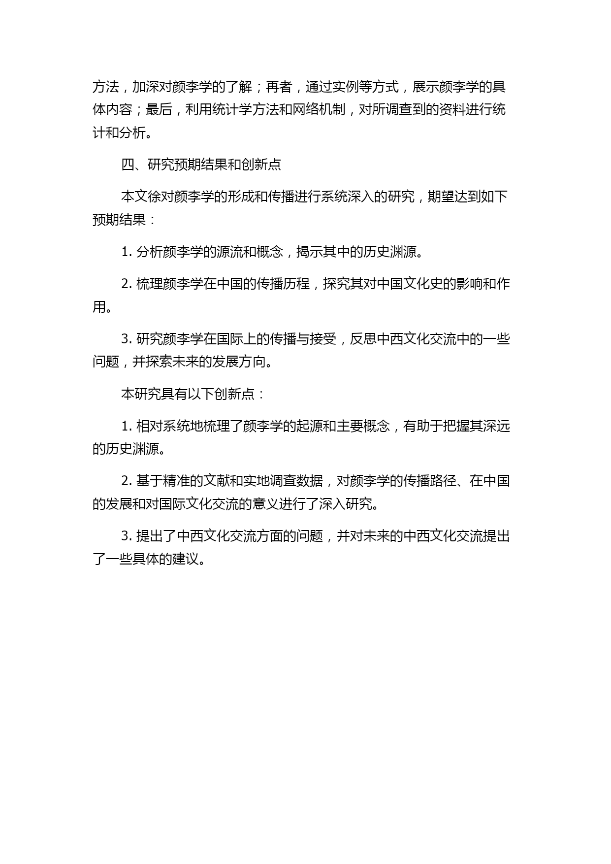 颜李学的形成与传播研究的开题报告一、研究背景和意义颜李学是一个涉及历史、文化、社会等多个领域的学派,其理论贡献丰富、影响广泛。颜李学的形成和传播过程不仅与中国文化史发展密切相关,更与中国现代思想史、国际文化交流等方面的复杂历史背景有关。因此,深入研究颜李学的形成过程和传播路径,对于认识中国文化史发展的脉络和特点,了解现代思想史的发展轨迹以及推动中西文化交流具有重要的理论和实践意义。二、研究问题和内容本文就研究颜李学的形成和传播路径,具体而言,主要围绕以下问题展开探讨:1.颜李学的起源及其主要概念:准确掌握颜李学的起源和主要概念对于深入理解颜李学的形成和发展具有关键意义。2.颜李学的传播路径:探究颜李学如何传入、传播到中国,以及在中国不断发展壮大的历史过程,以此把握颜李学的文化渊源。3.颜李学在中国的影响和发展:探究颜李学在中国的影响和发展,从历史变迁、思想发展、社会变迁等方面全面了解中国文化史的脉络。4.颜李学的国际传播:分析颜李学在国际上的传播和接受情况,从中反思中西文化交流的历史轨迹和未来的发展方向。三、研究方法和技术路线本文拟采用文献调查法和实地调查法相结合的研究方法。其中文献调查主要涉及颜李学的研究和相关文献的搜集、整理和分析;实地调查主要涉及对于颜李学的研究机构、专家学者、实践者等的访谈和调查,以此收集第一手资料。技术路线主要包括以下几个方面:首先,搜集整理颜李学的相关文献资料;其次,采用图书馆查询和实地调查相结合的方法,加深对颜李学的了解;再者,通过实例等方式,展示颜李学的具体内容;最后,利用统计学方法和网络机制,对所调查到的资料进行统计和分析。四、研究预期结果和创新点本文徐对颜李学的形成和传播进行系统深入的研究,期望达到如下预期结果:1.分析颜李学的源流和概念,揭示其中的历史渊源。2.梳理颜李学在中国的传播历程,探究其对中国文化史的影响和作用。3.研究颜李学在国际上的传播与接受,反思中西文化交流中的一些问题,并探索未来的发展方向。本研究具有以下创新点:1.相对系统地梳理了颜李学的起源和主要概念,有助于把握其深远的历史渊源。2.基于精准的文献和实地调查数据,对颜李学的传播路径、在中国的发展和对国际文化交流的意义进行了深入研究。3.提出了中西文化交流方面的问题,并对未来的中西文化交流提出了一些具体的建议。